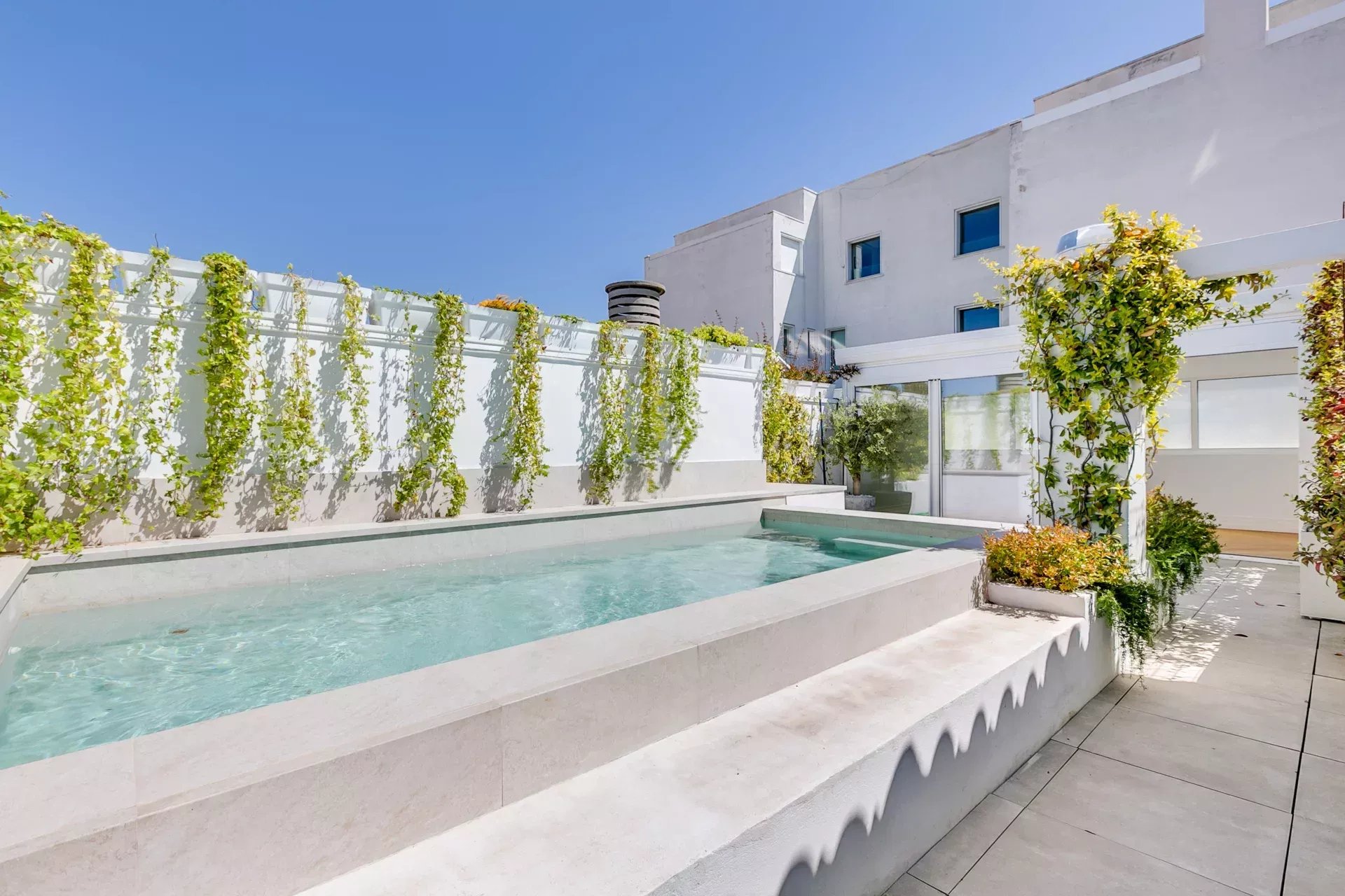 The crown jewel of this home is the private 100 m² rooftop terrace, redefining the concept of urban living. It features a stylish private pool, a beautifully landscaped garden ideal for relaxation, and two additional en-suite studios with large sliding glass doors and open views—versatile spaces that can serve as an outdoor kitchen, a high-end office, or an artist’s studio.