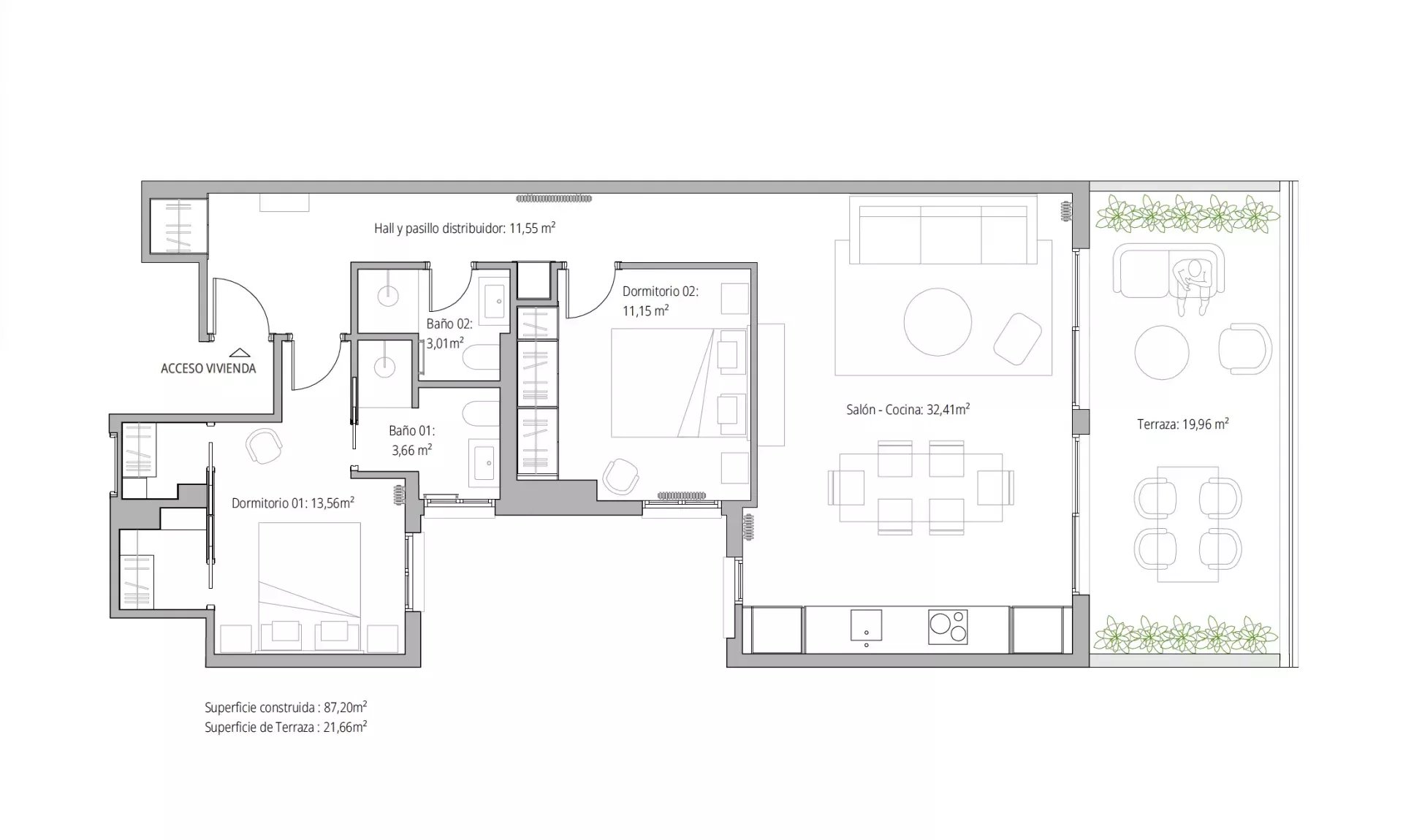 The property stands out for its spacious private terrace, a privileged space to enjoy the outdoors and unobstructed panoramic views. Thanks to its strategic orientation and architectural design that maximizes natural light, all rooms are filled with brightness, creating a warm, elegant, and sophisticated atmosphere.