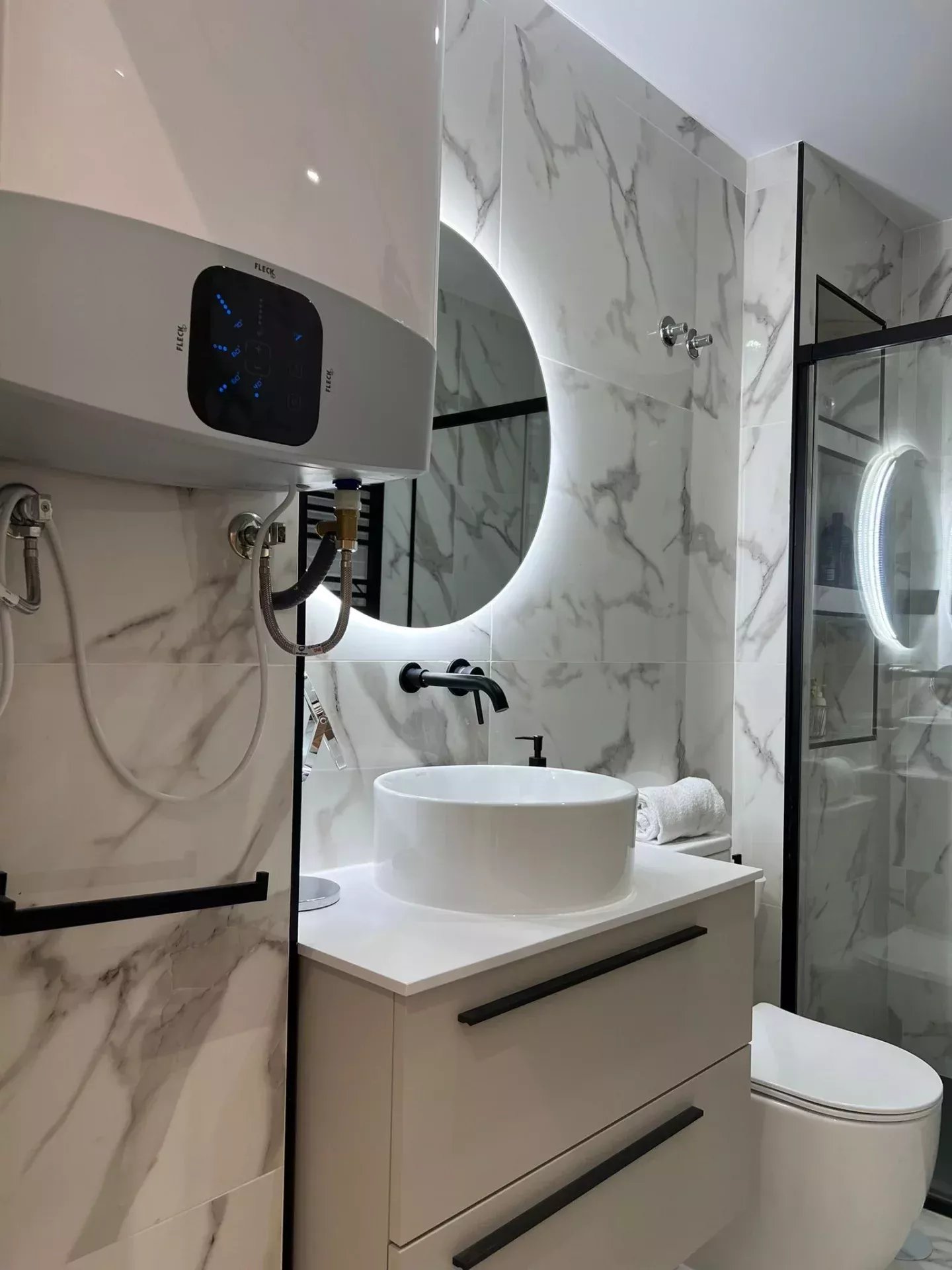 The property includes three spacious bedrooms, each with built-in wardrobes and high-quality furnishings, creating a warm and elegant atmosphere.