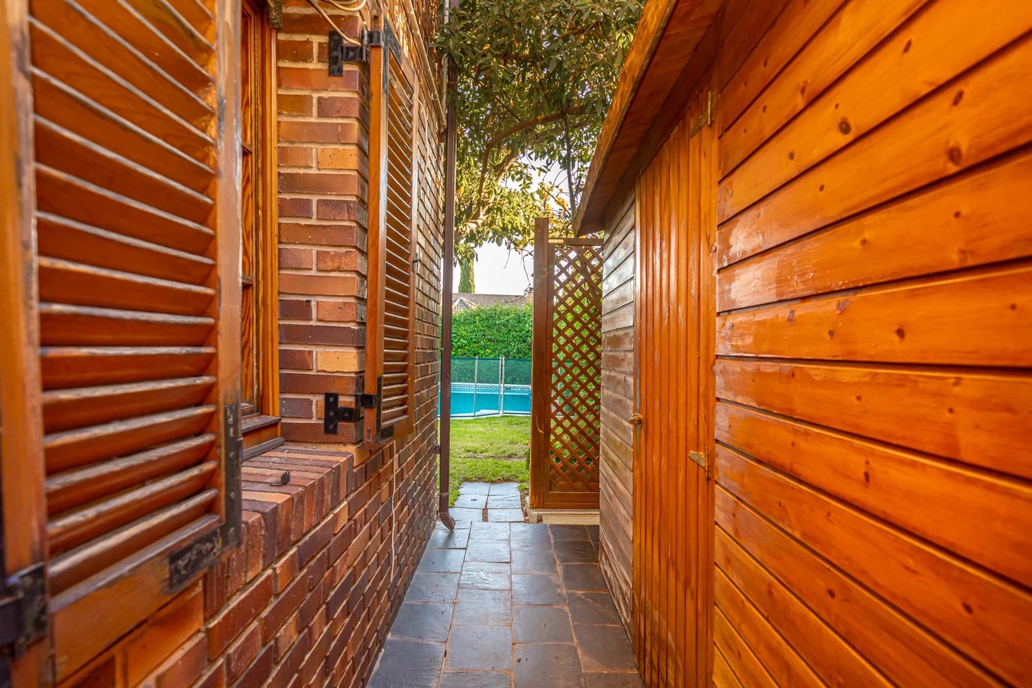 La propiedad conserva la calidez y nobleza de la madera original del año 1980, un detalle que aporta personalidad y el encanto auténtico de las casas con historia, combinado con actualizaciones clave que elevan la comodidad. Prueba de ello es la cocina completamente renovada, equipada con electrodomésticos de alta gama y una distribución funcional que facilita el día a día. En esta misma planta, la zona de servicio independiente ofrece dormitorio, baño y lavandería para una organización impecable del hogar.