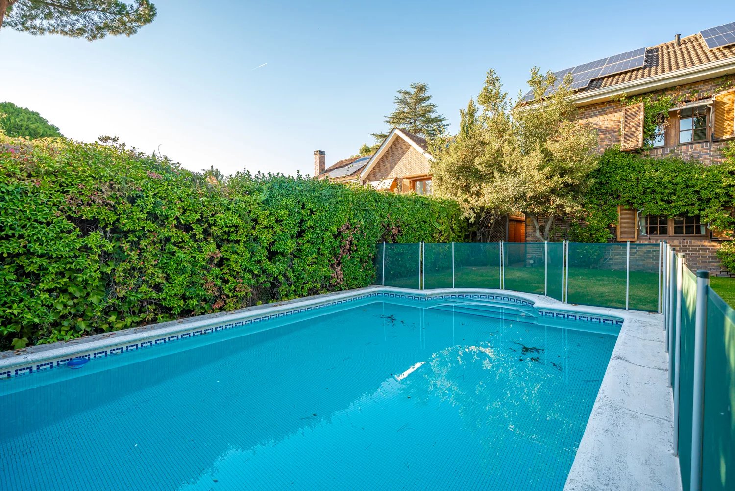 El exterior es uno de los grandes atractivos de la vivienda: un jardín consolidado de orientación suroeste, perfecto para disfrutar del sol durante todo el día, acompañado de piscina privada y una zona chill out que convierte cada tarde en un momento para relajarse o celebrar en compañía. Una auténtica extensión del hogar pensada para vivir al aire libre la mayor parte del año.