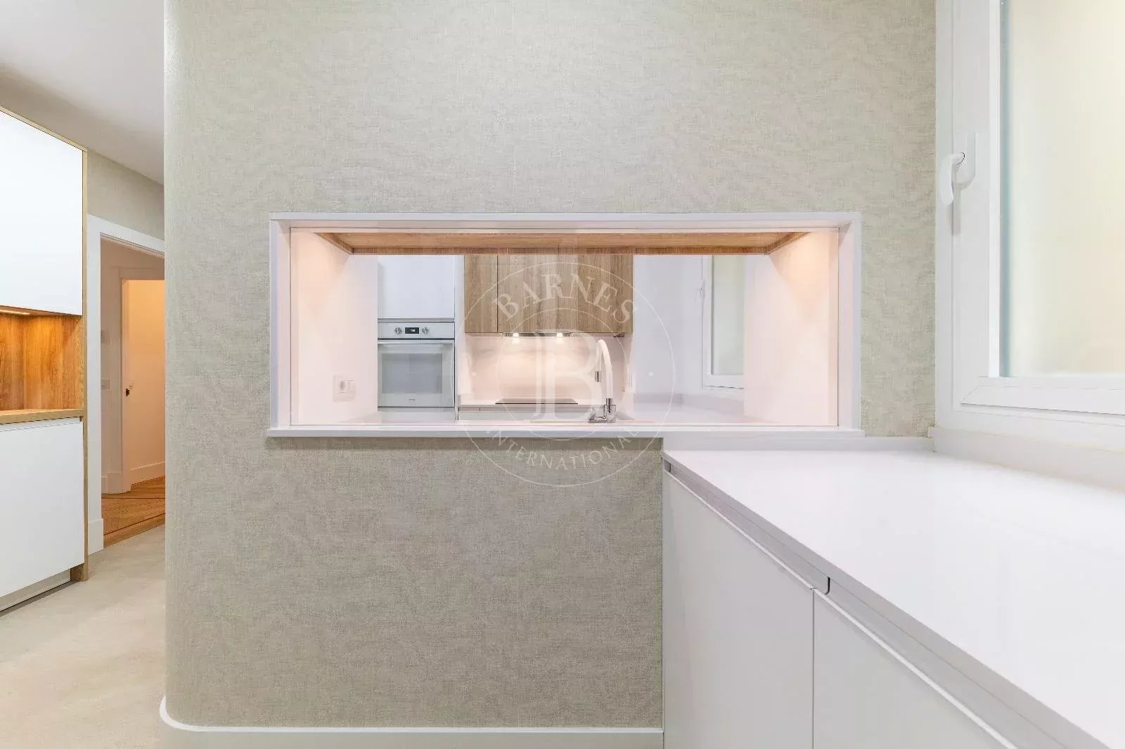 La cocina es independiente y está completamente equipada con electrodomésticos de alta gama, incluyendo un frigorÃfico americano. Cuenta también con entrada de servicio independiente y una práctica zona de lavanderÃa con lavadora y secadora. El piso se completa con dos amplias plazas de garaje situadas bajo la finca, un privilegio poco común en el centro de Madrid. Una propiedad única que combina la elegancia clásica con el confort contemporáneo, perfecta para quienes buscan exclusividad y distinción en una de las direcciones más prestigiosas de la ciudad.