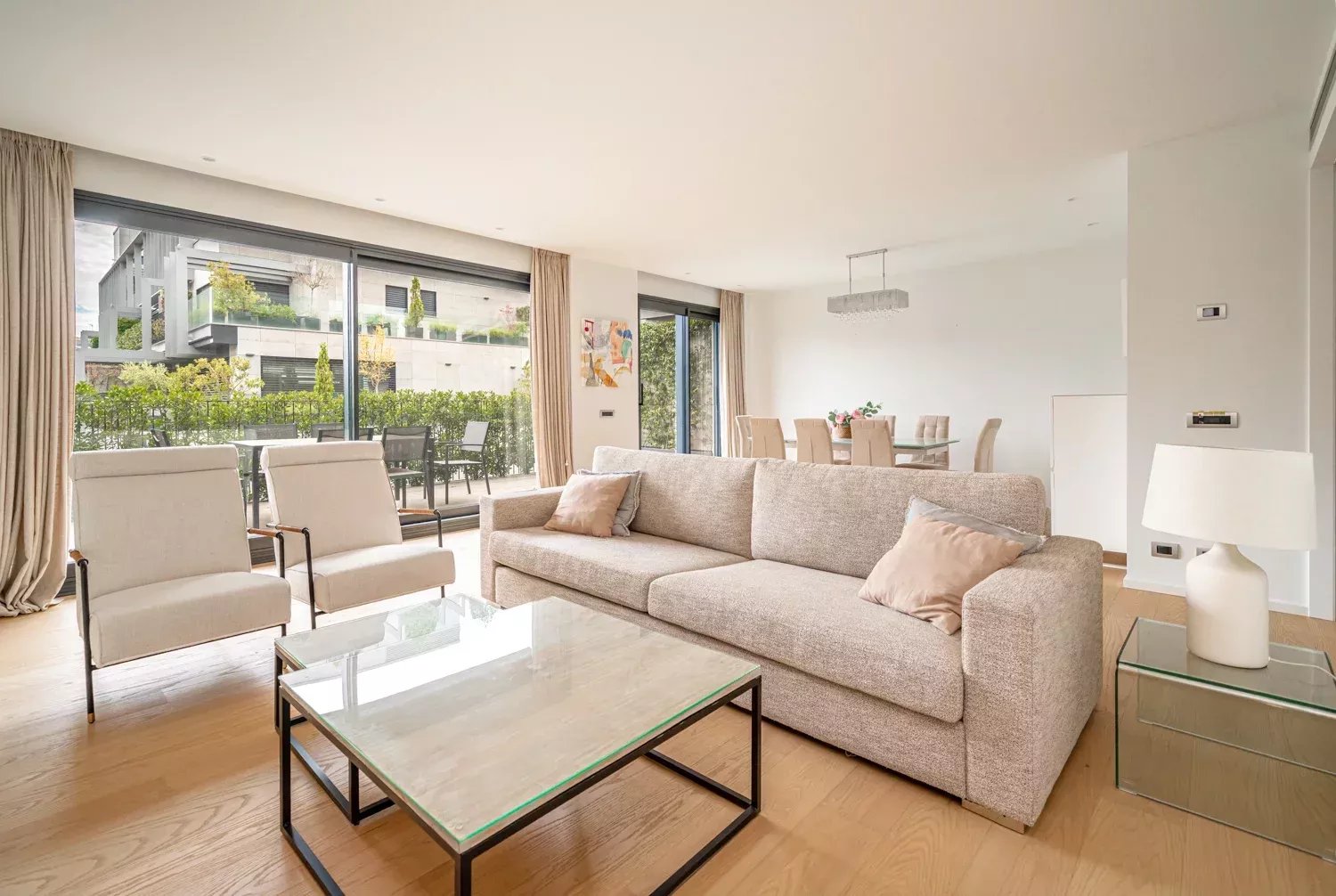 Ubicado en una urbanización de nueva construcción y con la máxima discreción, este exclusivo piso de 220 m² ofrece confort, elegancia y todas las comodidades en una de las zonas más reconocidas de Madrid. La vivienda destaca por su terraza de 30 m² equipada con muebles de exterior, ideal para recibir invitados y disfrutar de comidas y cenas al aire libre.