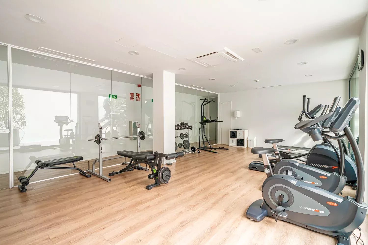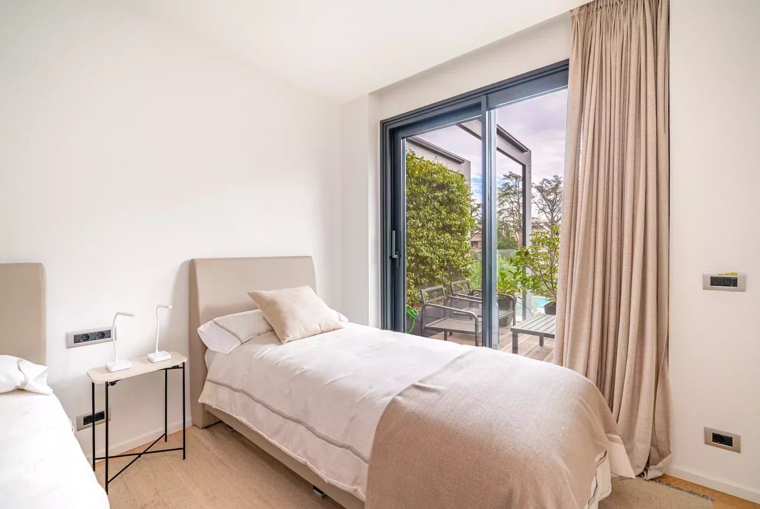 La urbanización ofrece servicios exclusivos como piscina, gimnasio, sauna, cámaras de seguridad y vigilancia 24 horas. El precio incluye dos plazas de garaje. La climatización de toda la vivienda se realiza mediante un sistema de aerotermia, garantizando eficiencia y confort durante todo el año.