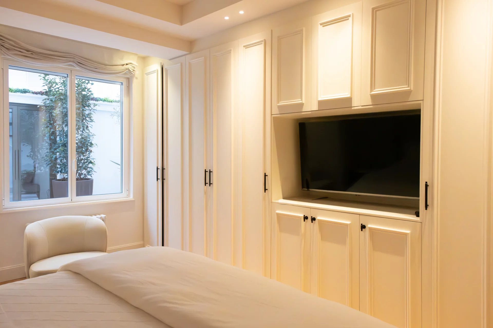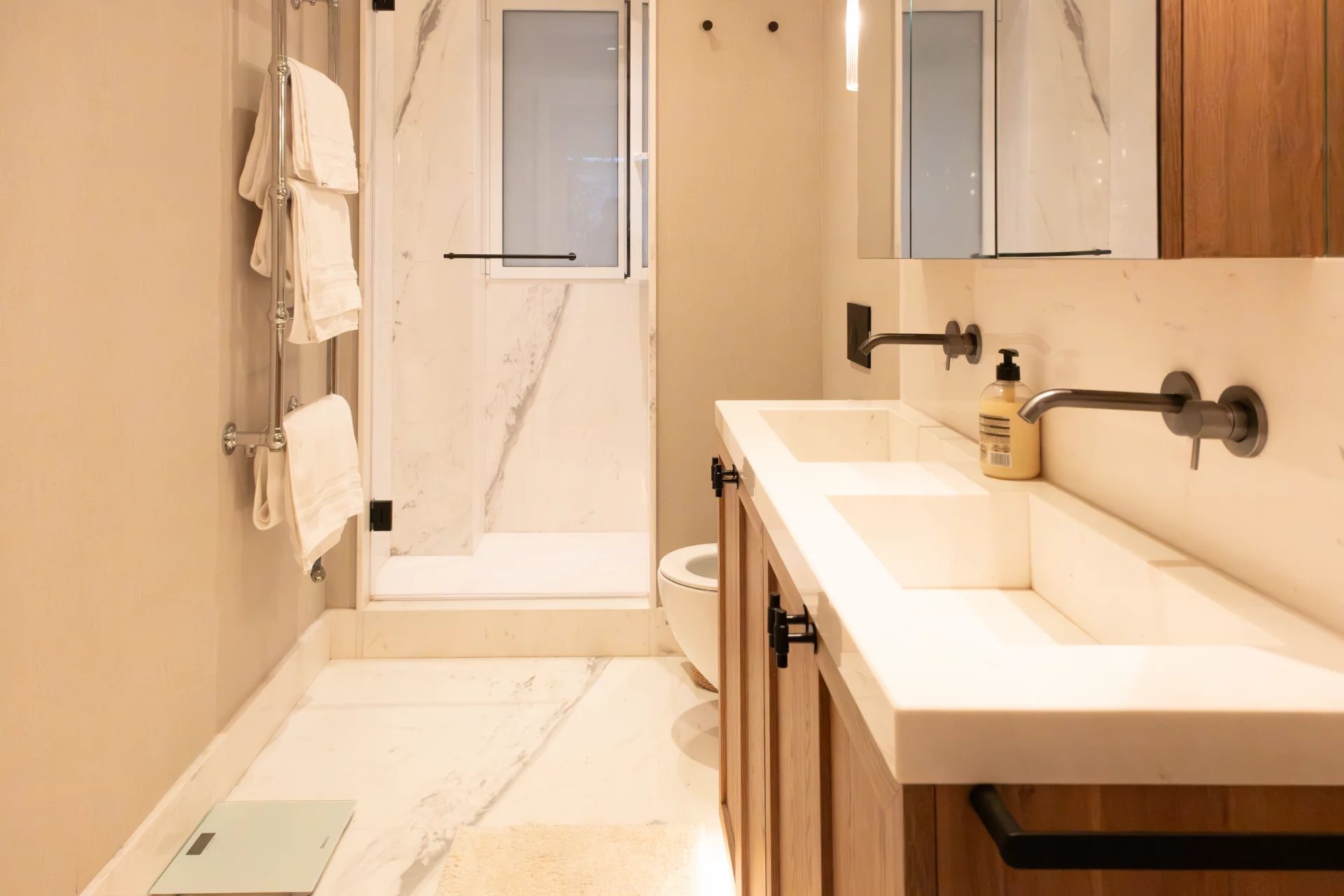 La zona de noche se compone de dos dormitorios, ambos con excelente tamaño y armarios empotrados. El dormitorio principal en suite dispone de baño privado y una atmósfera serena y sofisticada. El segundo dormitorio cuenta igualmente con un alto nivel de confort y acceso a un baño completo adicional.