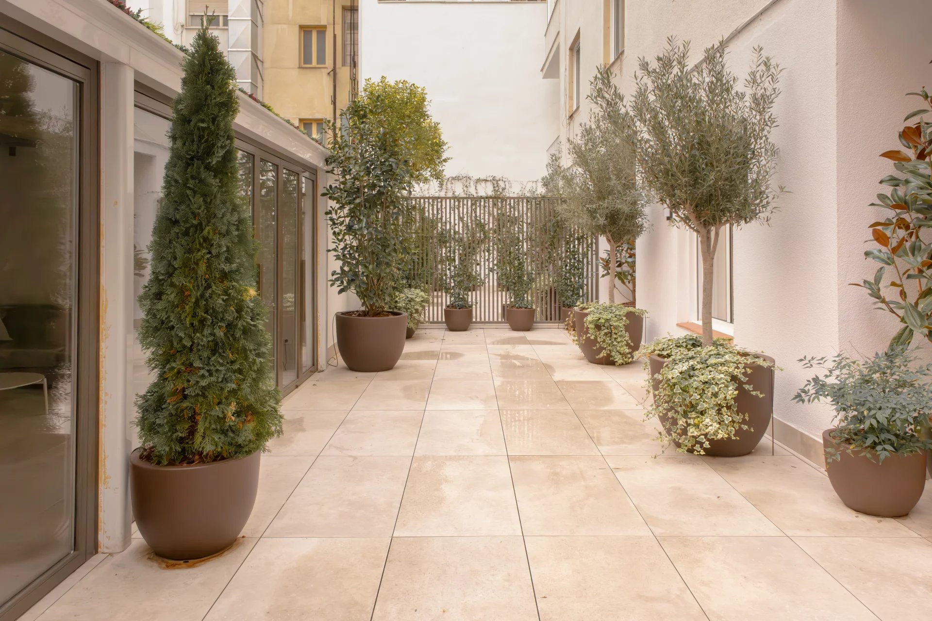 La vivienda cuenta con una superficie total de 245 m², incluyendo un patio privativo de generosas dimensiones, concebido como una auténtica extensión del espacio interior y un oasis de tranquilidad en el corazón de la ciudad.
