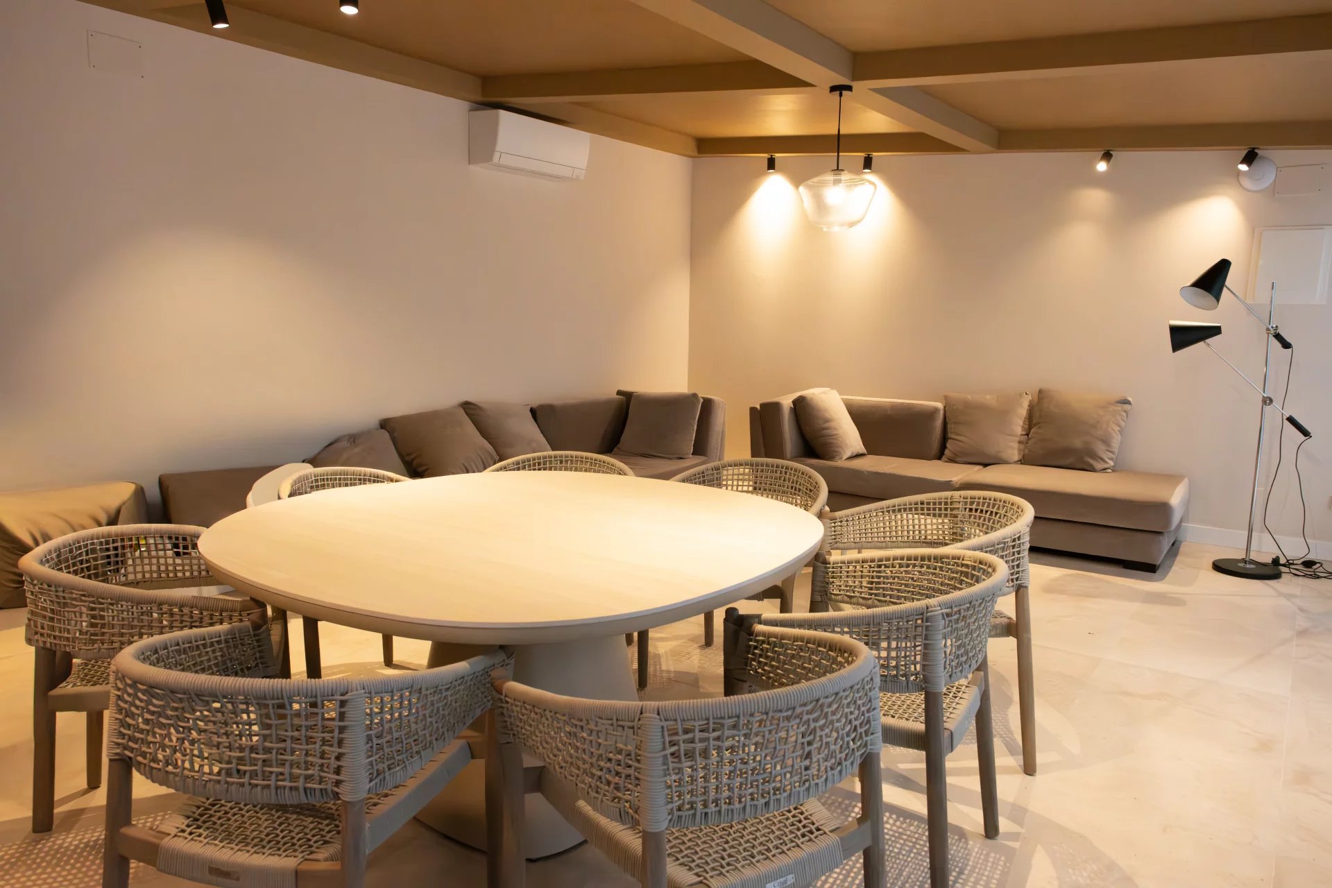 El interior ha sido diseñado con un criterio claramente residencial, cuidando cada detalle y utilizando materiales de primer nivel. La zona de día se articula en un amplio espacio abierto que integra salón, comedor y cocina, con una conexión directa y fluida con el patio, aportando luz natural, profundidad y una agradable sensación de continuidad.