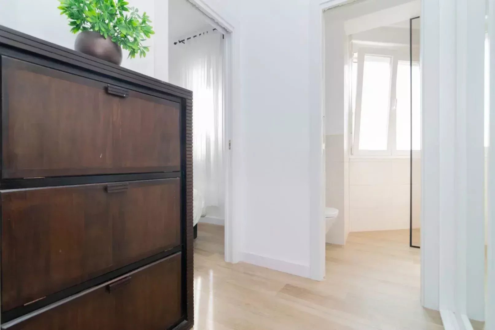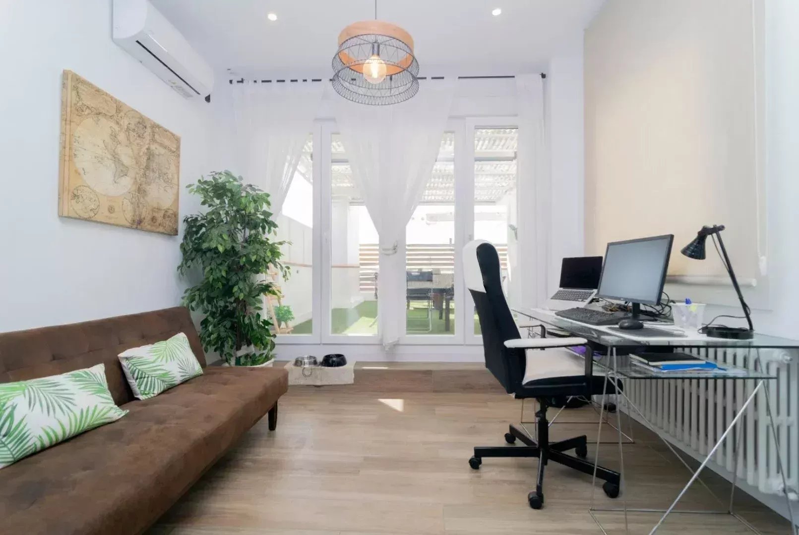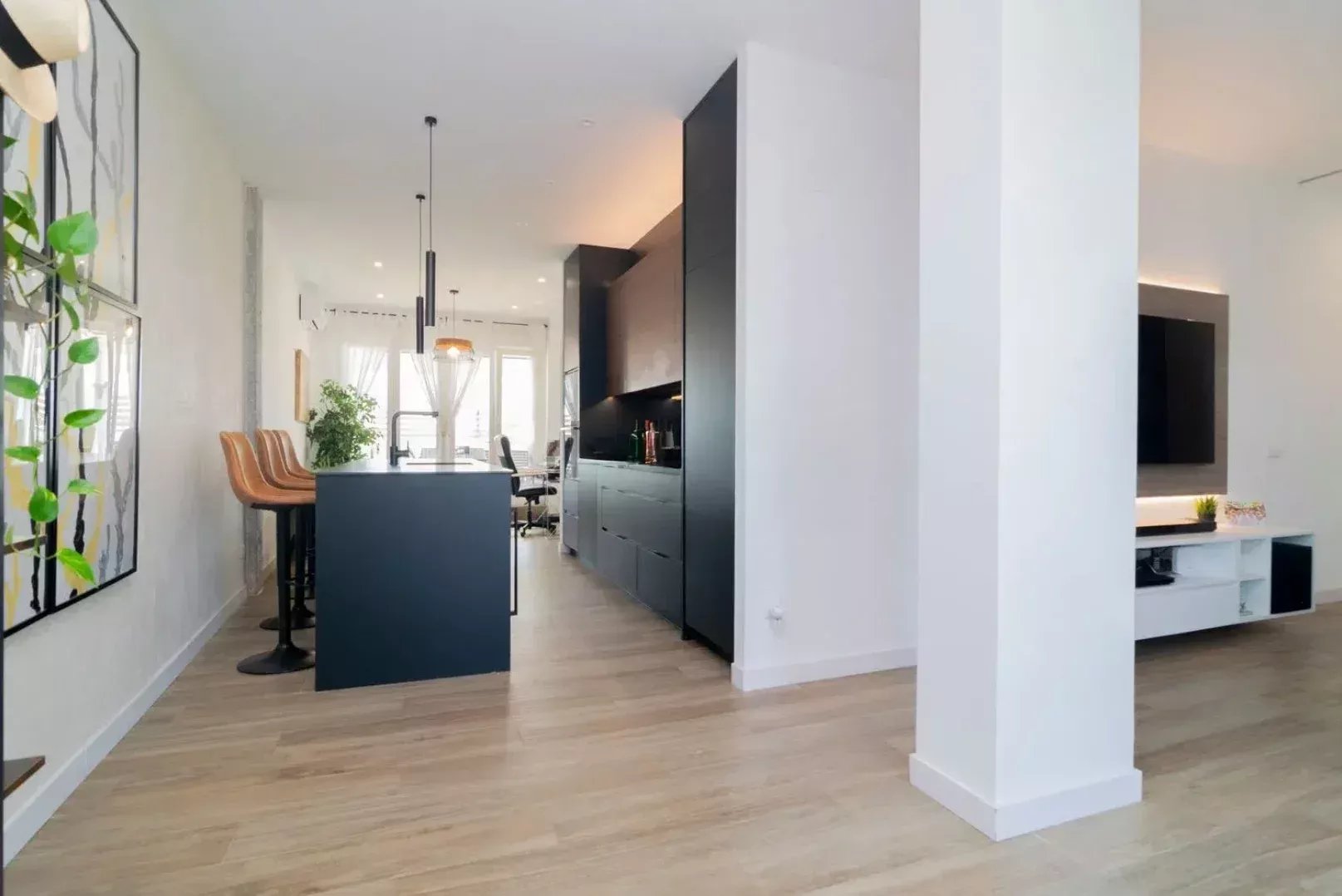 Reformado íntegramente con materiales de alta gama y una estética contemporánea, el ático ofrece una distribución equilibrada: dos dormitorios en suite con amplios armarios, un luminoso salón con zona de comedor, cocina abierta totalmente equipada y dos espacios versátiles ideales para teletrabajo. Techos altos, climatización en todas las estancias, calefacción central y un ambiente excepcionalmente silencioso completan la experiencia.