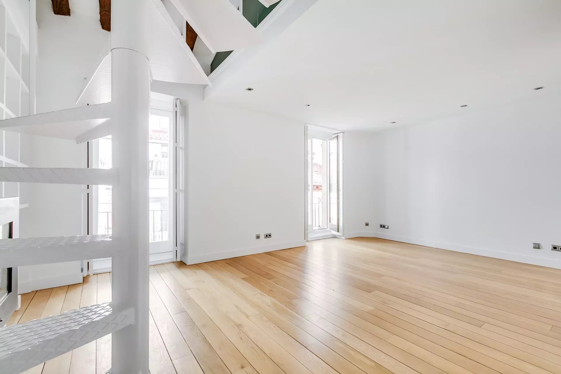 Al estar en el tercer piso de un edificio con solo un vecino por planta, sin ascensor, disfrutarás de privacidad y discreción en una tranquila calle en el centro de Madrid. Por su doble orientación hay luz natural por todo el espacio.