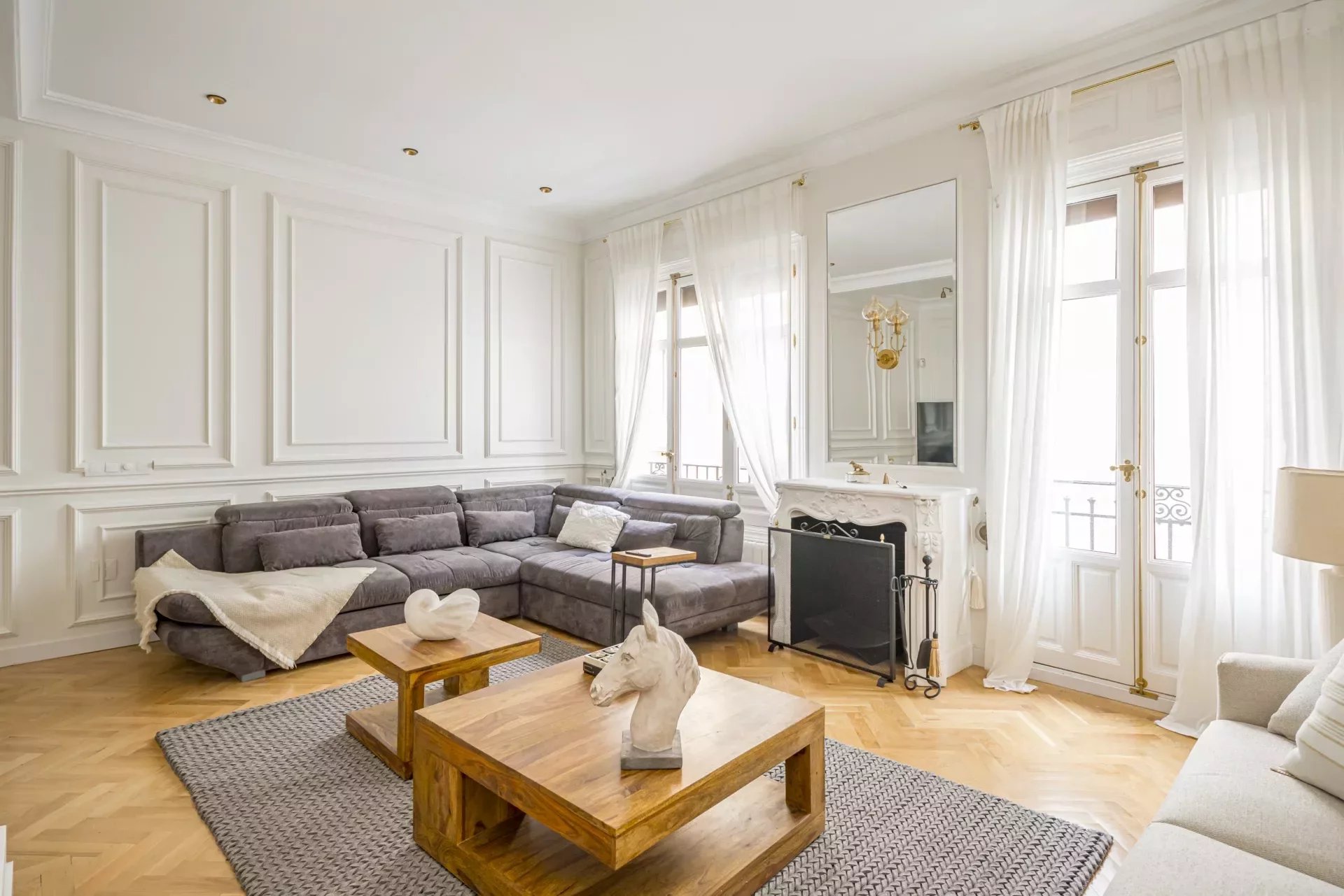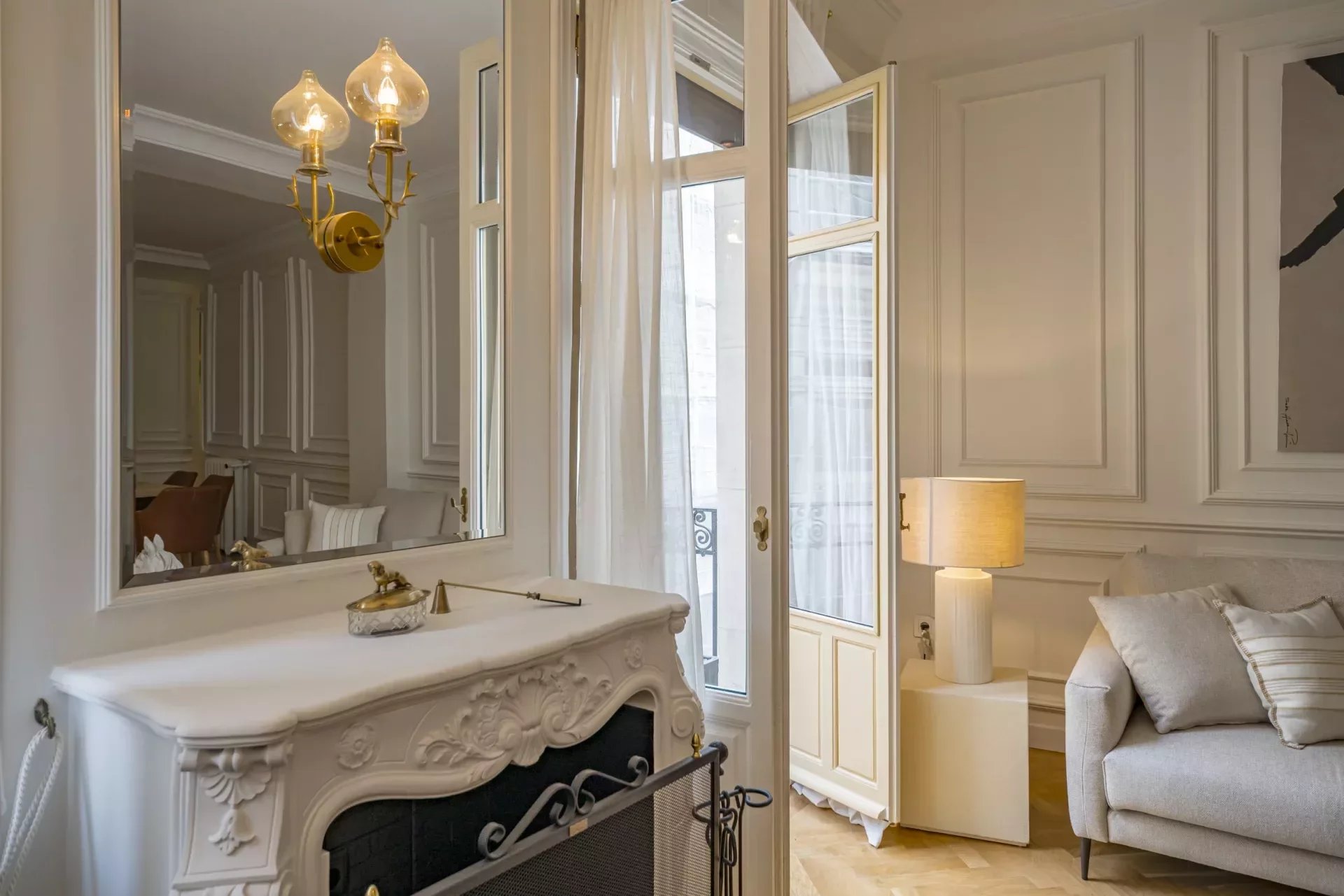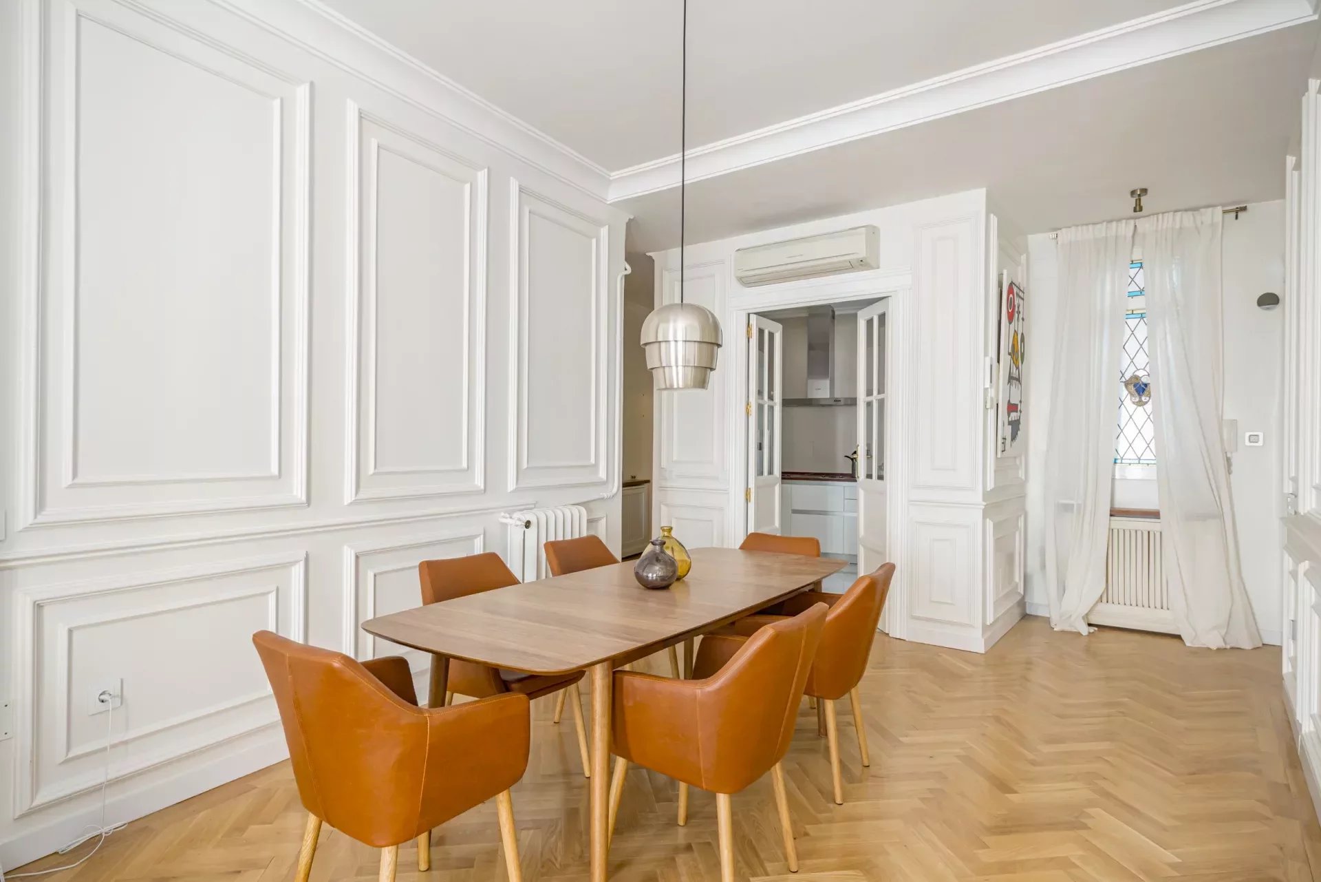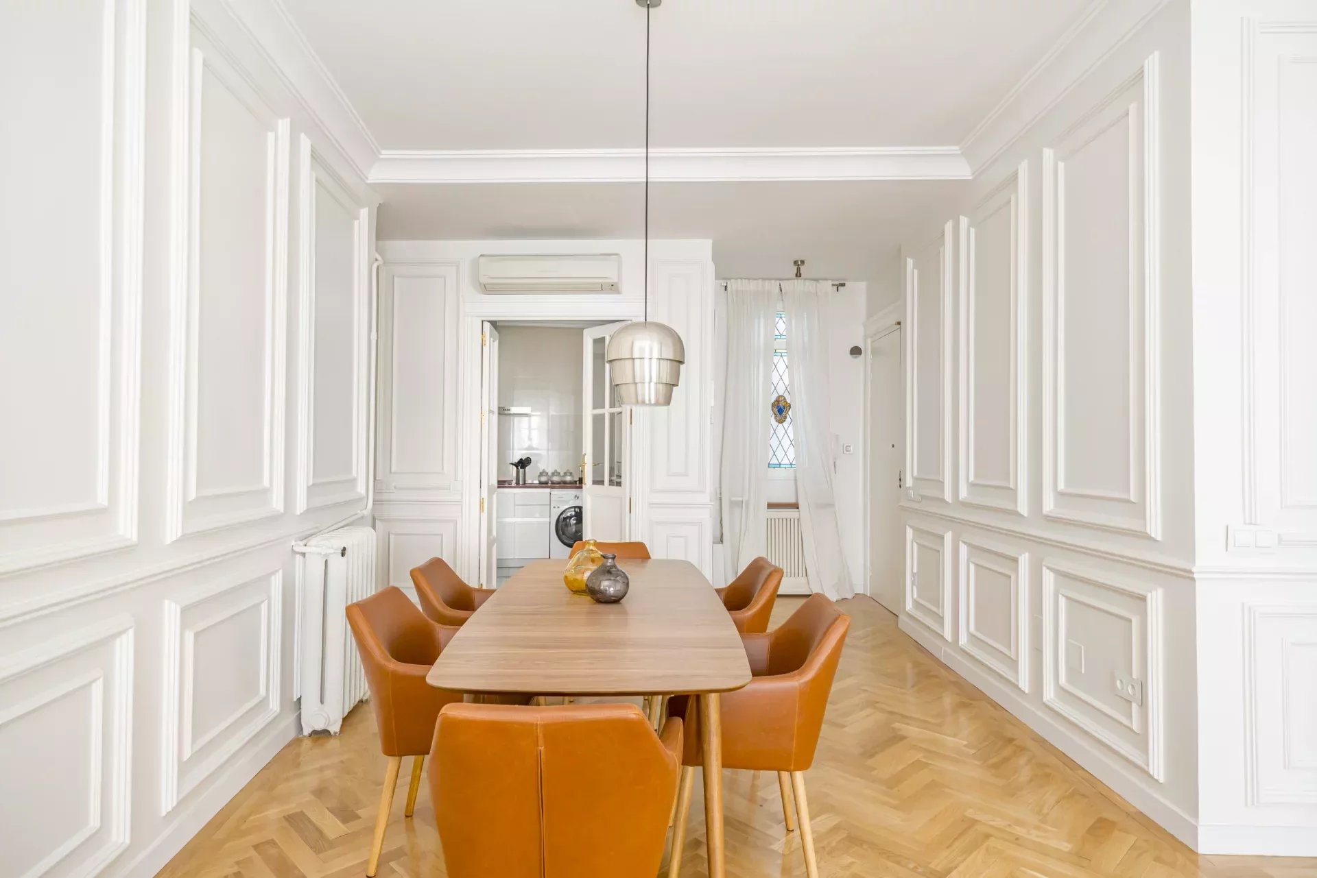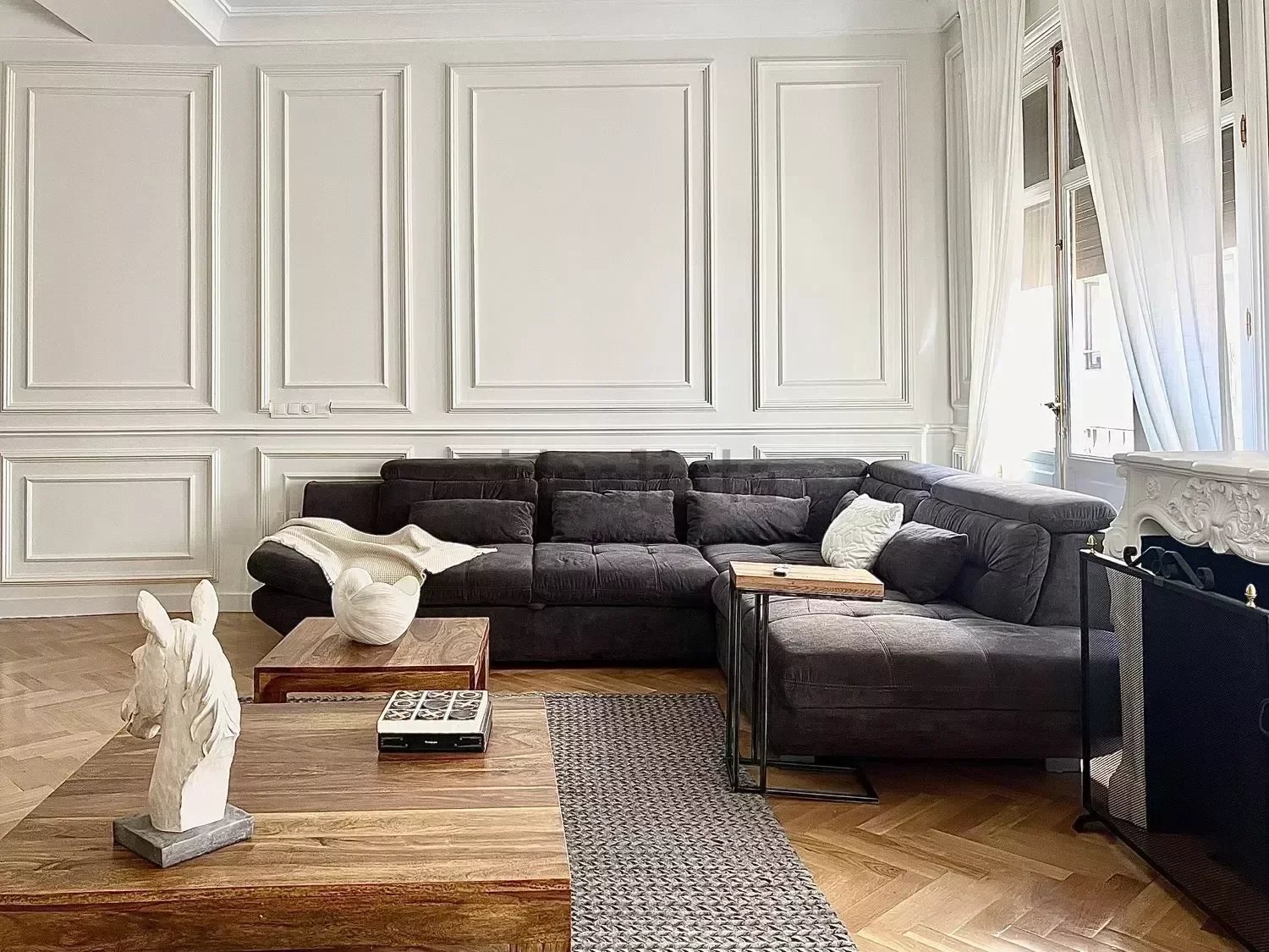 La propiedad se alquila completamente amueblada y ha sido decorada con un cuidado interiorismo de autor, concebido para ofrecer una experiencia residencial elegante y funcional. Los techos altos con molduras originales y la chimenea del salón aportan un carácter señorial, mientras que los elementos actuales equilibran el conjunto con un estilo refinado y actual.