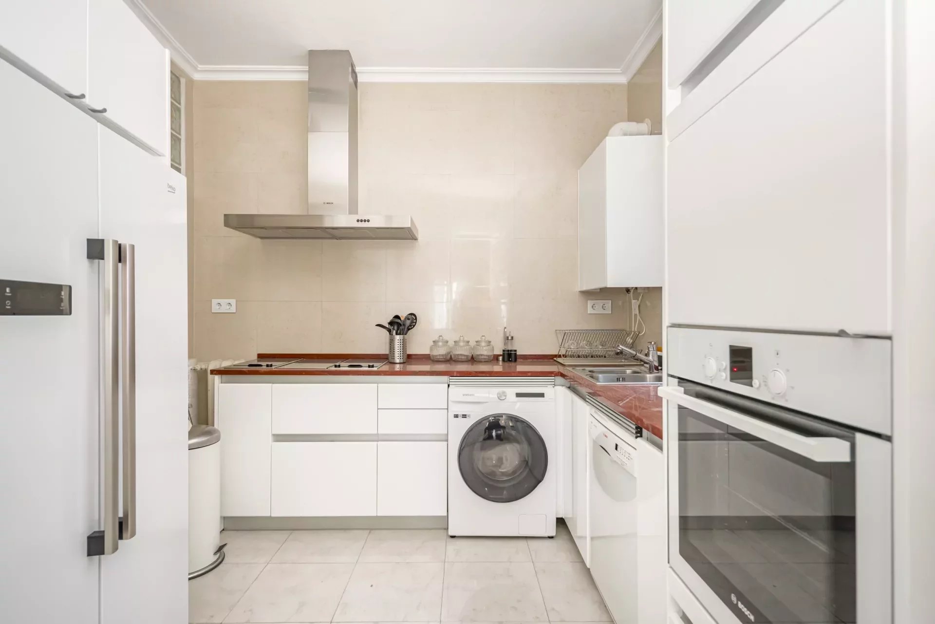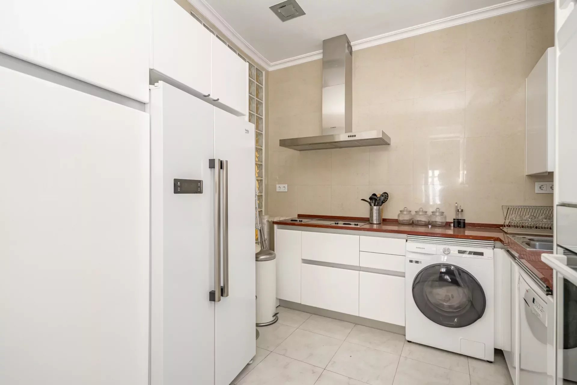 La cocina, diseñada para los amantes de la gastronomía, está equipada con electrodomésticos de última generación y elegantes acabados en maderas nobles, combinando estética y funcionalidad a la perfección.