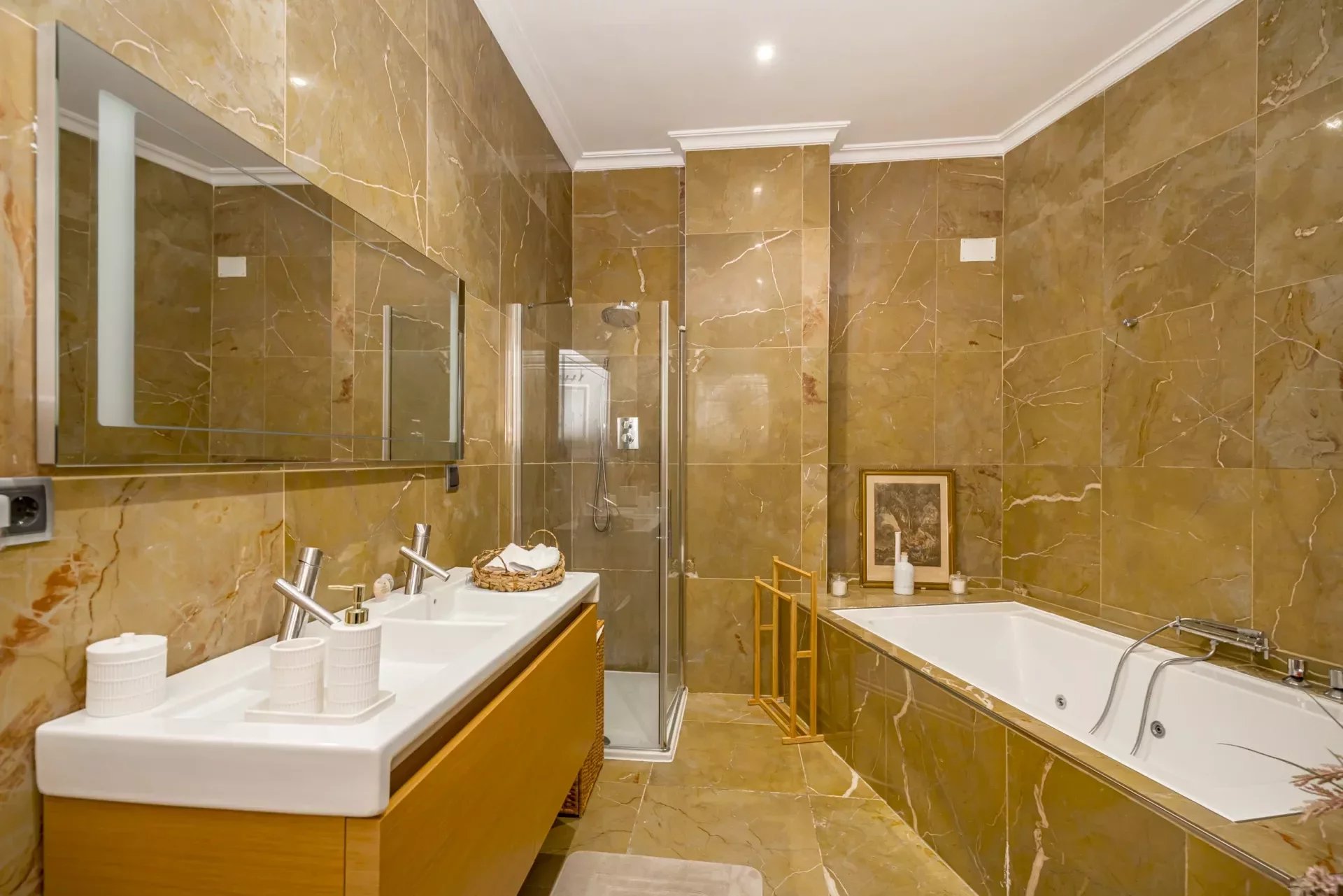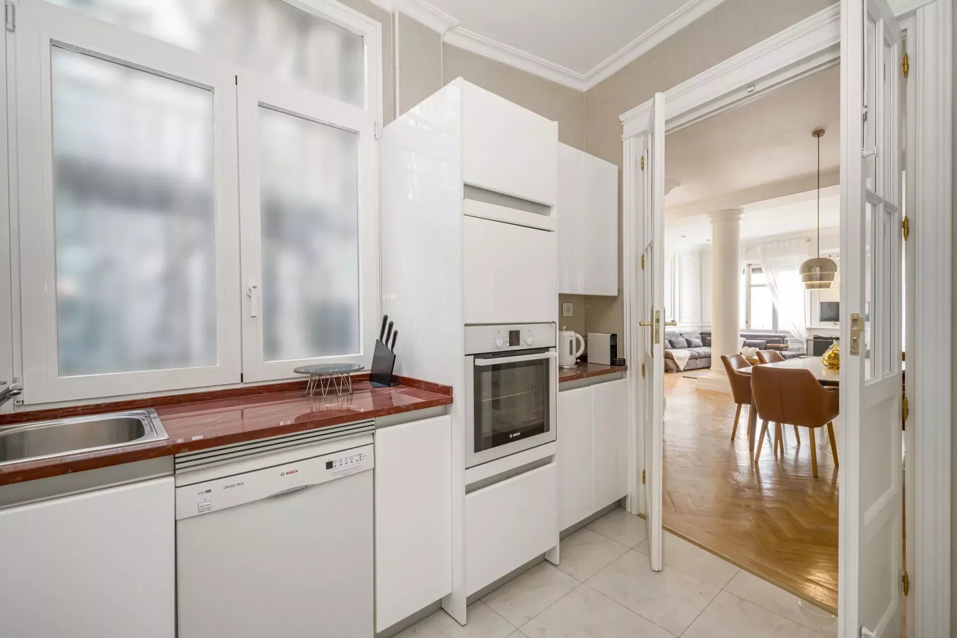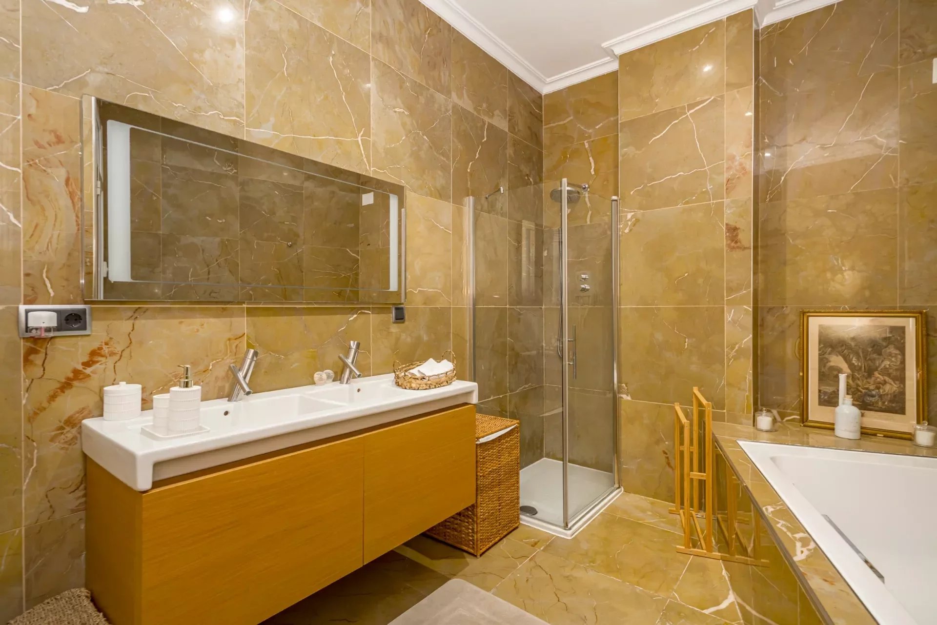 Cada detalle ha sido cuidadosamente seleccionado para maximizar el confort y el estilo. Materiales premium como el mármol y la madera se integran en una armonía equilibrada, mientras que la abundante luz natural y los techos altos aportan una agradable sensación de amplitud y bienestar.