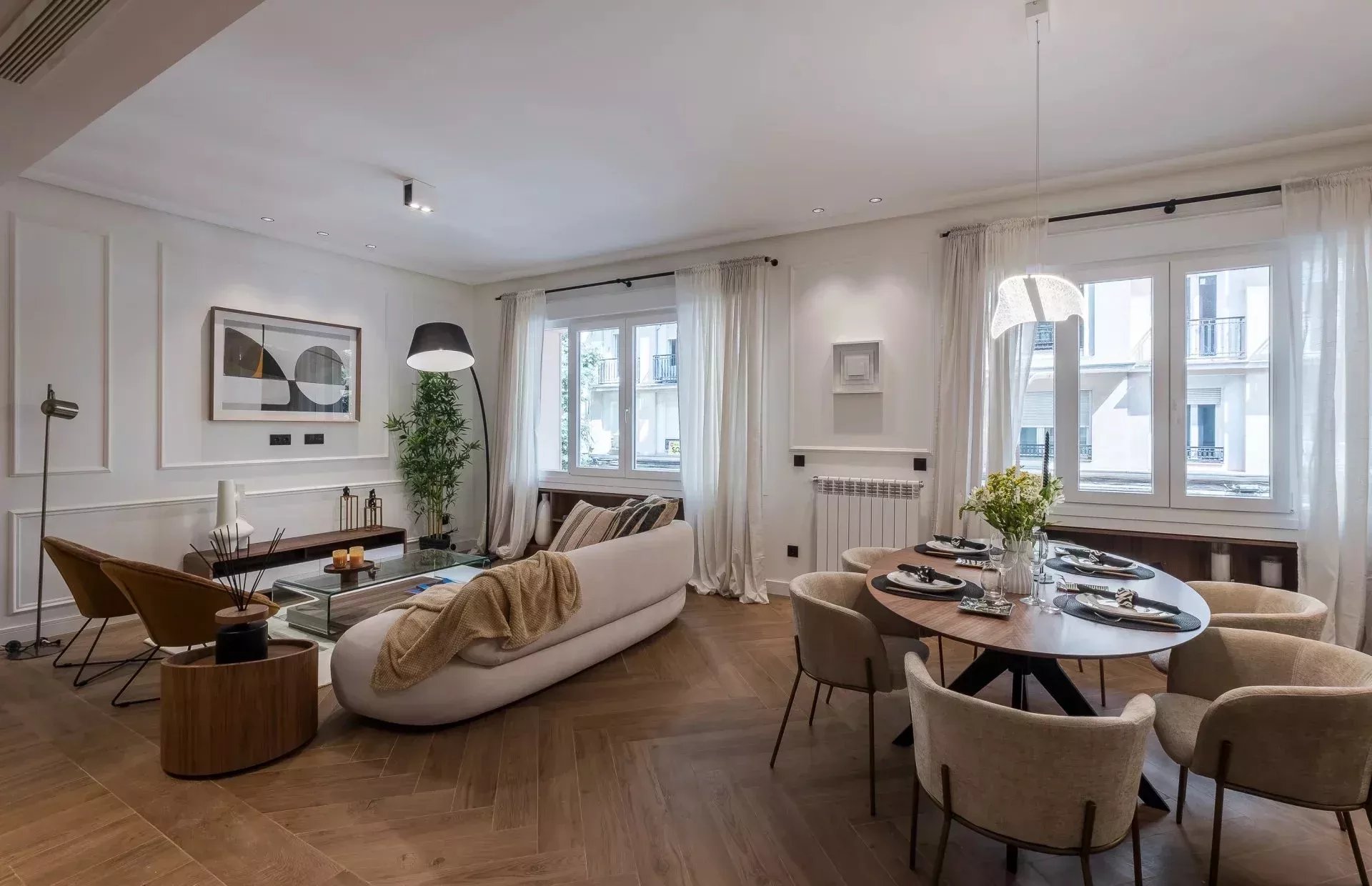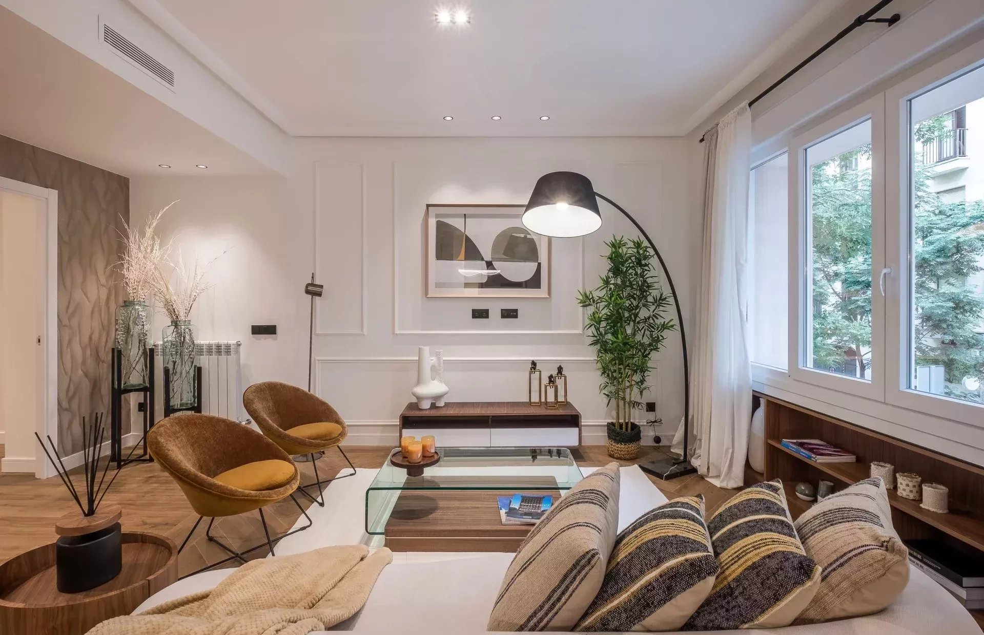 Barnes Madrid presenta un espectacular piso reformado de lujo en alquiler, completamente amueblado y decorado con un gusto exquisito. Este elegante apartamento, ubicado en una de las zonas más exclusivas de Chamberí, se distingue por sus acabados de alta calidad y su diseño moderno y sofisticado.