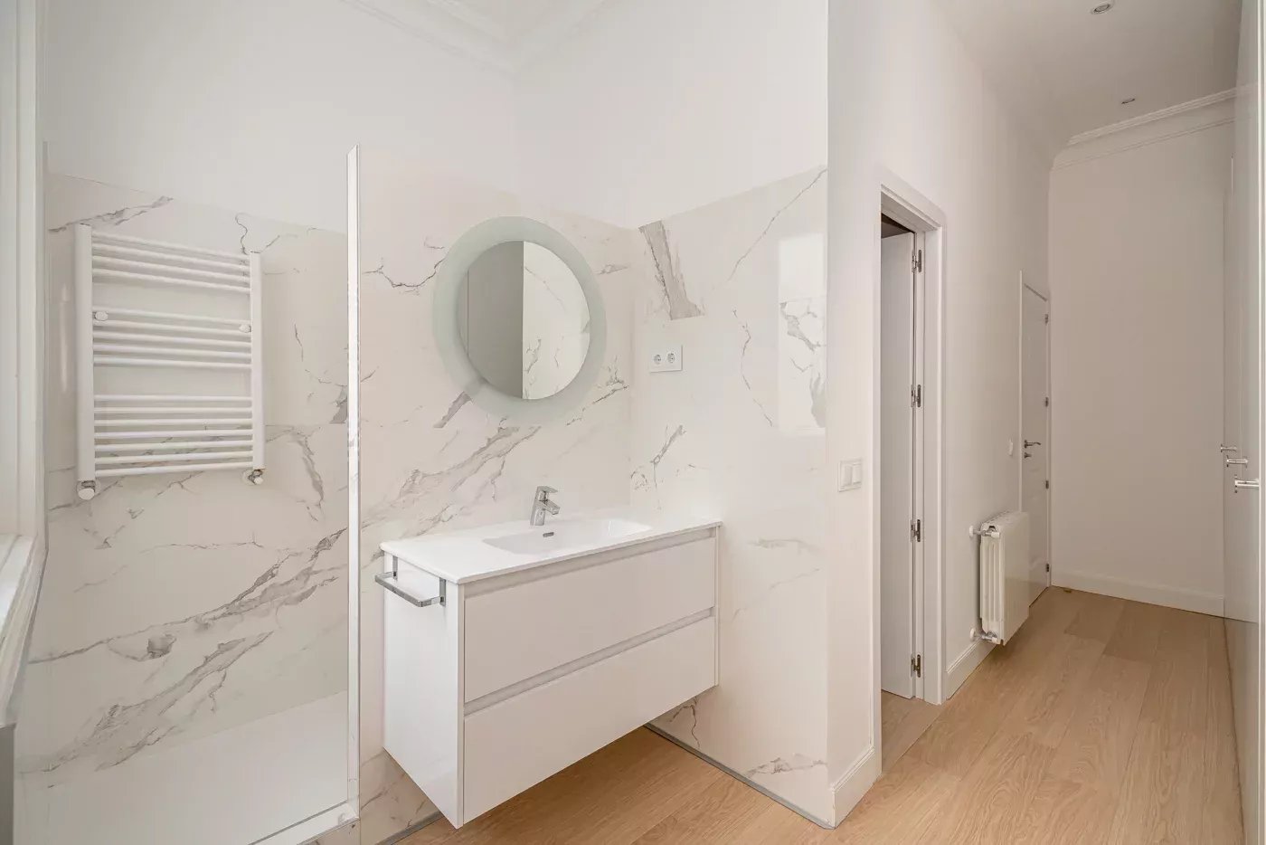 Sus cuatro balcones al exterior proporcionan mucha luz a la vivienda y vistas al vibrante paisaje urbano de Madrid, en una calle muy tranquila.