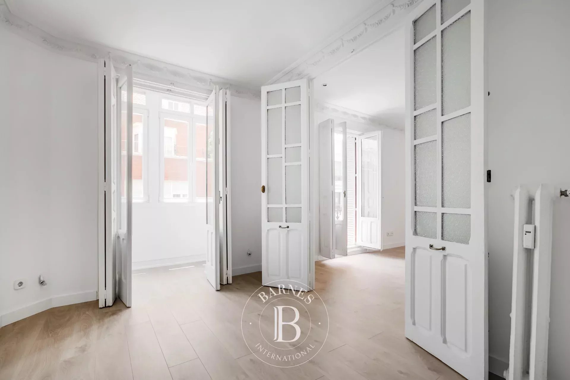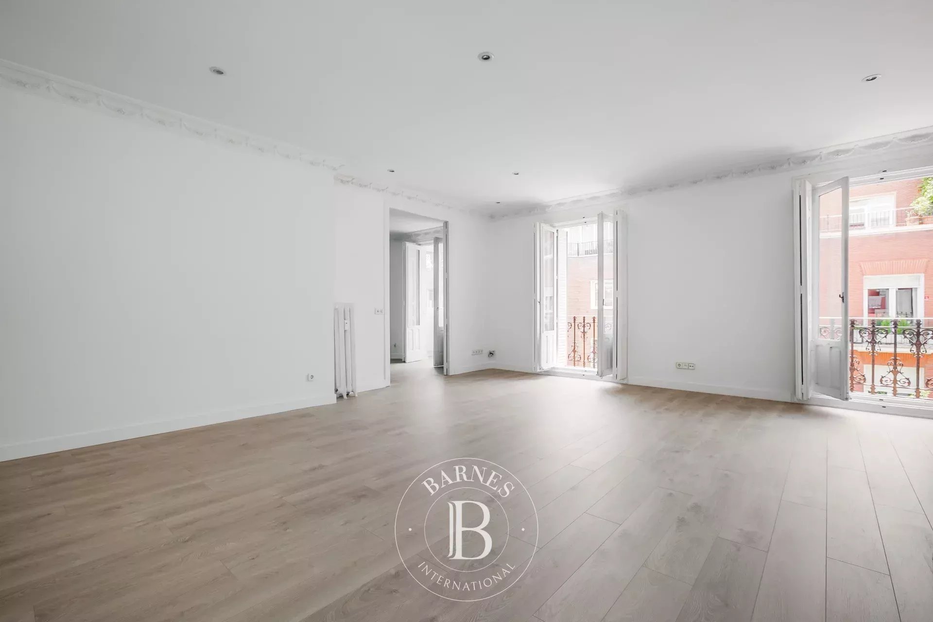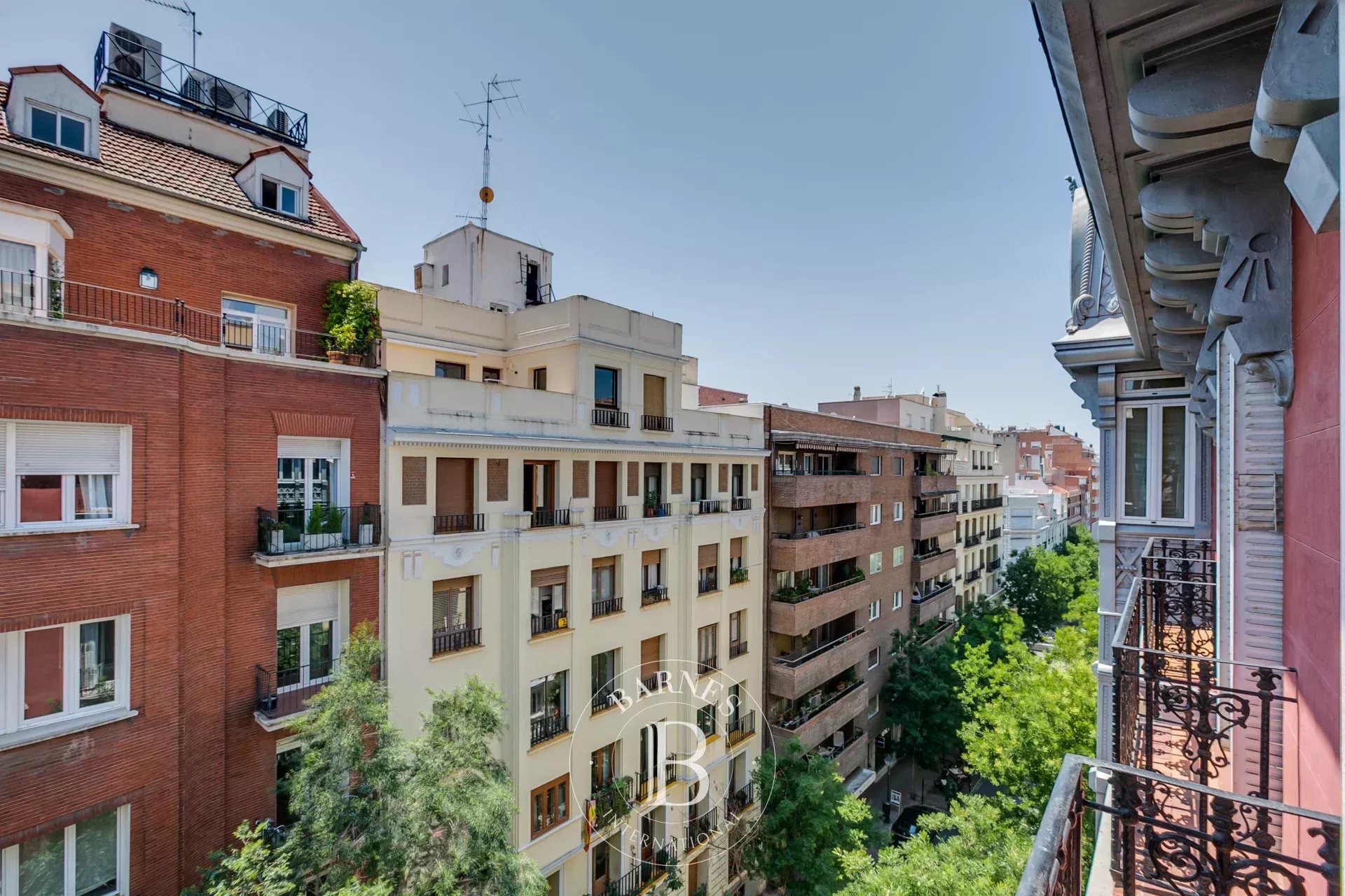 Barnes Madrid presenta este piso de 170 M2 útiles, de tres dormitorios, con amplio salón comedor exterior con vistas y otro salón independiente que puede ser sala de estar, comedor independiente o despacho, con mirador y estanterías, cuenta con orientación sur lo que garantiza que tiene buena luz todo el día .