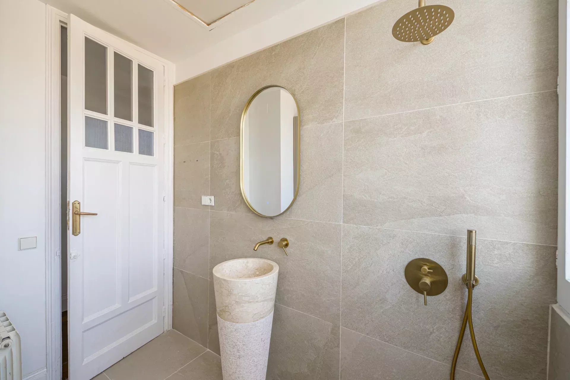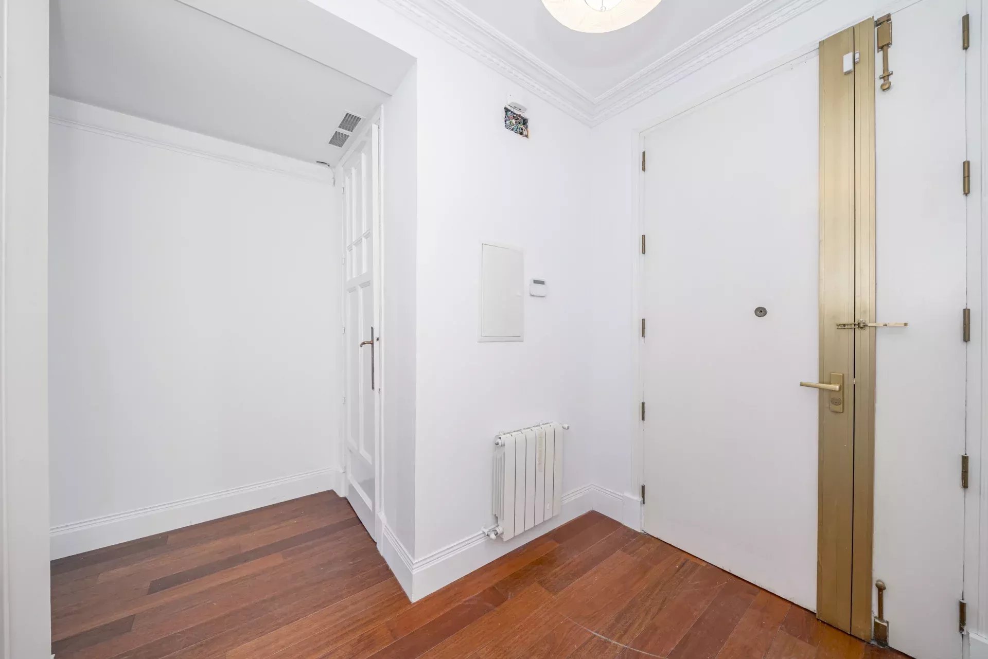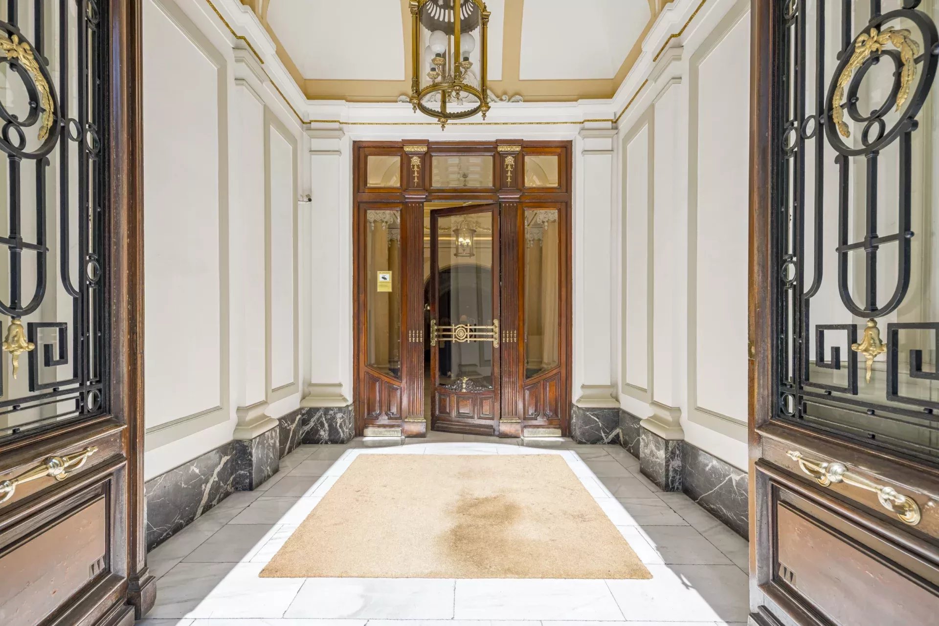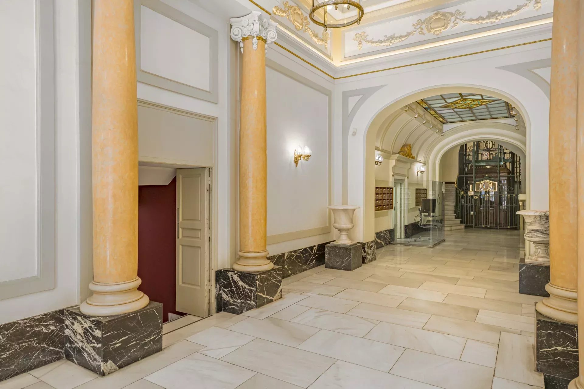 La finca, representativa y de gran valor arquitectónico, conserva materiales nobles y detalles originales. Sobresale su extraordinario ascensor de caoba —uno de los elementos más singulares del edificio—, junto con una imponente escalera central y un acceso principal de gran presencia. En su rehabilitación se han aplicado técnicas tradicionales para preservar la esencia histórica, un sello muy apreciado en el real estate de lujo en Madrid.