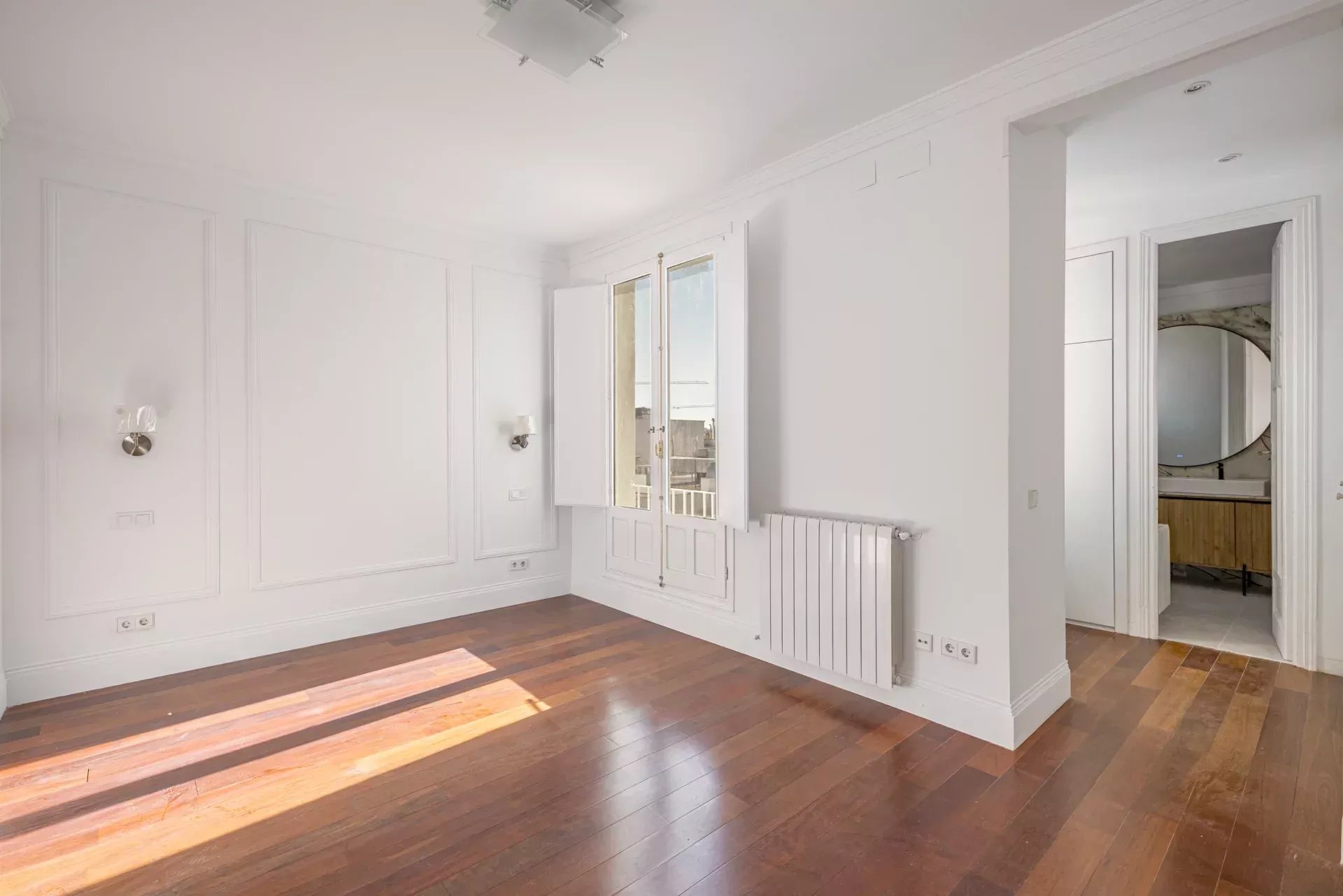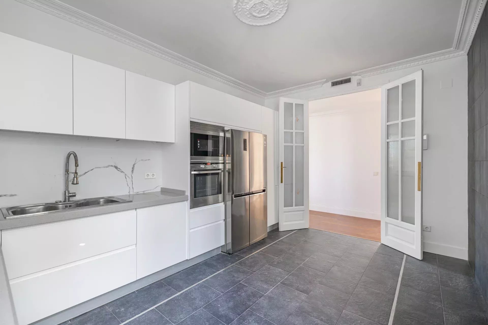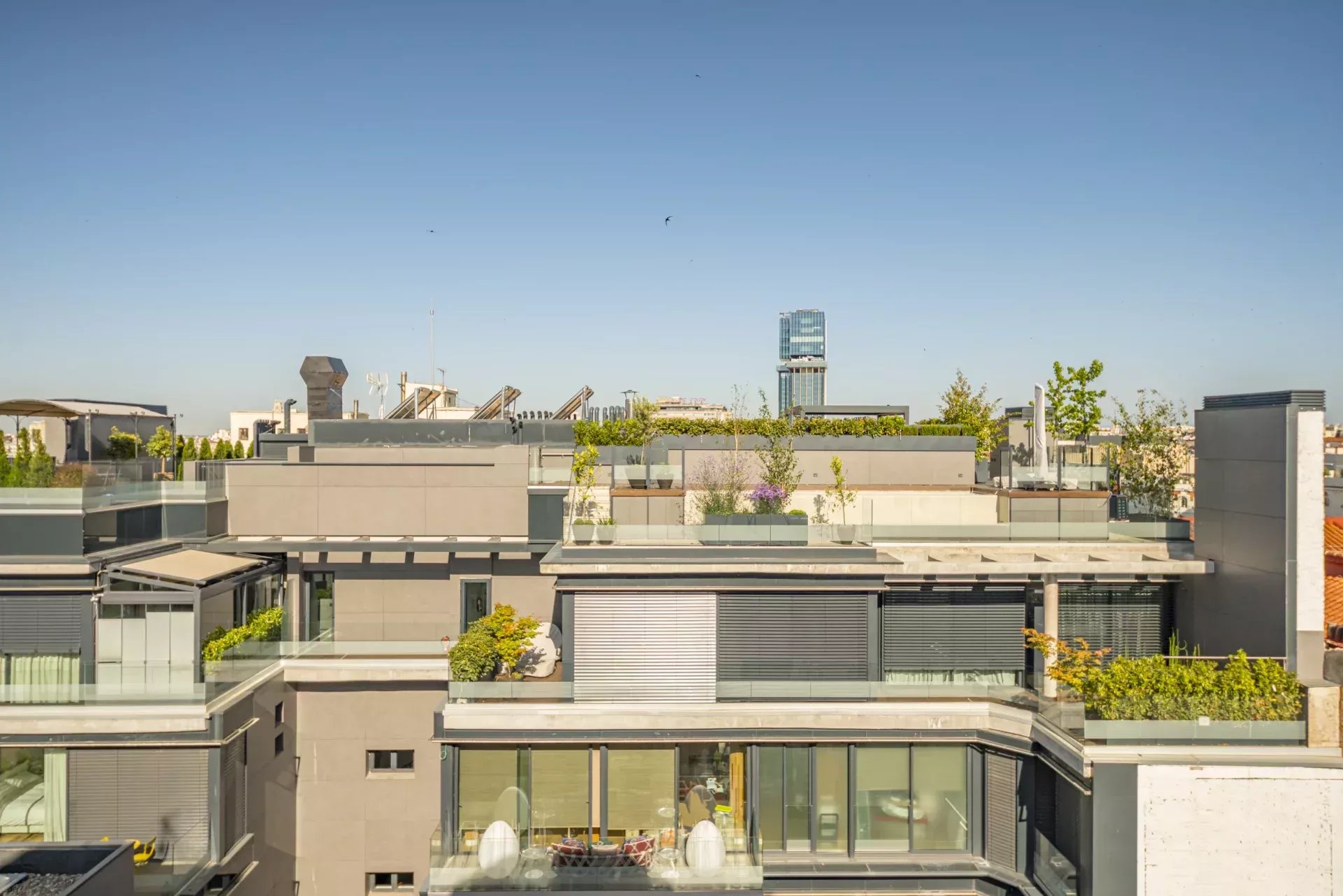 La vivienda, bañada de luz natural con ventanas en todas las estancias, ofrece un remanso de paz en el corazón de la ciudad. Dispone de tres dormitorios con armarios empotrados; el principal, con baño en suite y amplio vestidor. Se suman dos baños completos con acabados de diseño, un amplio y luminoso salón-comedor con balcón y una terraza con vistas despejadas, así como una cocina equipada con electrodomésticos de alta gama panelados. Los suelos de madera, la calefacción central de gas y el aire acondicionado por conductos en todas las estancias garantizan confort durante todo el año. El edificio cuenta con alta seguridad y servicio de portería.