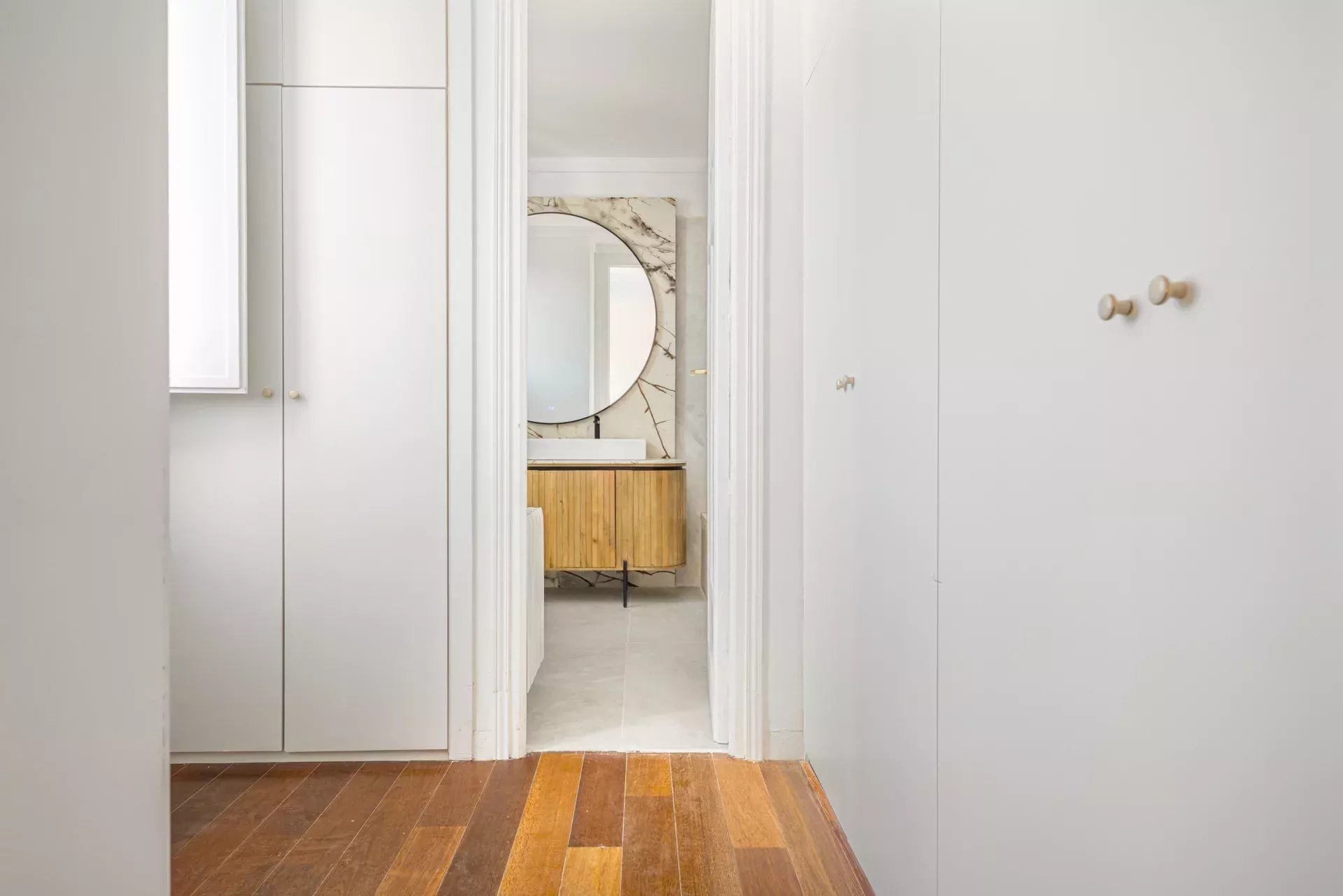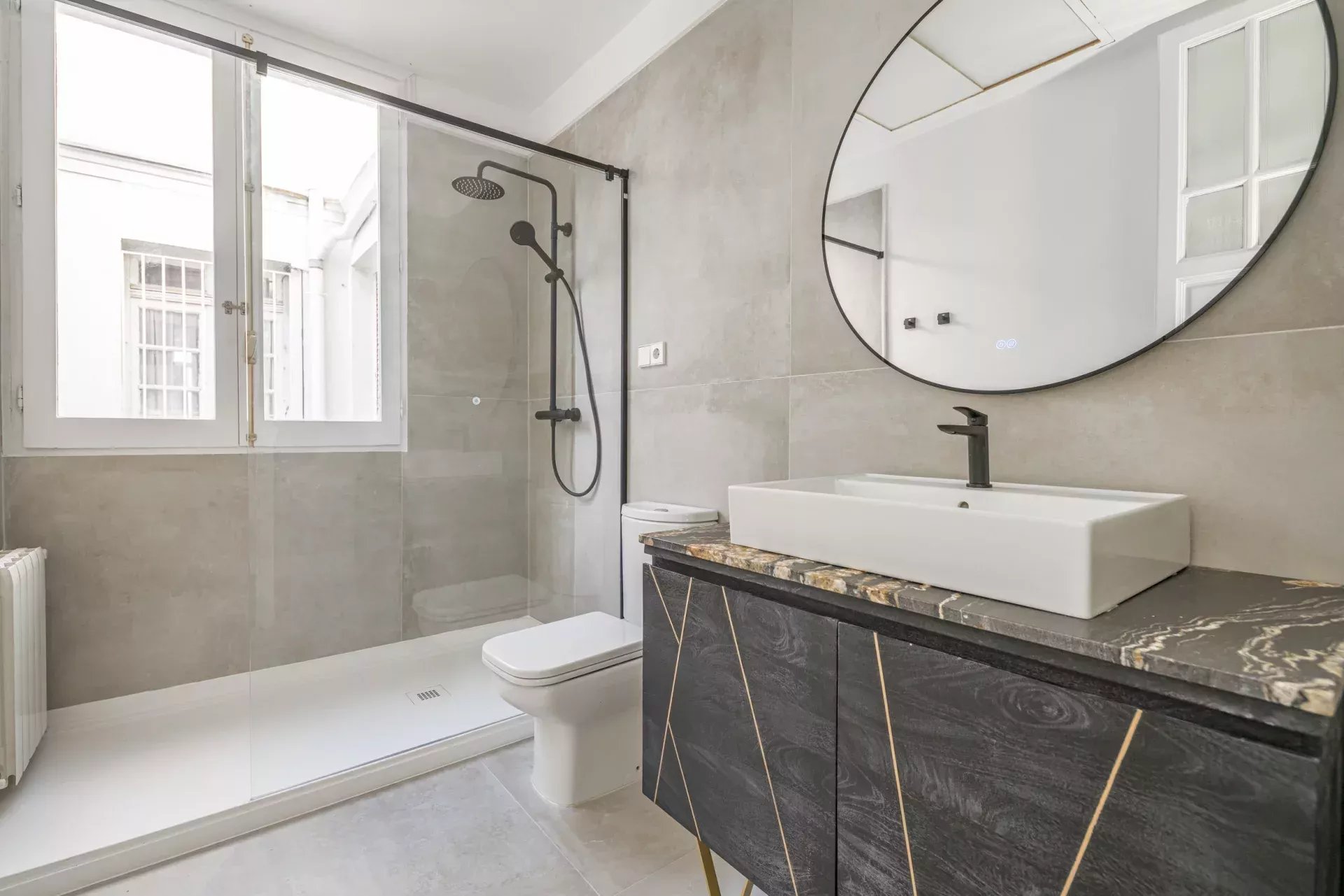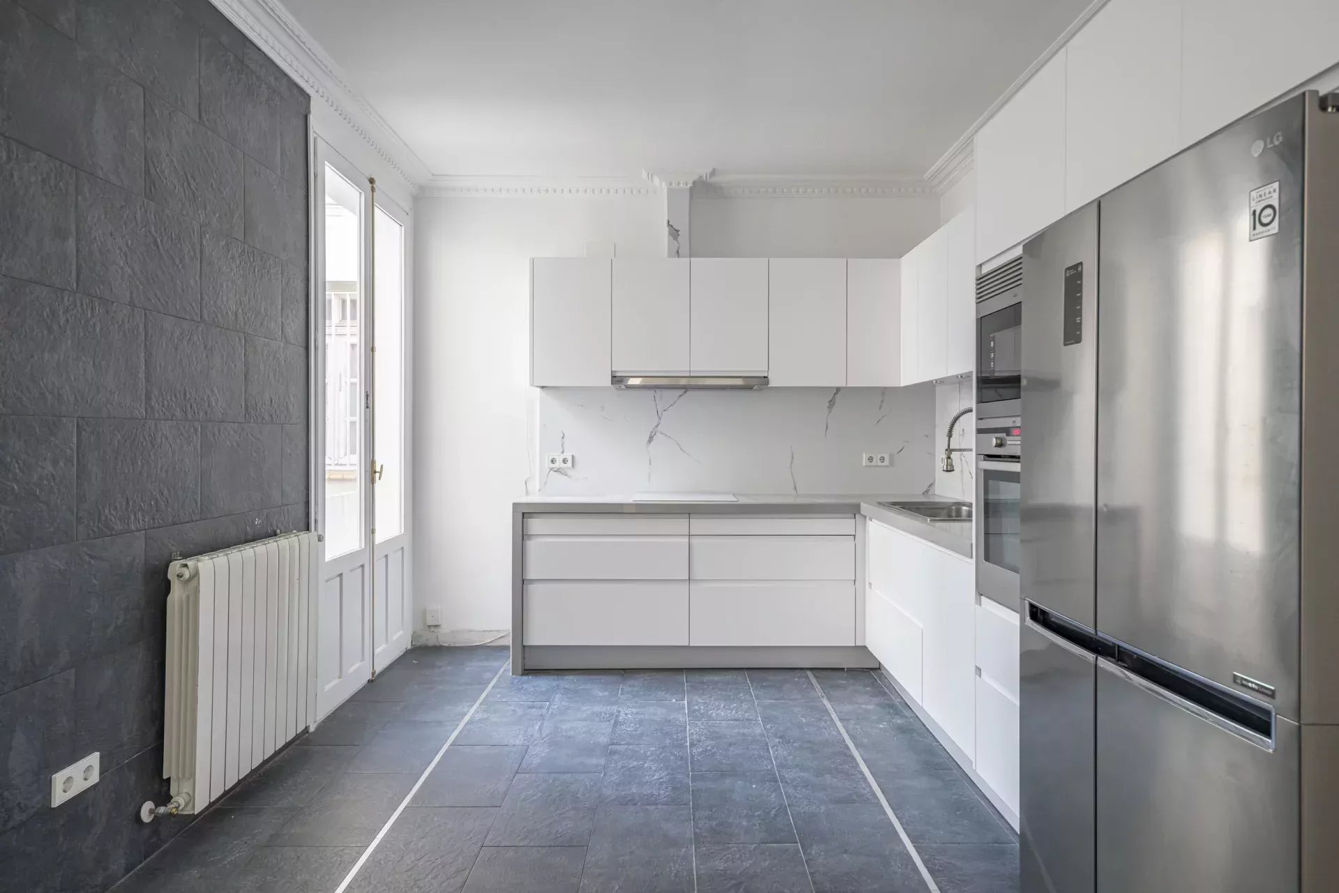 La vivienda, bañada de luz natural con ventanas en todas las estancias, ofrece un remanso de paz en el corazón de la ciudad. Dispone de tres dormitorios con armarios empotrados; el principal, con baño en suite y amplio vestidor. Se suman dos baños completos con acabados de diseño, un amplio y luminoso salón-comedor con balcón y una terraza con vistas despejadas, así como una cocina equipada con electrodomésticos de alta gama panelados. Los suelos de madera, la calefacción central de gas y el aire acondicionado por conductos en todas las estancias garantizan confort durante todo el año. El edificio cuenta con alta seguridad y servicio de portería.