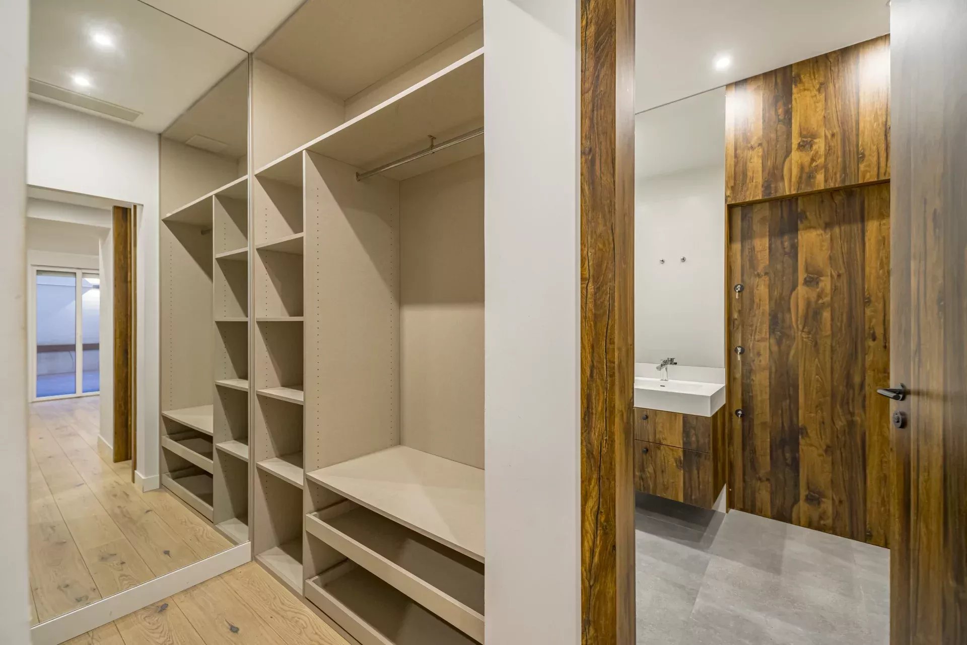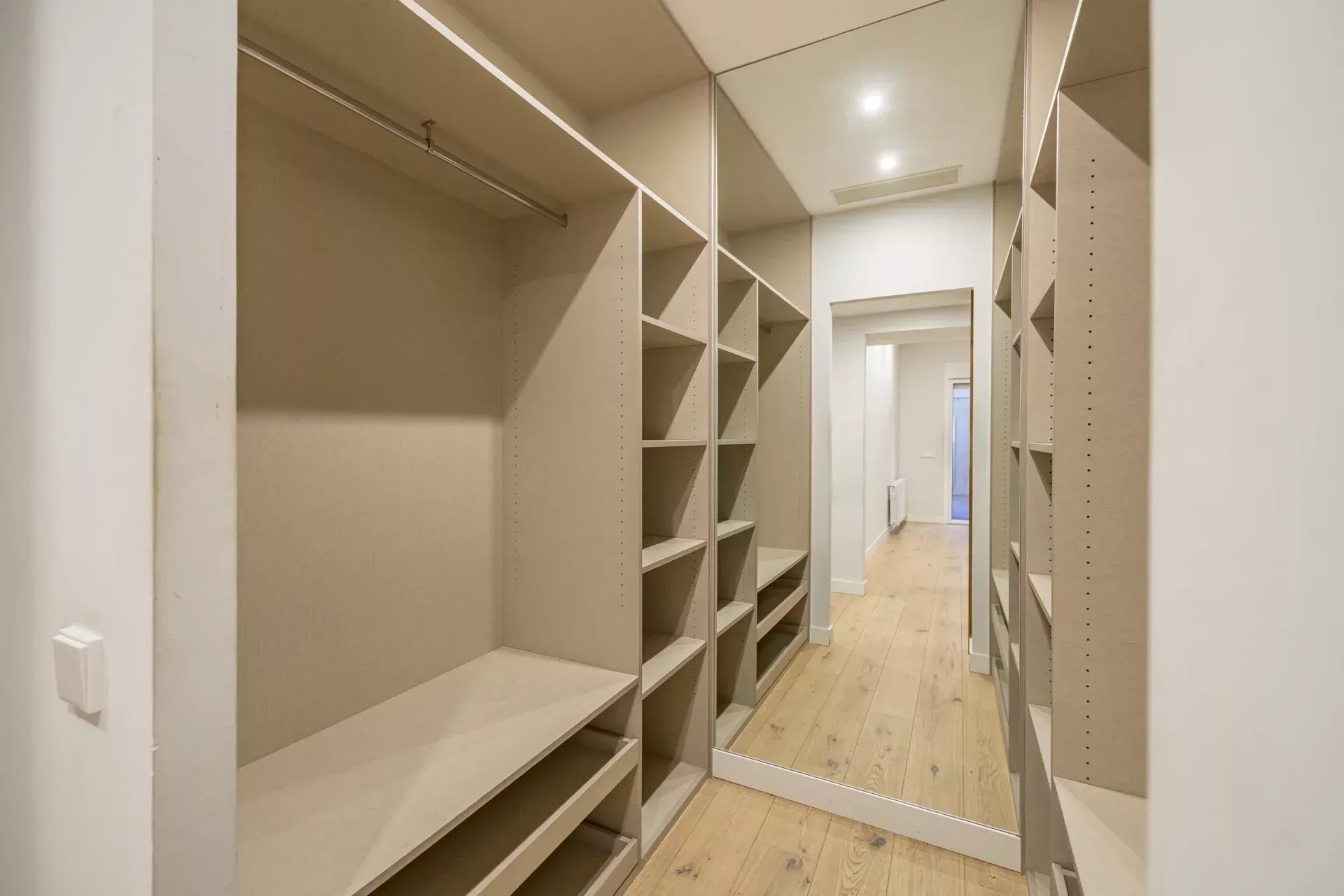 El dormitorio principal destaca por su amplio vestidor y acceso directo a la terraza.
