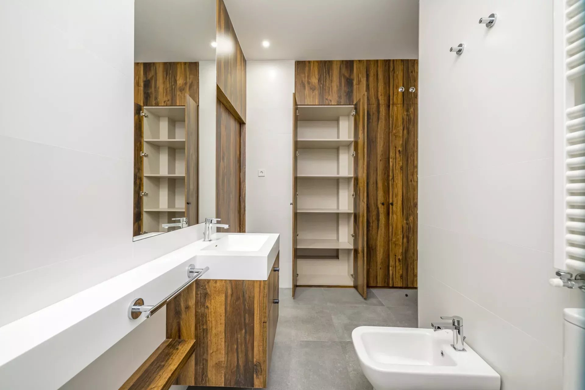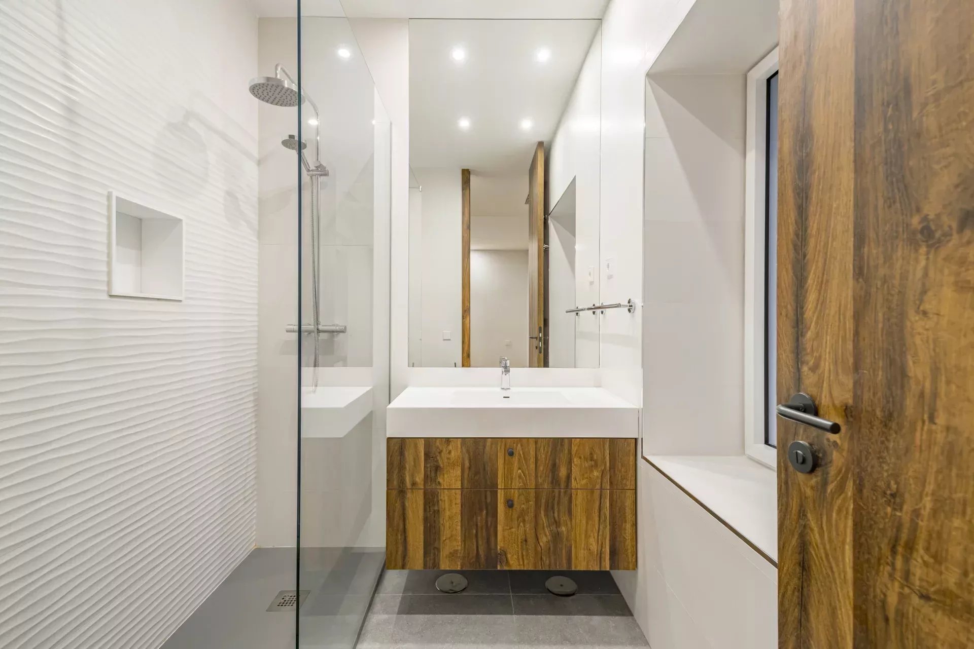 Los suelos de madera de roble, al igual que las puertas y estanterías a medida, aportan calidez y elegancia al conjunto.