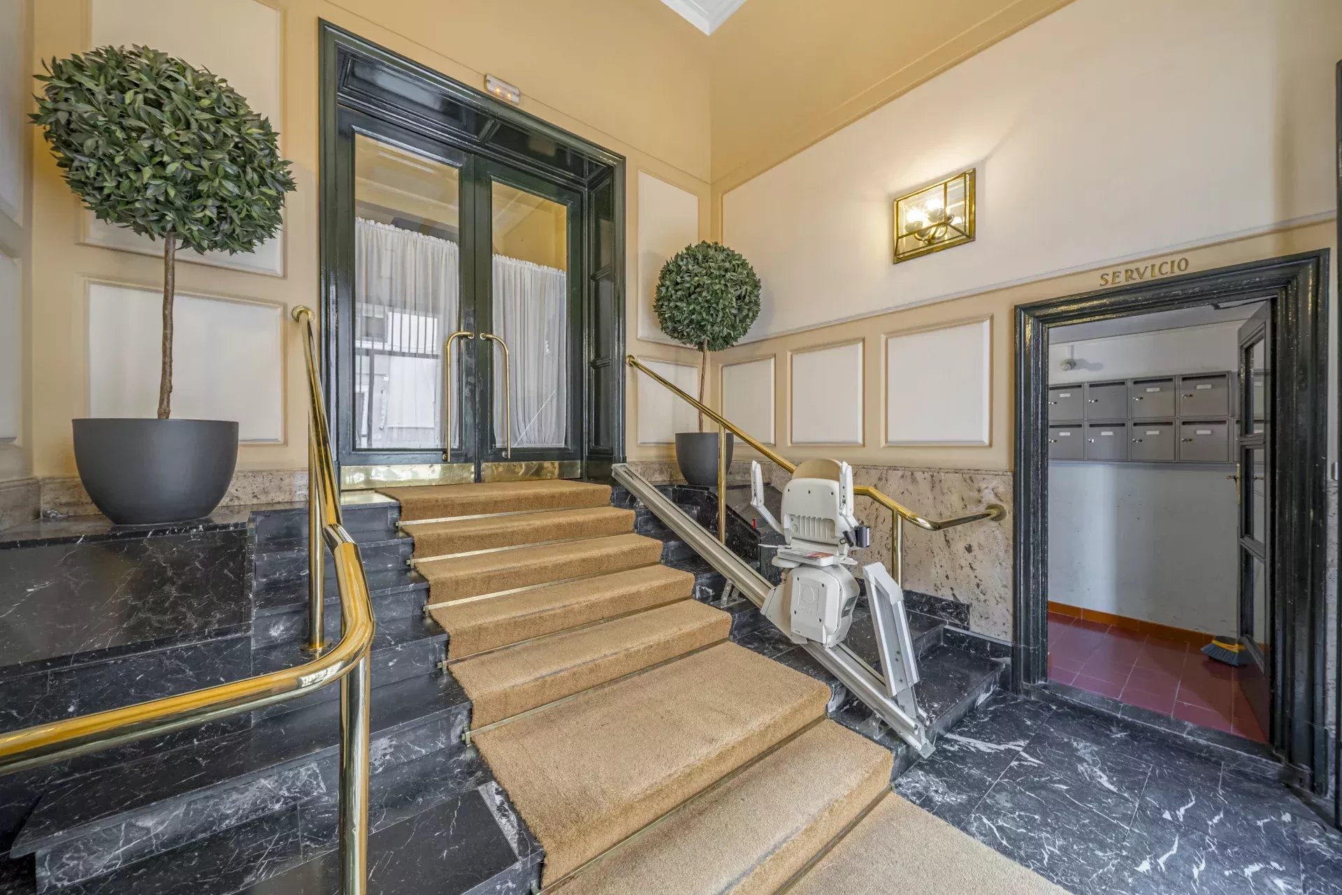 Ubicado en una finca clásica de 1944 con portal señorial, conserjería, ascensor y montacargas, el edificio combina elegancia y comodidad. La vivienda, situada en una cuarta planta exterior, conserva elementos clásicos como molduras y suelos de pino melis, integrados con una reforma moderna y acabados de alta calidad. Cuenta con calefacción central y aire acondicionado por conductos y splits.