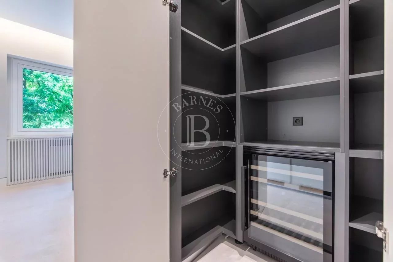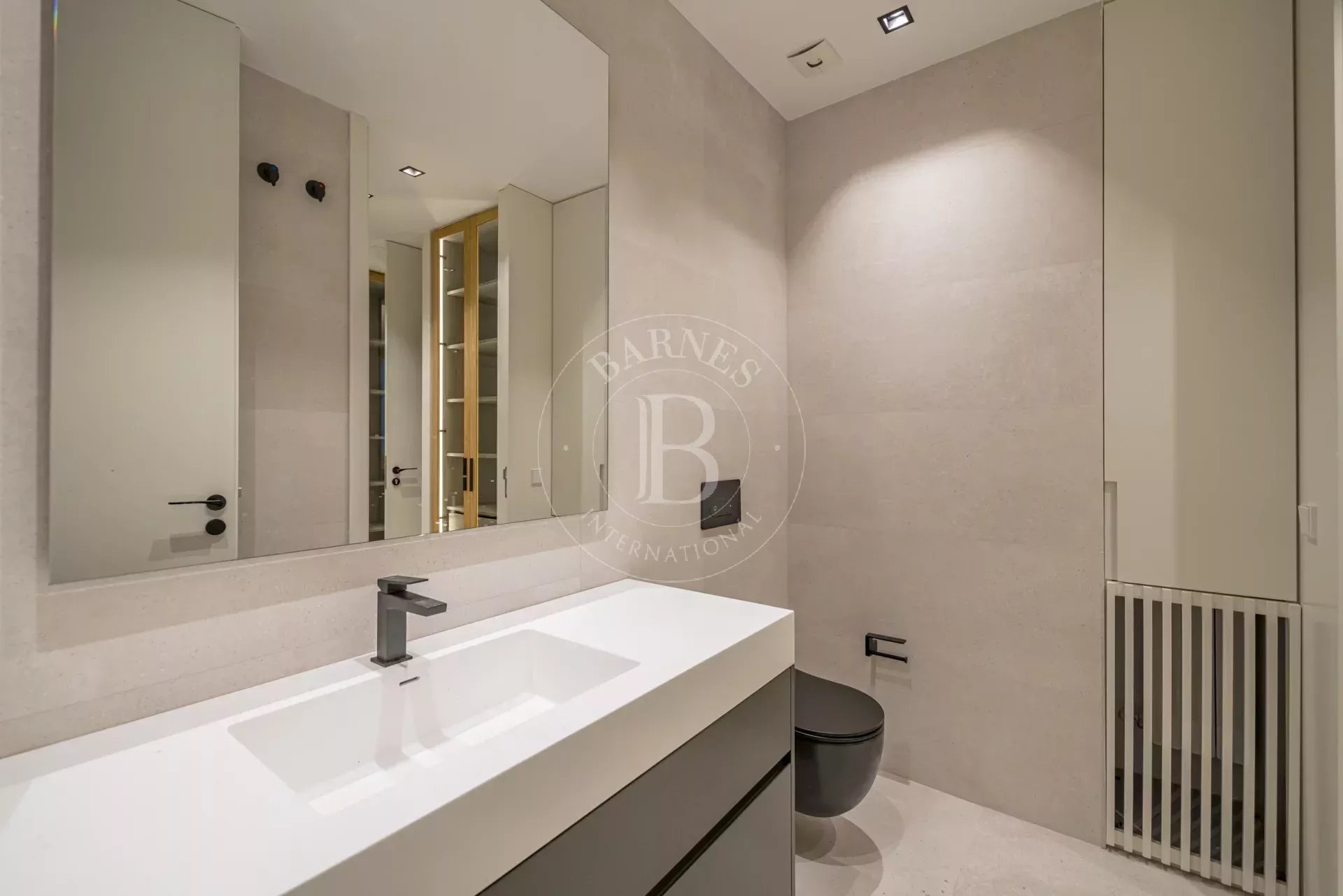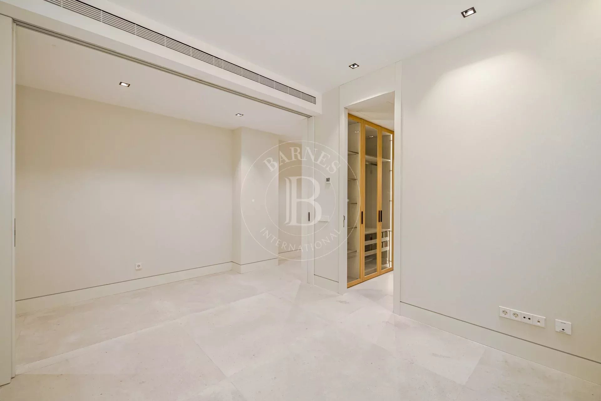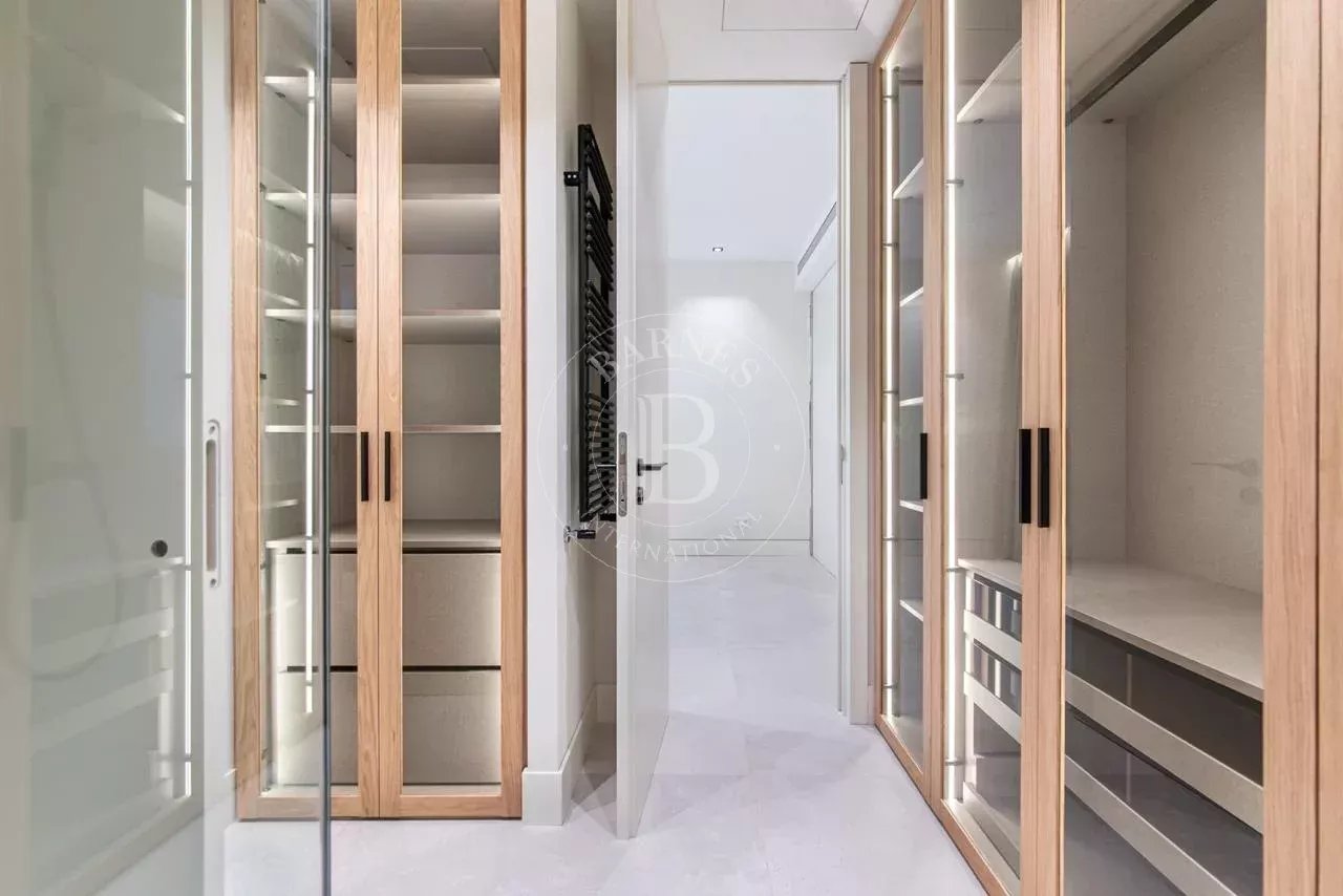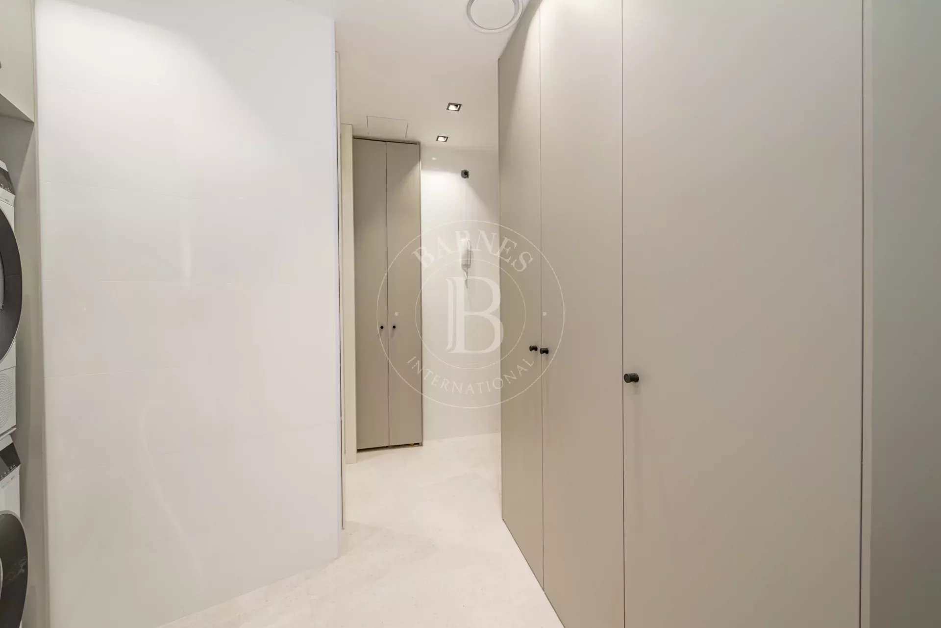 La zona de descanso se compone de cuatro dormitorios dobles en suite, cada uno con vestidor independiente y baño completo revestido en Porcelanosa. La vivienda incluye además un dormitorio de servicio con baño propio y una lavandería independiente totalmente equipada.