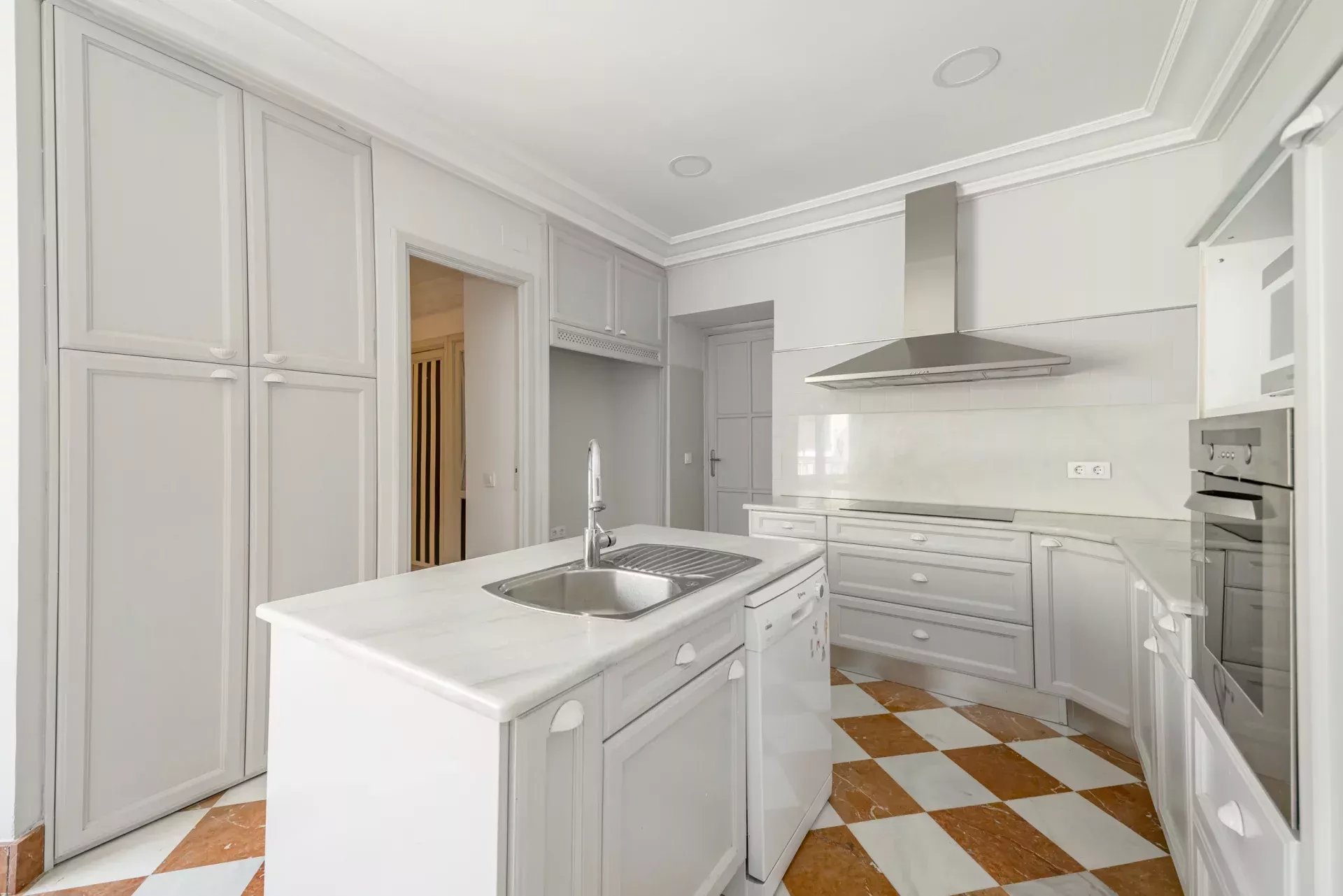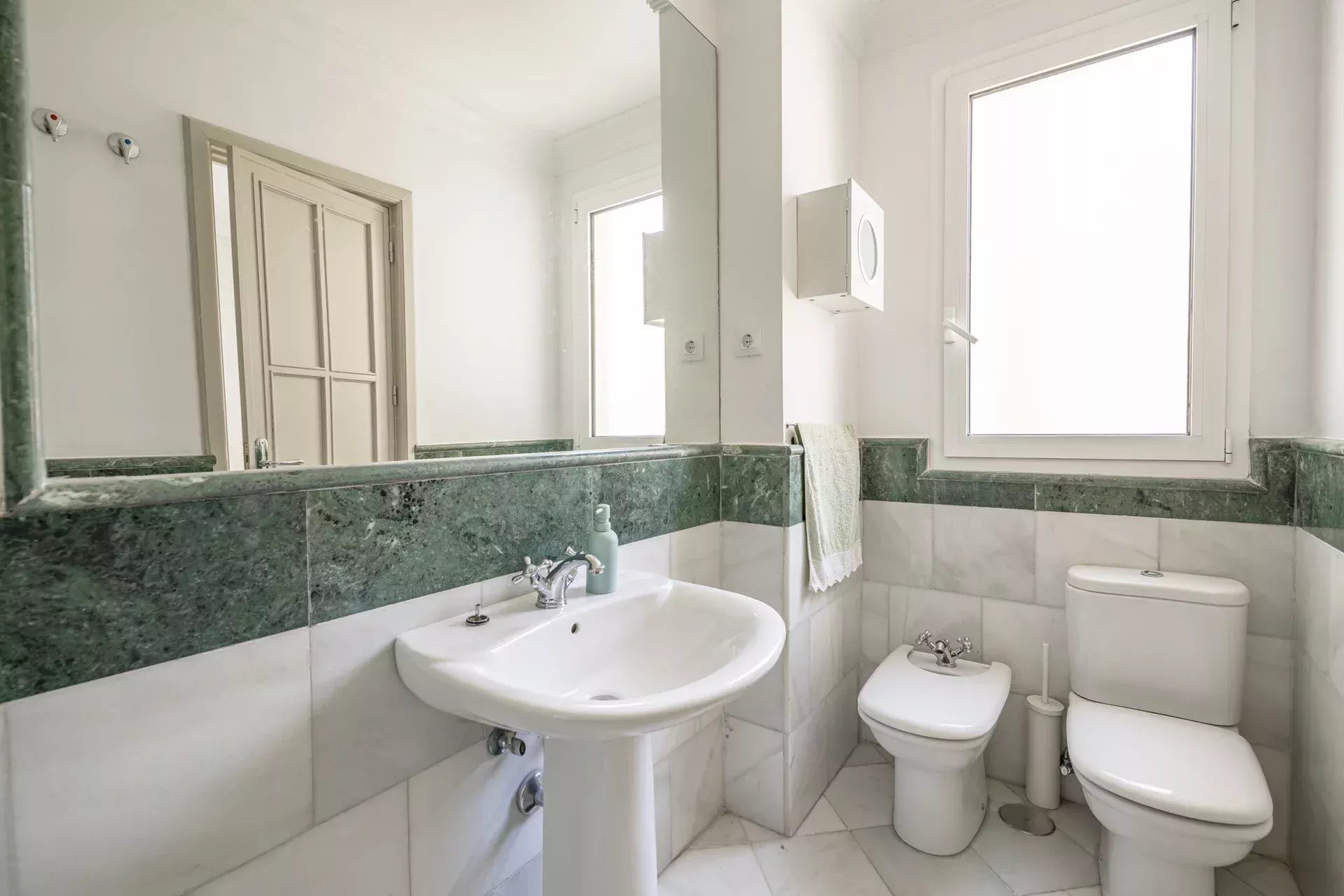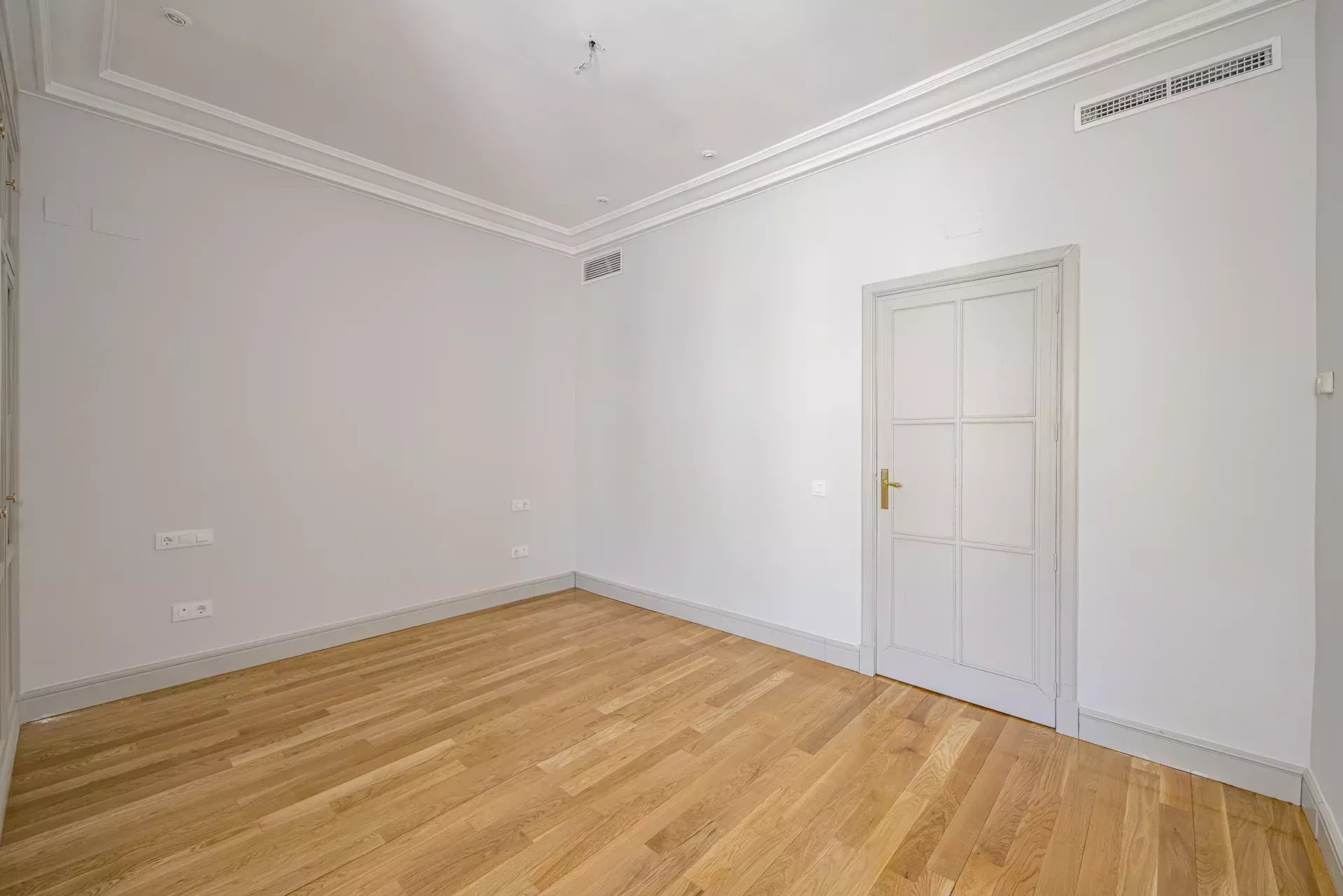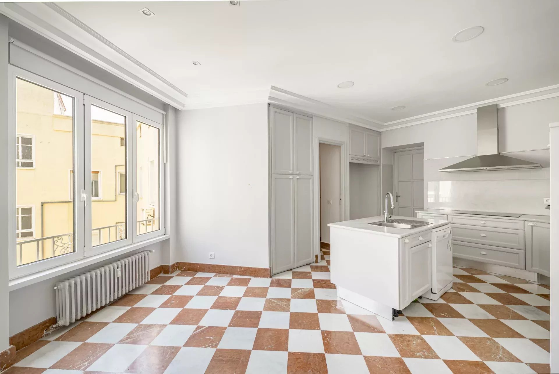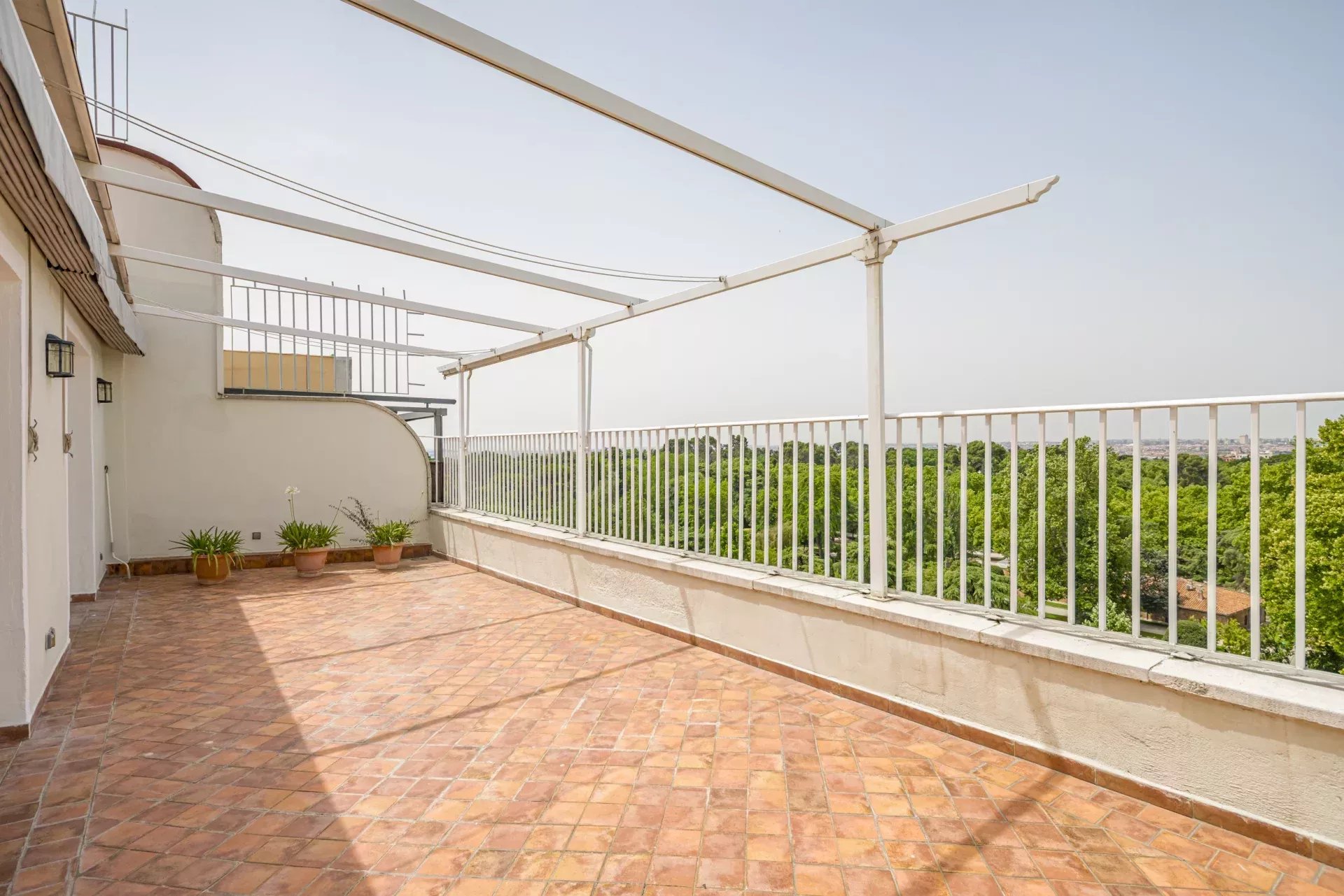 El ático conserva elementos clásicos como suelos de parquet, techos altos con molduras, chimenea de mármol y amplios espacios de almacenamiento. Dispone de aire acondicionado y calefacción central de gas natural, garantizando el confort durante todo el año.
