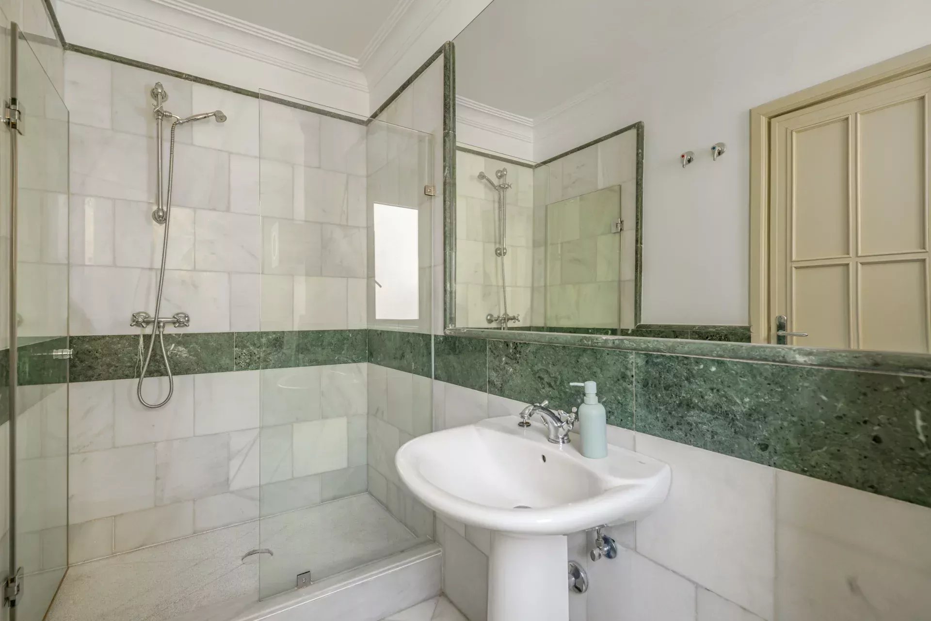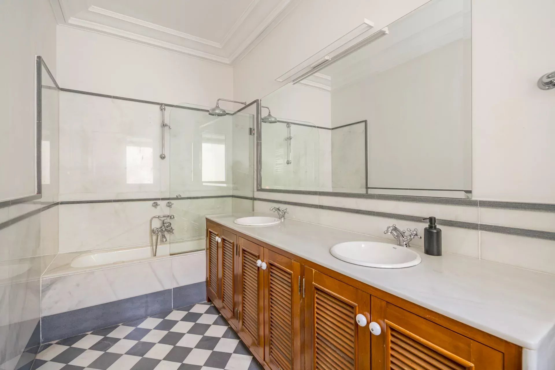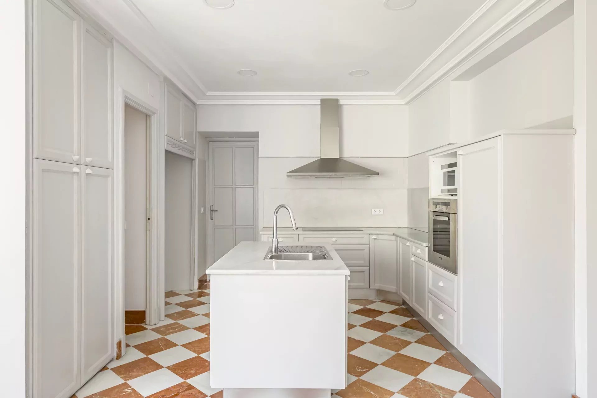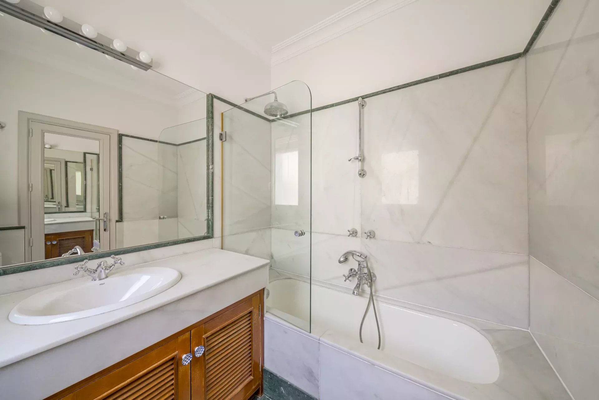 El ático conserva elementos clásicos como suelos de parquet, techos altos con molduras, chimenea de mármol y amplios espacios de almacenamiento. Dispone de aire acondicionado y calefacción central de gas natural, garantizando el confort durante todo el año.