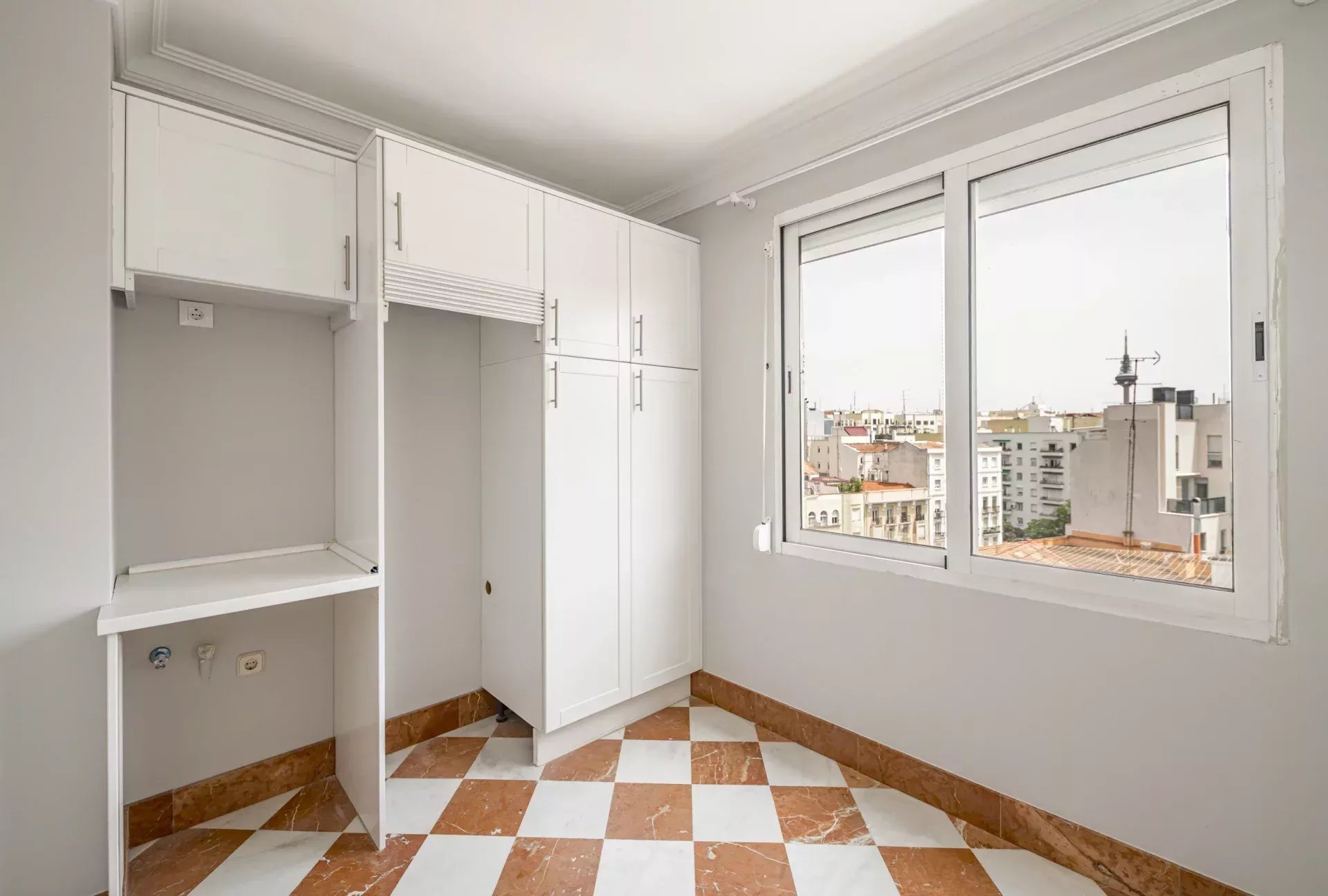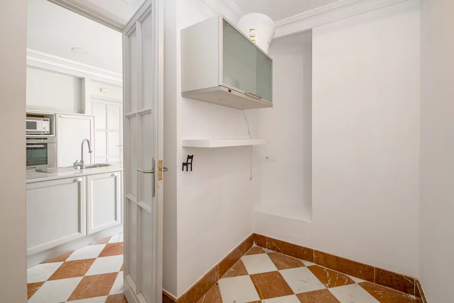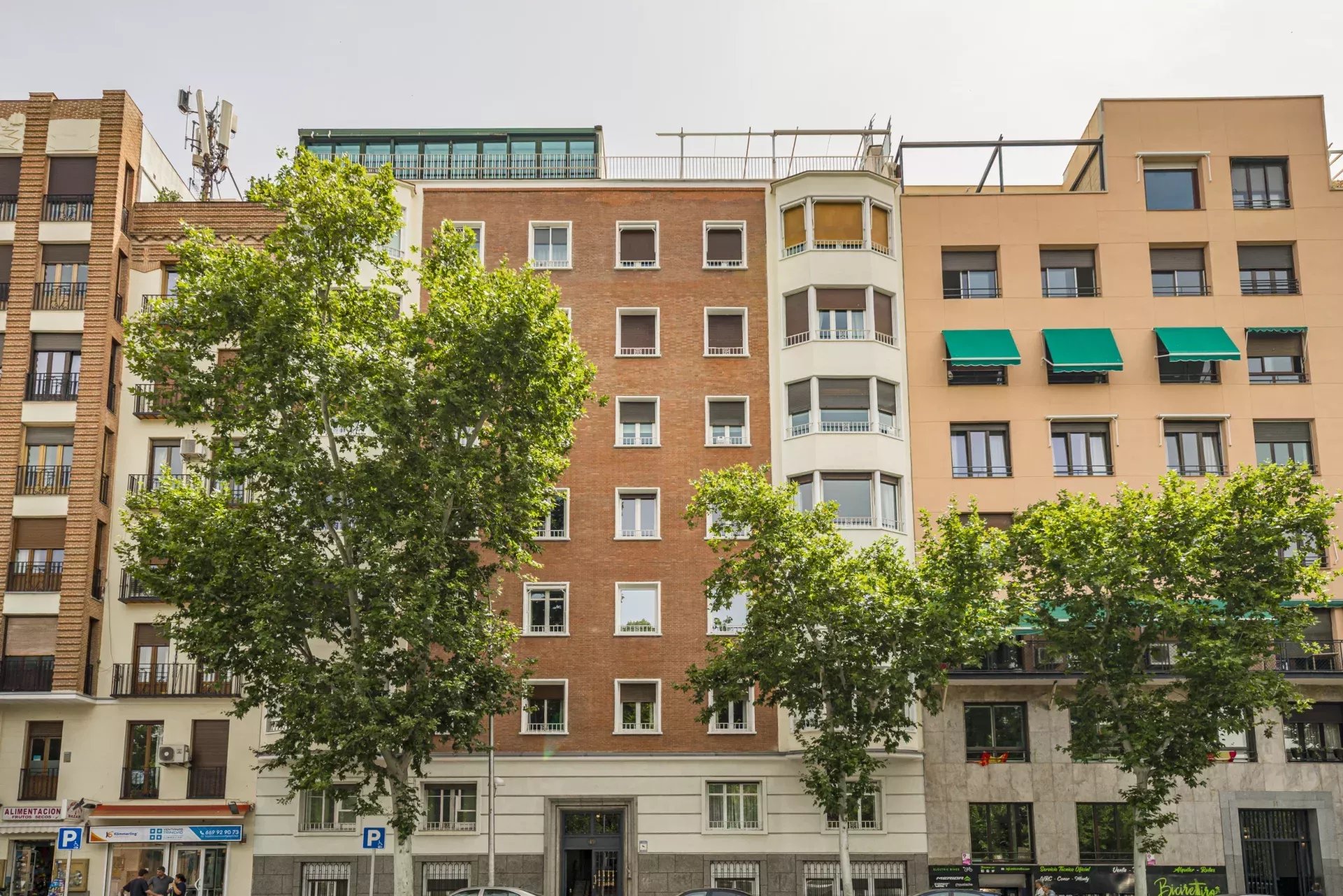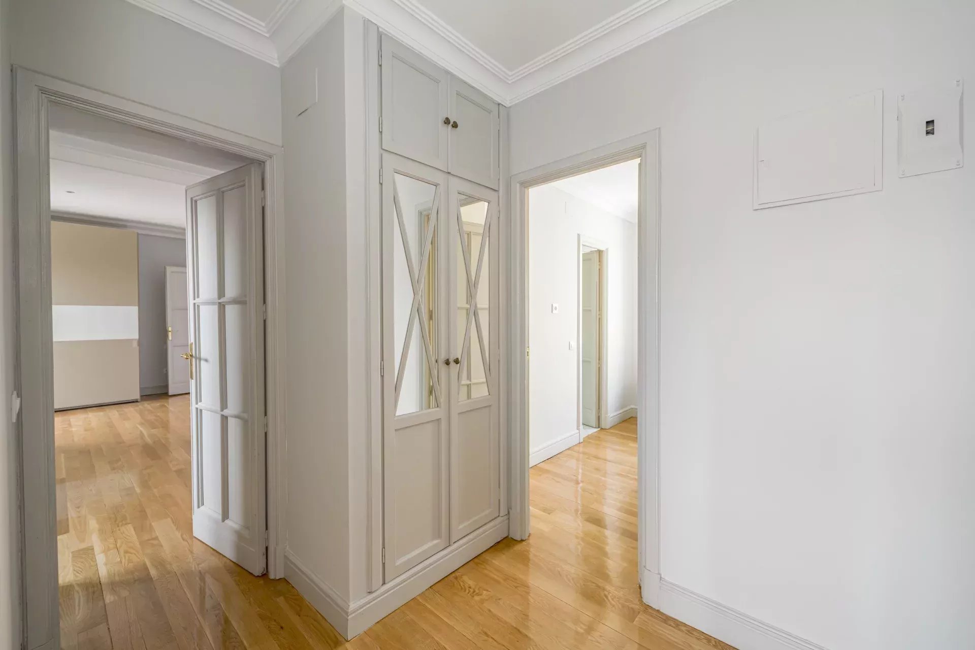 La propiedad se ubica en un edificio señorial de principios del siglo XX, con portal representativo, portero físico, ascensor de estilo parisino, patio comunitario ajardinado, cámaras de videovigilancia y puerta de servicio con acceso a montacargas.