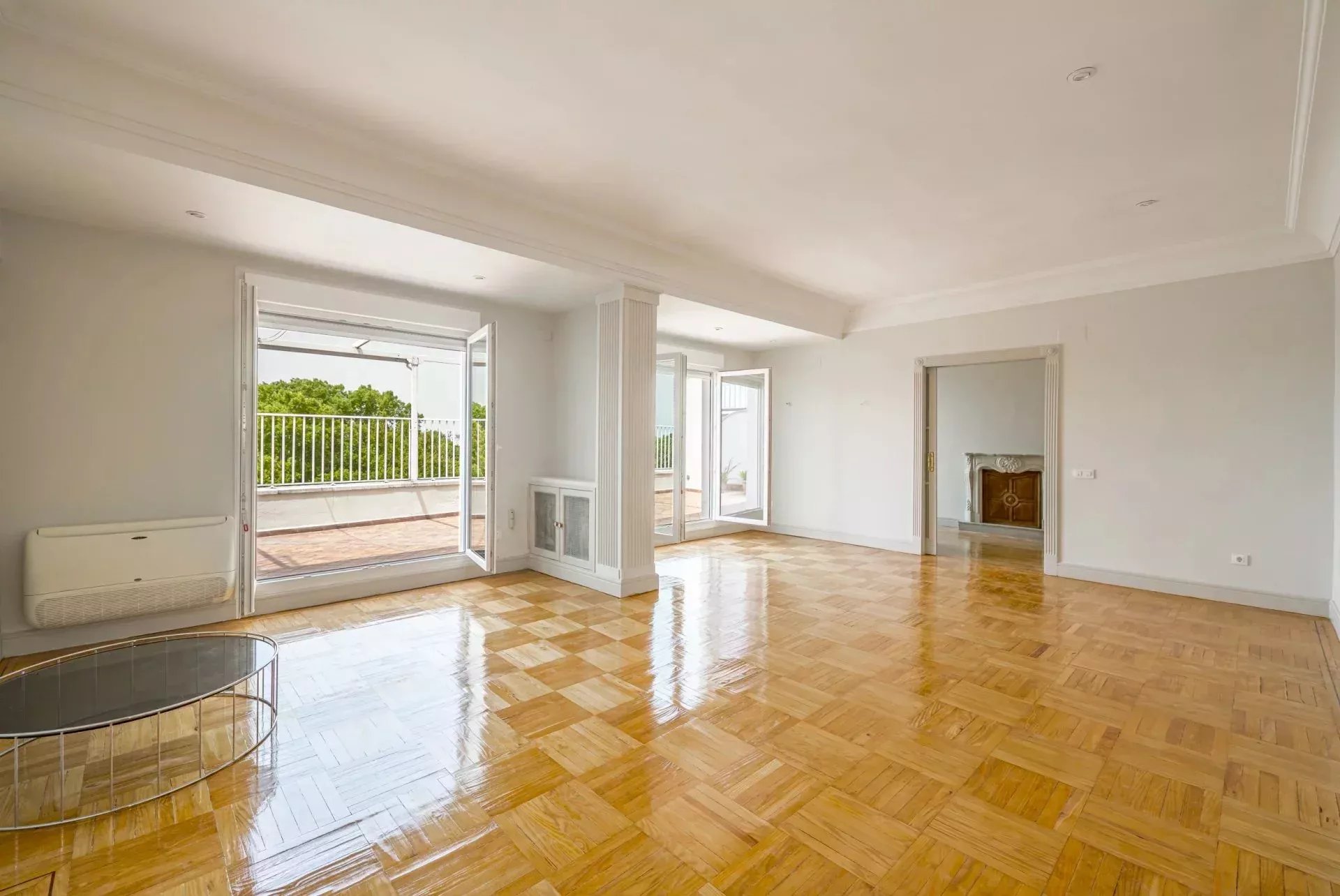 BARNES Madrid presenta en exclusiva este ático reformado, exterior y de gran tamaño, con dos terrazas y vistas privilegiadas al Parque del Retiro. La vivienda dispone de un gran salón-comedor que se abre a una terraza frontal de más de 40 m², con orientación oeste y vistas directas al parque, ideal para disfrutar del exterior y de los atardeceres de Madrid.