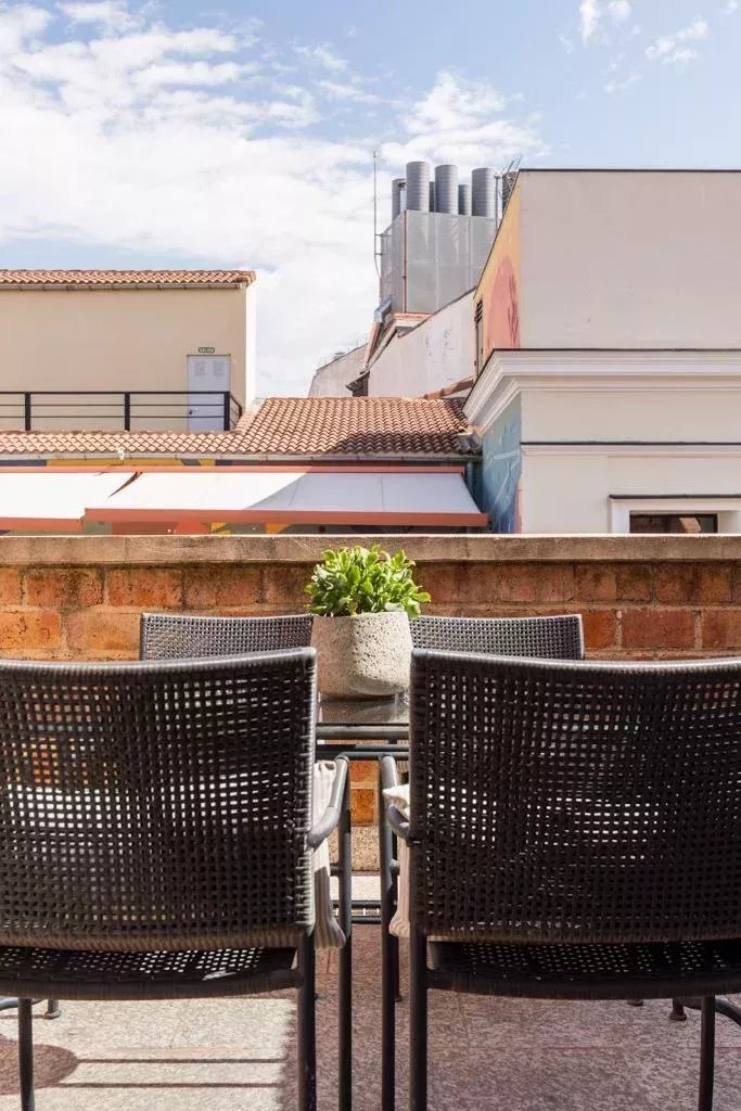 Ubicado en un edificio histórico junto a la Plaza Matute, a pocos pasos del Paseo del Prado, este ático cuenta con una distribución funcional y una decoración impecable. En la primera planta tenemos lazona social , con cocina integrada completamente equipada con todos los electrodomésticos necesarios, comedor y tv. Directamente desde ahi tienes acceso a su maravillosa terraza, perfecta para relajarse o recibir visitas, el espacio más especial de la vivienda, un lugar privado y lleno de encanto para disfrutar del clima madrileño, ideal para un café al amanecer o una copa al atardecer. Este rincón exterior aporta un ambiente íntimo, lleno de luz y tranquilidad.