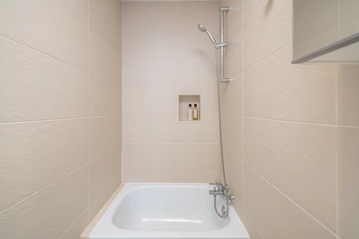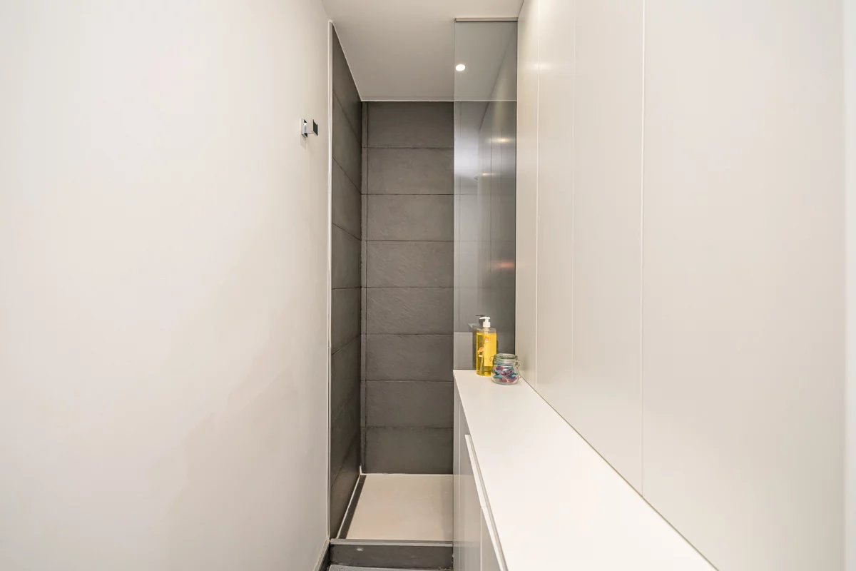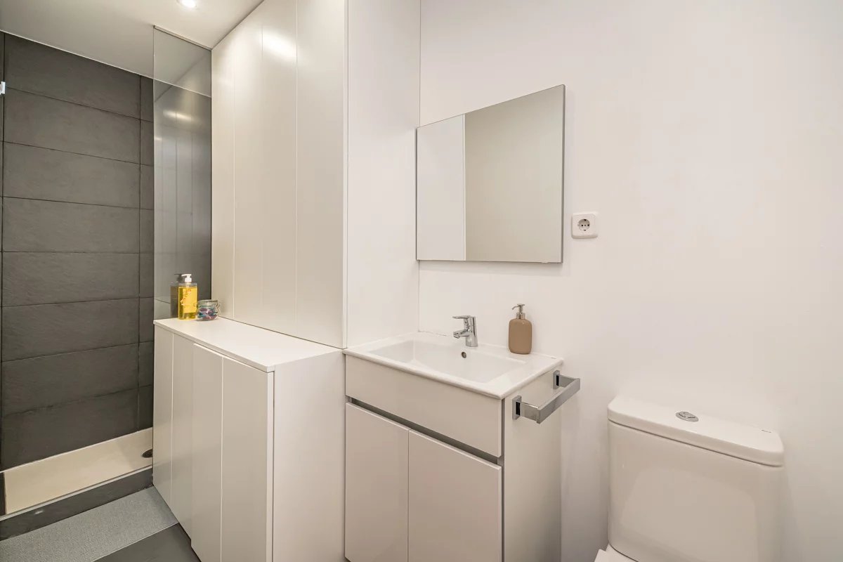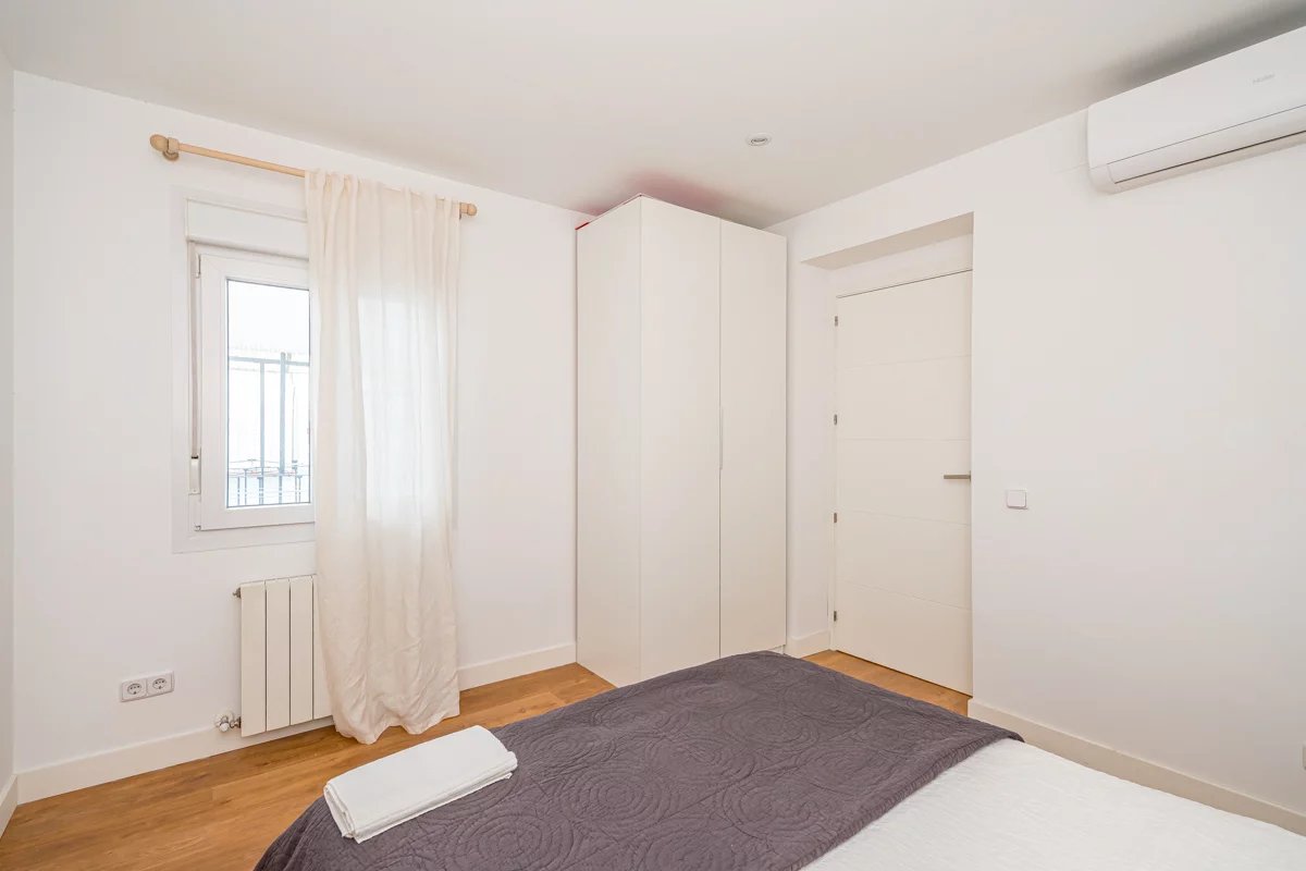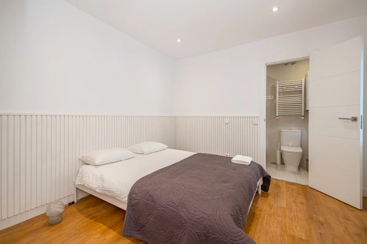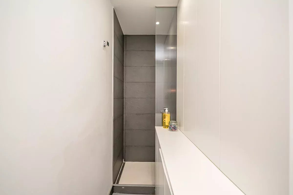 La cocina, equipada con electrodomésticos Bosch de alta gama, se integra en un único ambiente con el comedor y el salón, generando un espacio abierto, luminoso y acogedor. Desde el salón se accede a dos balcones exteriores, mientras que el dormitorio principal dispone de un tercer balcón, permitiendo disfrutar de abundante luz natural y vistas a la vibrante vida urbana del barrio.