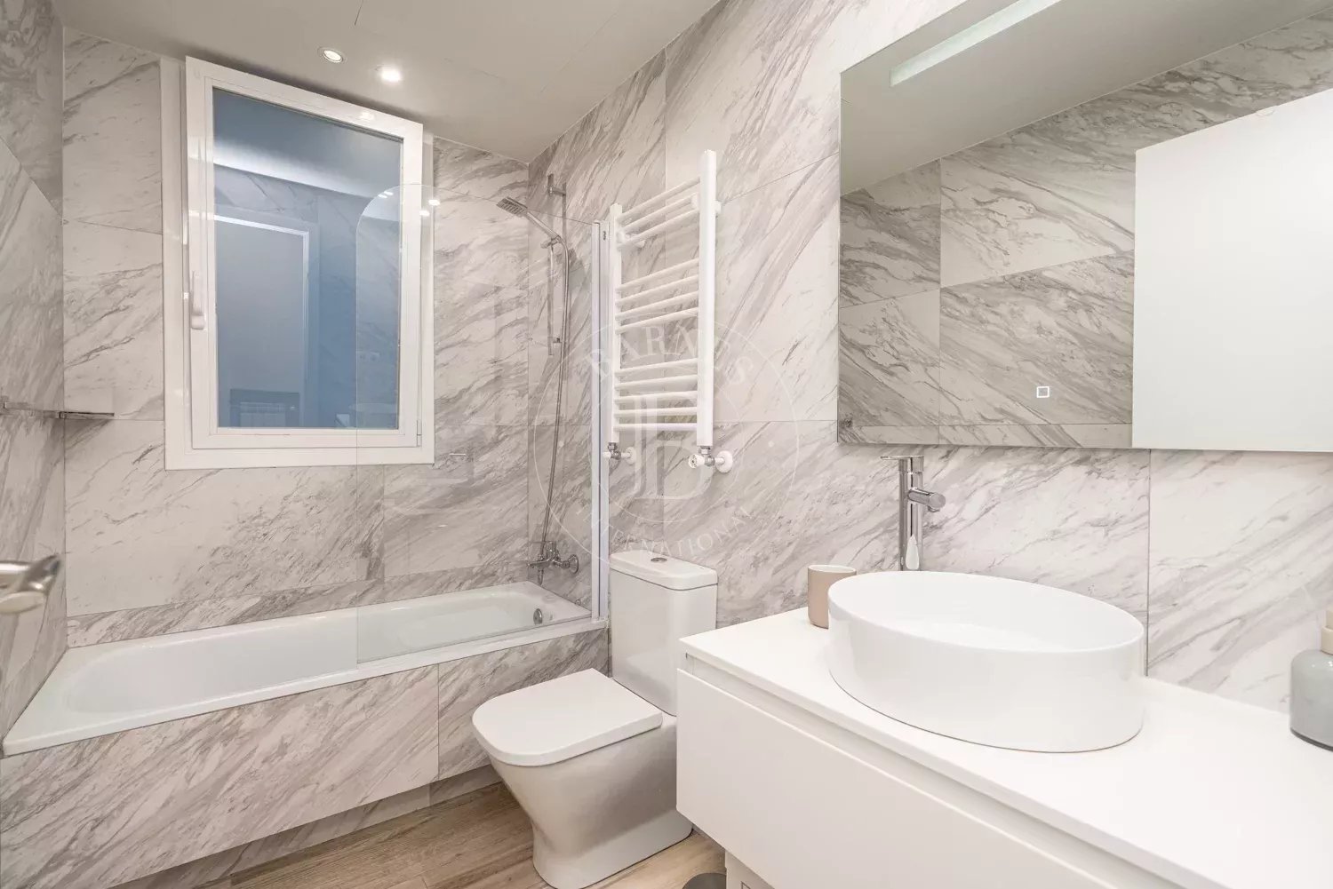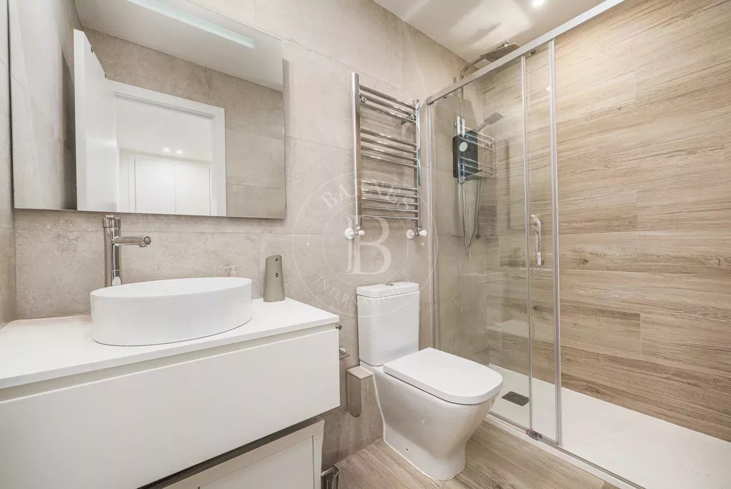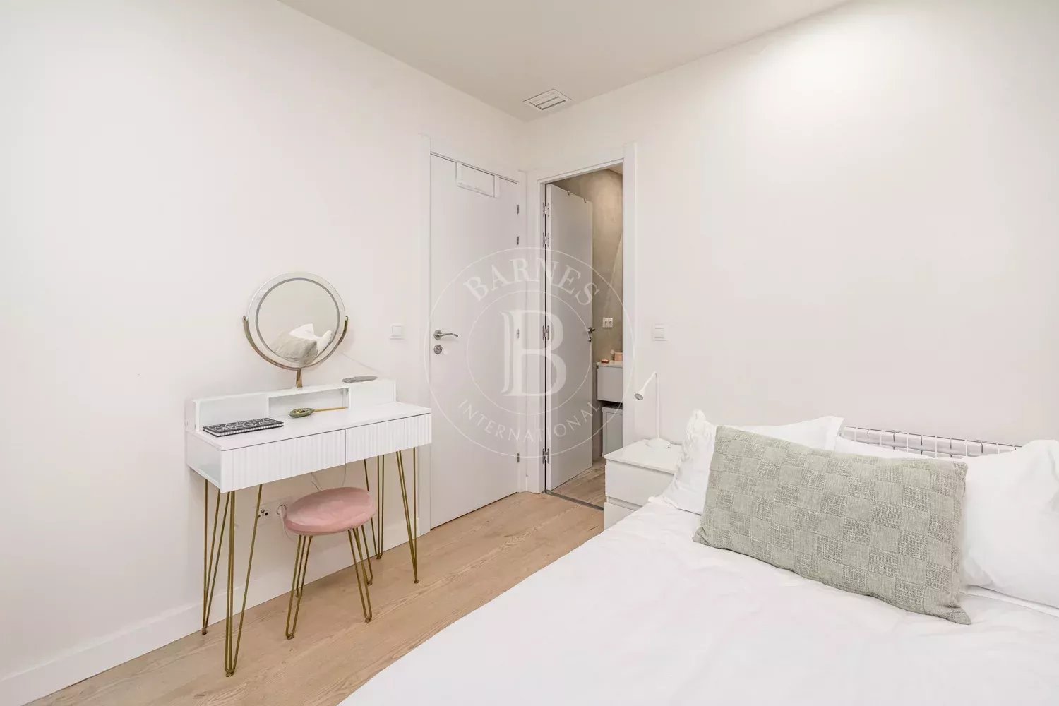 El piso ha sido diseñado cuidadosamente para ofrecer comodidad y funcionalidad. Cuenta con tres dormitorios, dos de ellos con baño en suite y armarios empotrados, mientras que el tercer dormitorio dispone de un baño completo independiente con bañera. La entrada se abre a un acogedor hall que conduce primero al dormitorio de invitados y al baño. Más adelante en el pasillo se encuentran el dormitorio principal y otra habitación en suite, ambas con amplios espacios de almacenamiento.