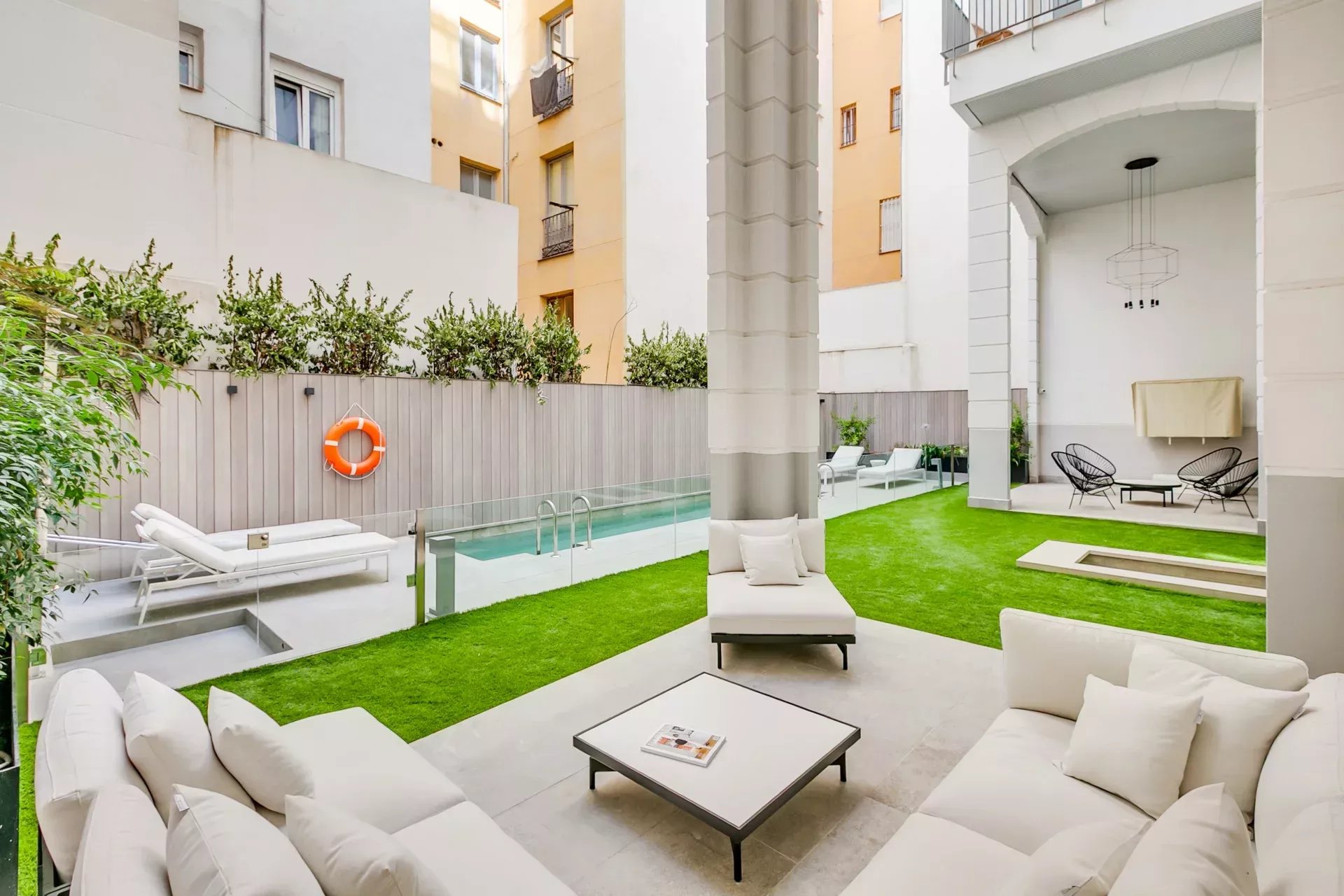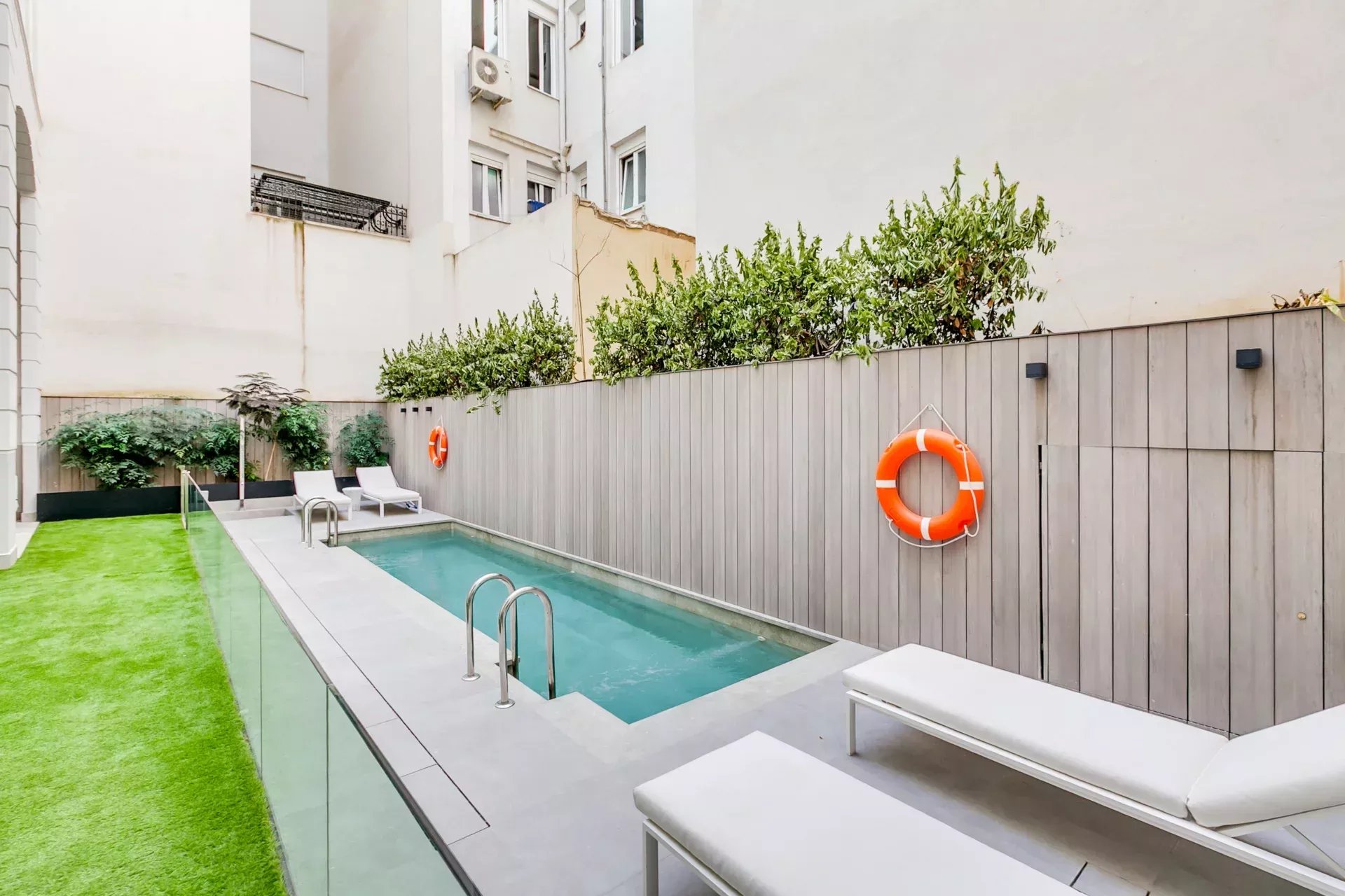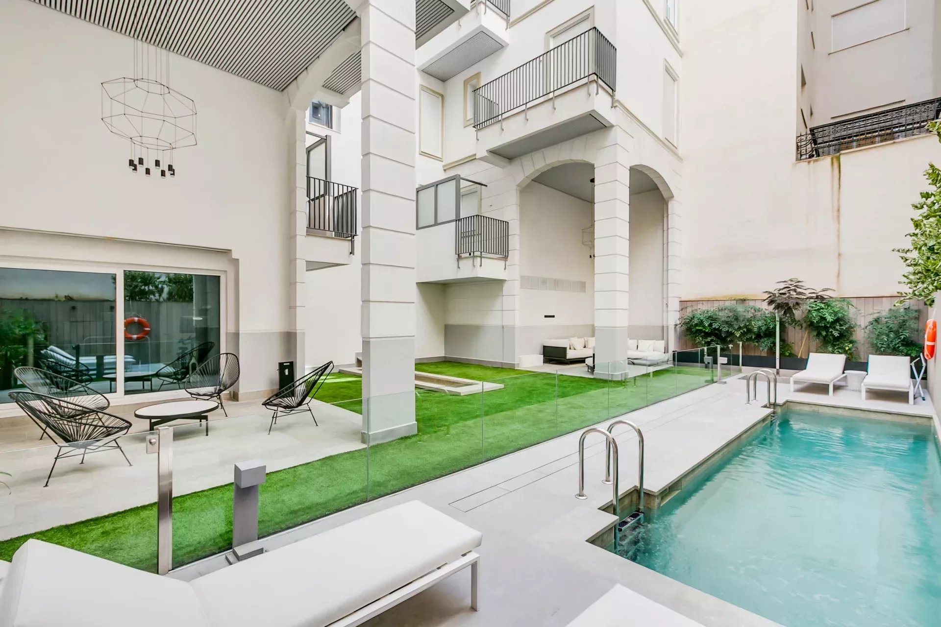 El edificio ofrece zonas comunes excepcionales: piscina exterior con jardín, gimnasio de última generación equipado con máquinas Technogym, sauna, trastero y dos ascensores con acceso directo. Todo ello dentro de un portal representativo que combina tradición arquitectónica con tecnología y confort de última generación.