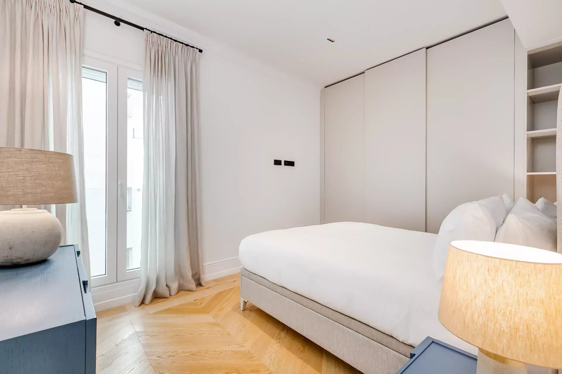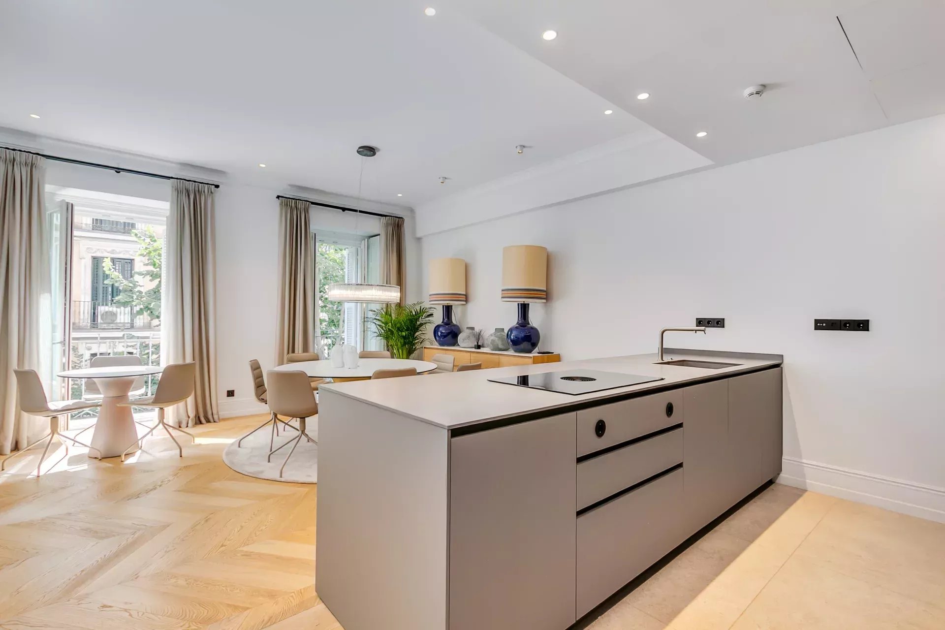 BARNES Madrid presenta esta exclusiva propiedad exterior de 130 m² a estrenar, situada en una de las ubicaciones más deseadas del Barrio de Recoletos, en el prestigioso distrito de Salamanca. Se encuentra en la segunda planta de un elegante edificio de nueva construcción con fachada clásica protegida, declarado Patrimonio Histórico, que alberga solo once residencias de lujo.