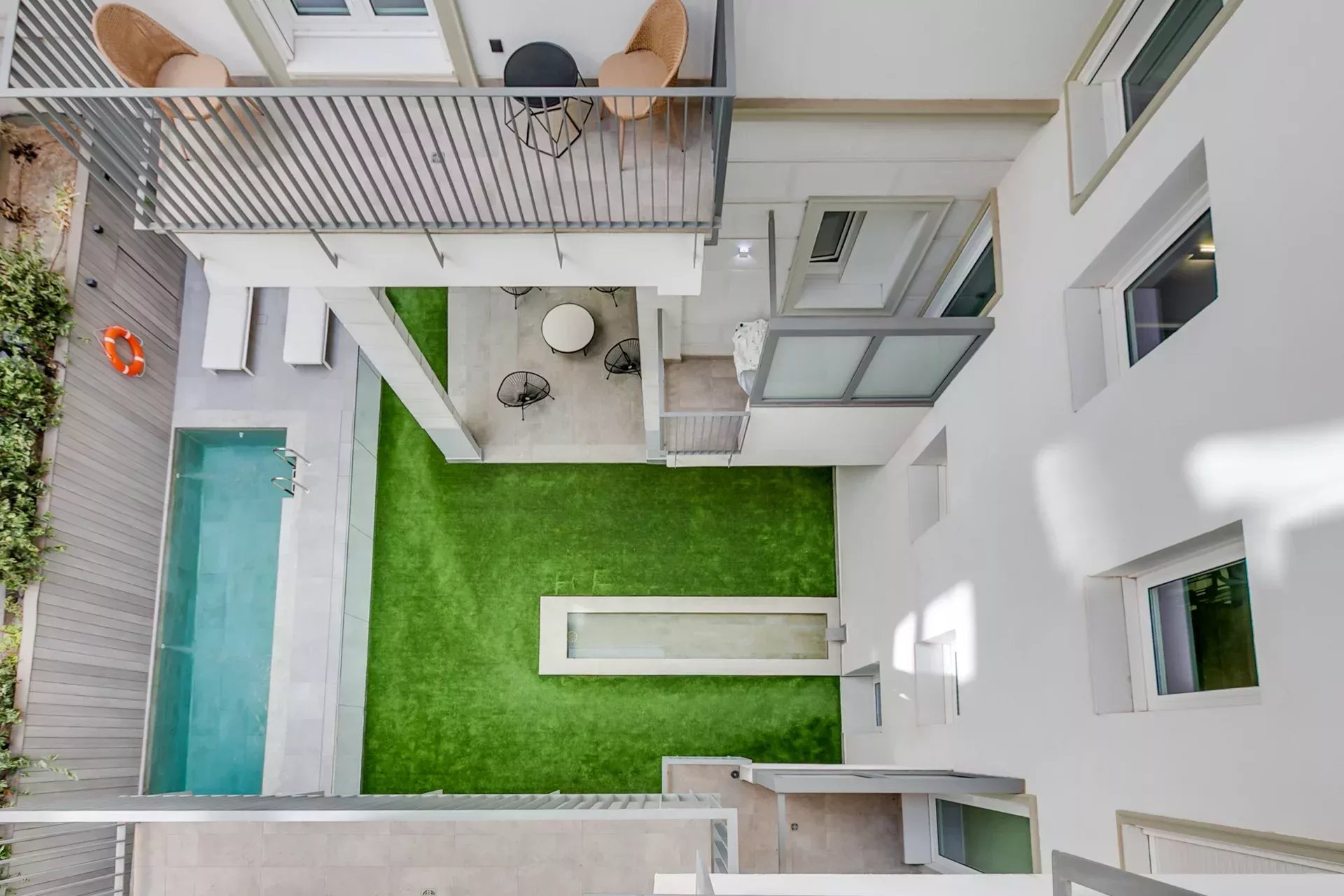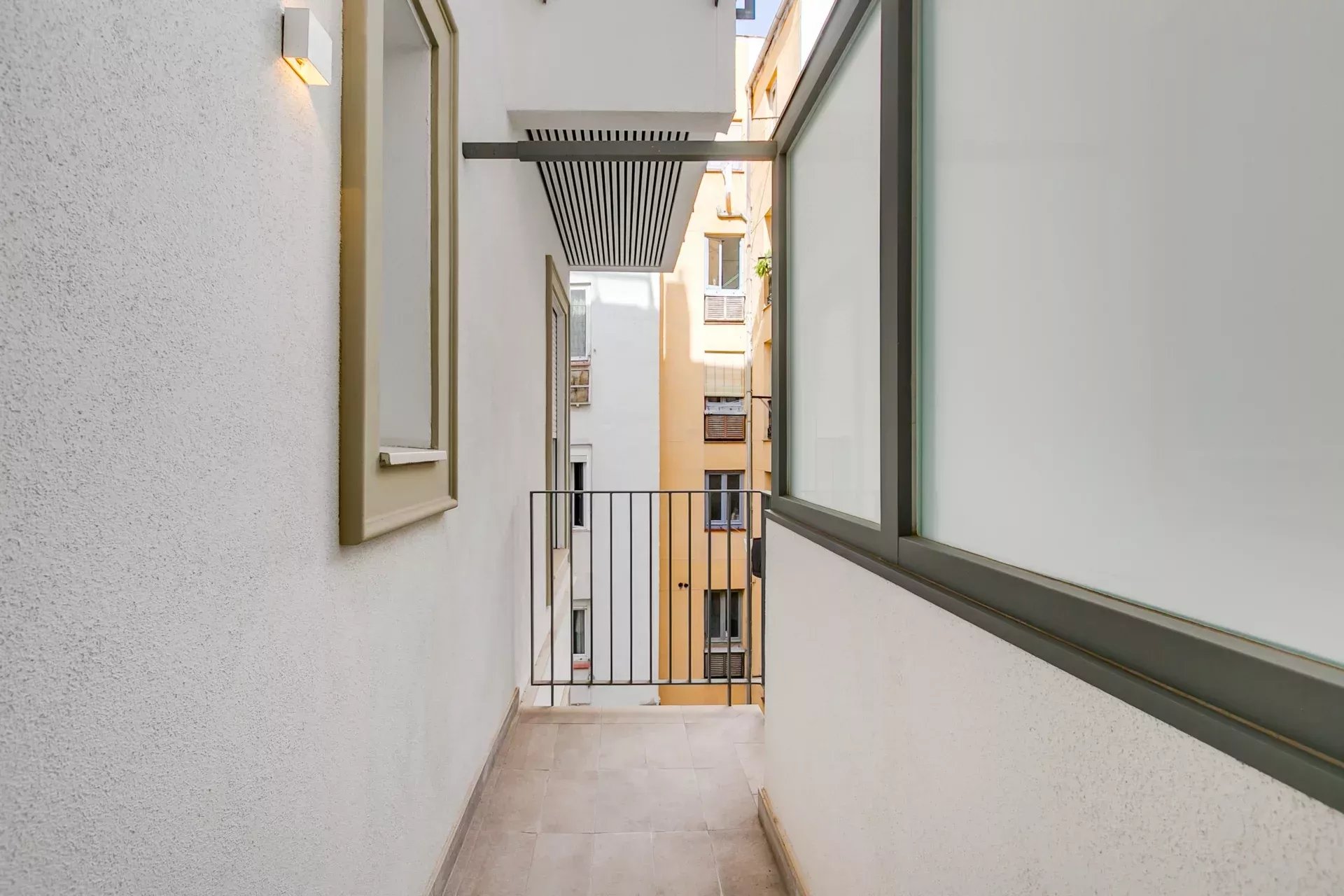 La vivienda, completamente amueblada y decorada con diseño contemporáneo, cuenta con tres balcones exteriores a la calle y uno con vistas al jardín interior, lo que proporciona excelente luminosidad y ventilación cruzada.