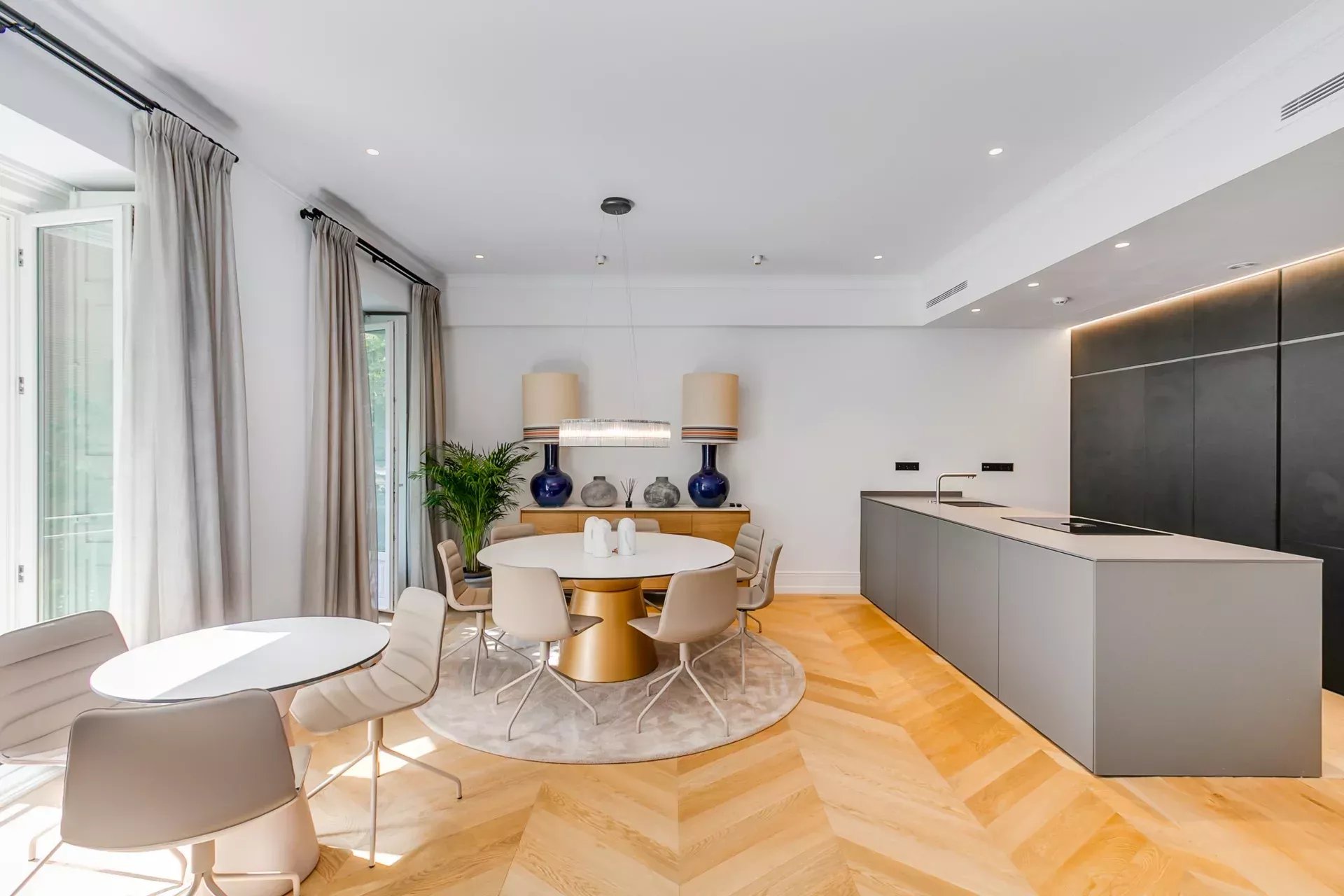 Ubicada a pocos metros del Parque del Retiro, esta propiedad ofrece un entorno tranquilo, arbolado y altamente exclusivo, con acceso inmediato a boutiques de lujo, restaurantes gourmet y todos los servicios del barrio de Salamanca.
