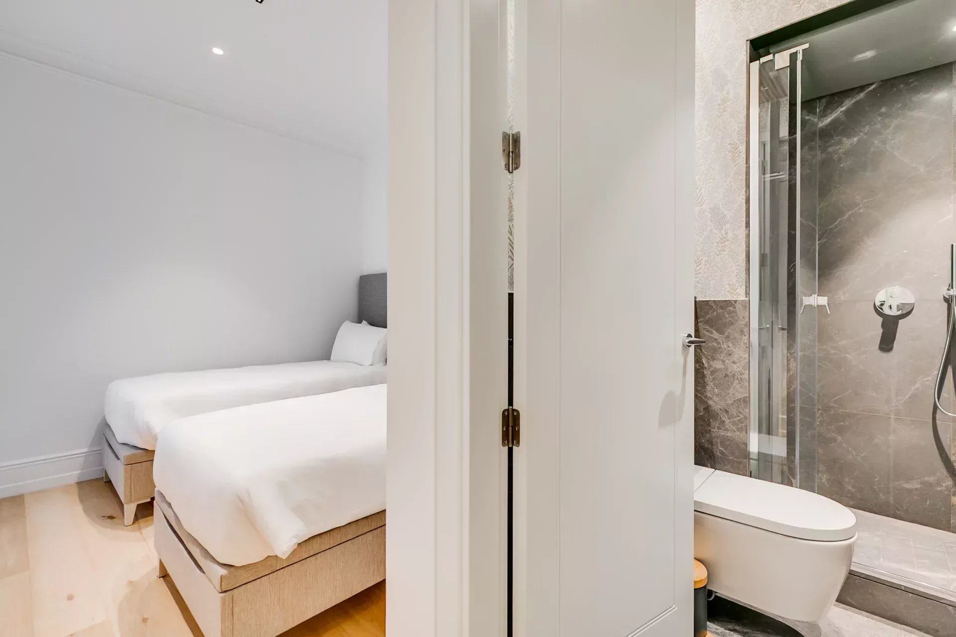 La zona de noche ofrece dos dormitorios en suite: el principal con vestidor y baño completo con doble lavabo y ducha; y el segundo con dos camas individuales, baño propio y balcón.