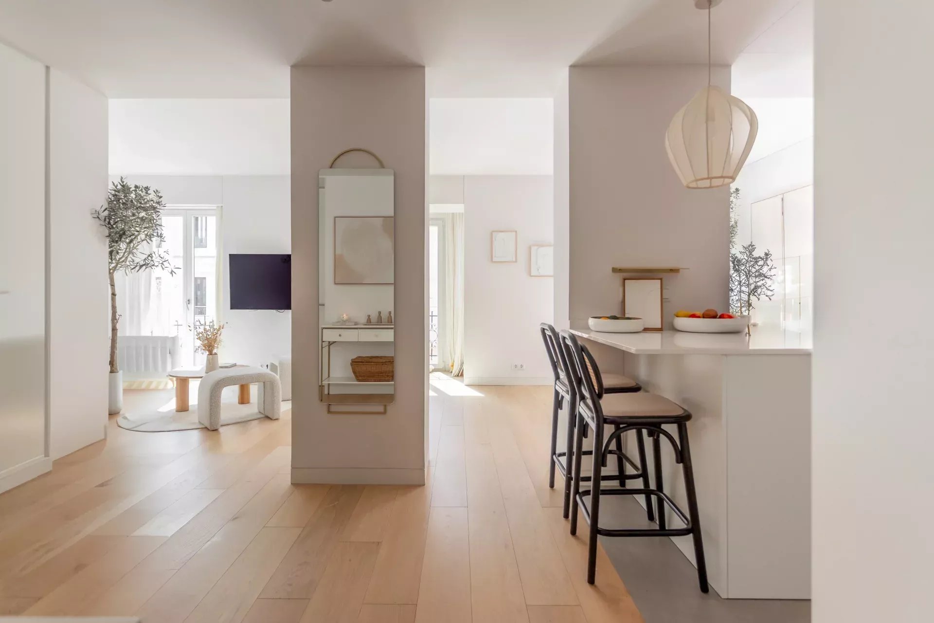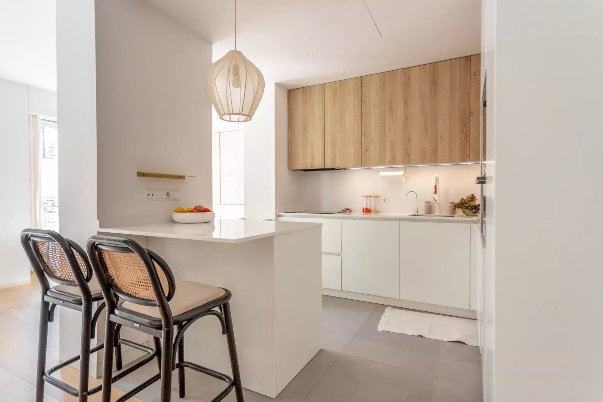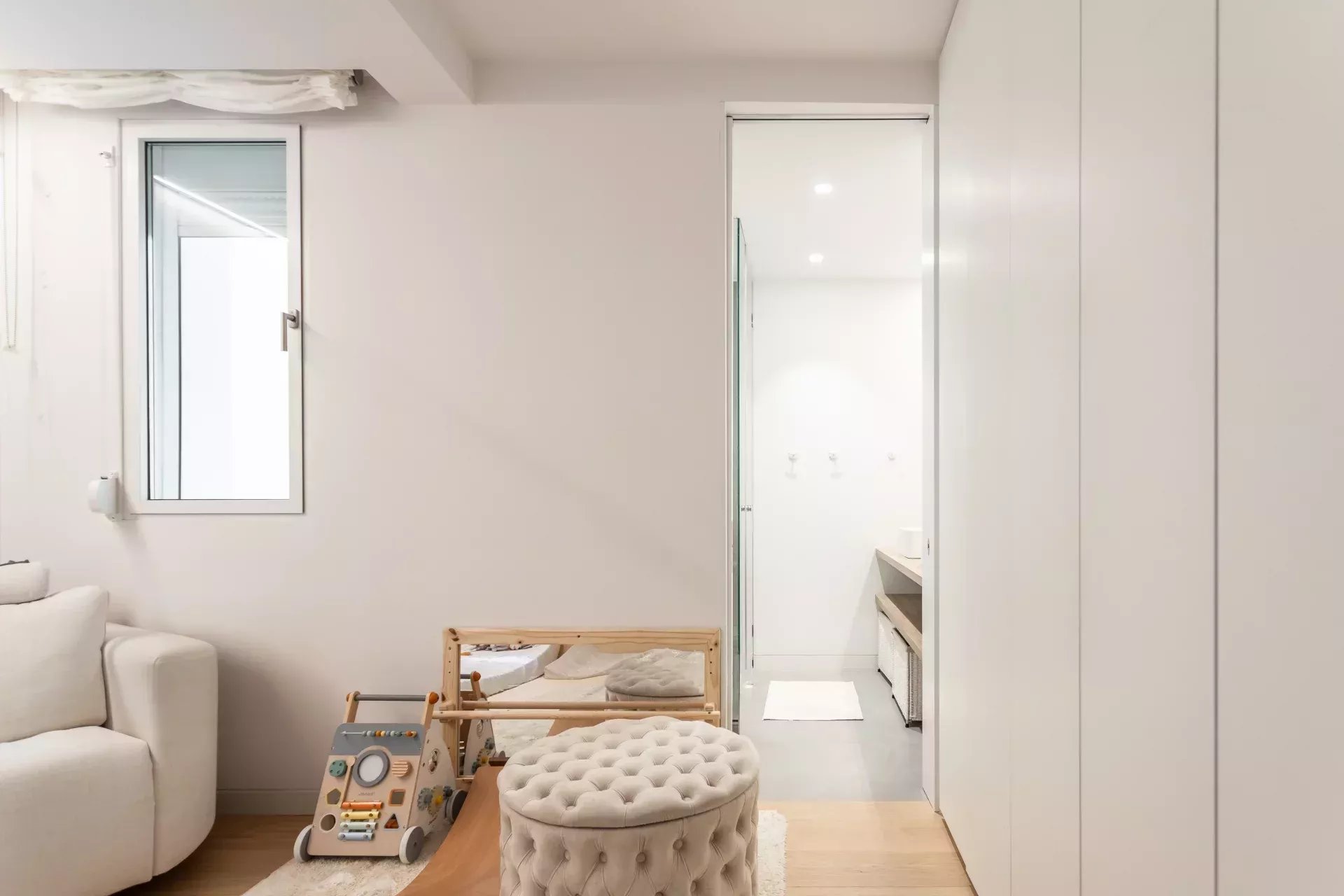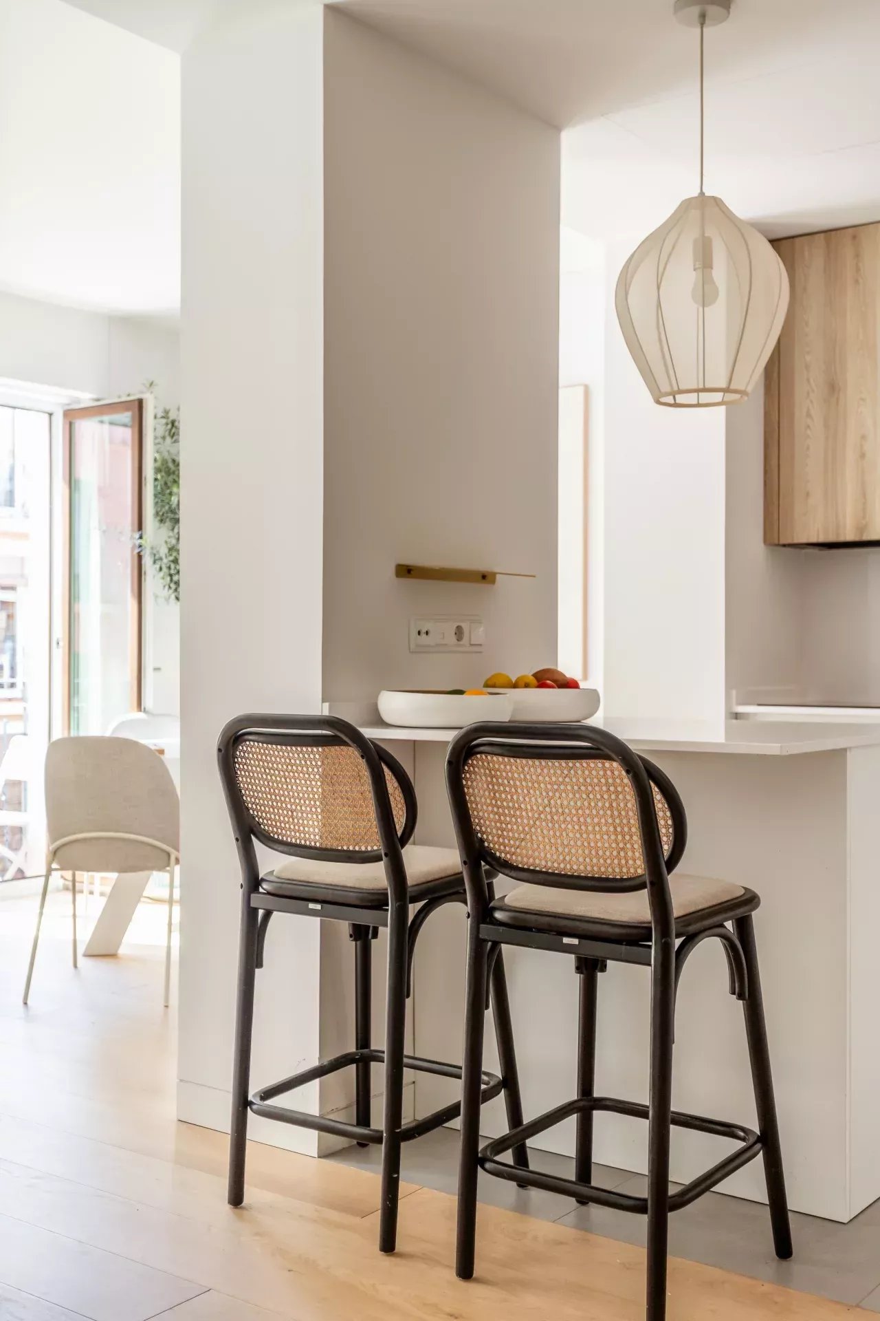 Al acceder, un hall de entrada de diseño da paso a una amplia zona de día compuesta por un luminoso salón-comedor, bañado en luz natural gracias a dos balcones orientados al sur, que aportan calidez y amplitud visual durante todo el año.