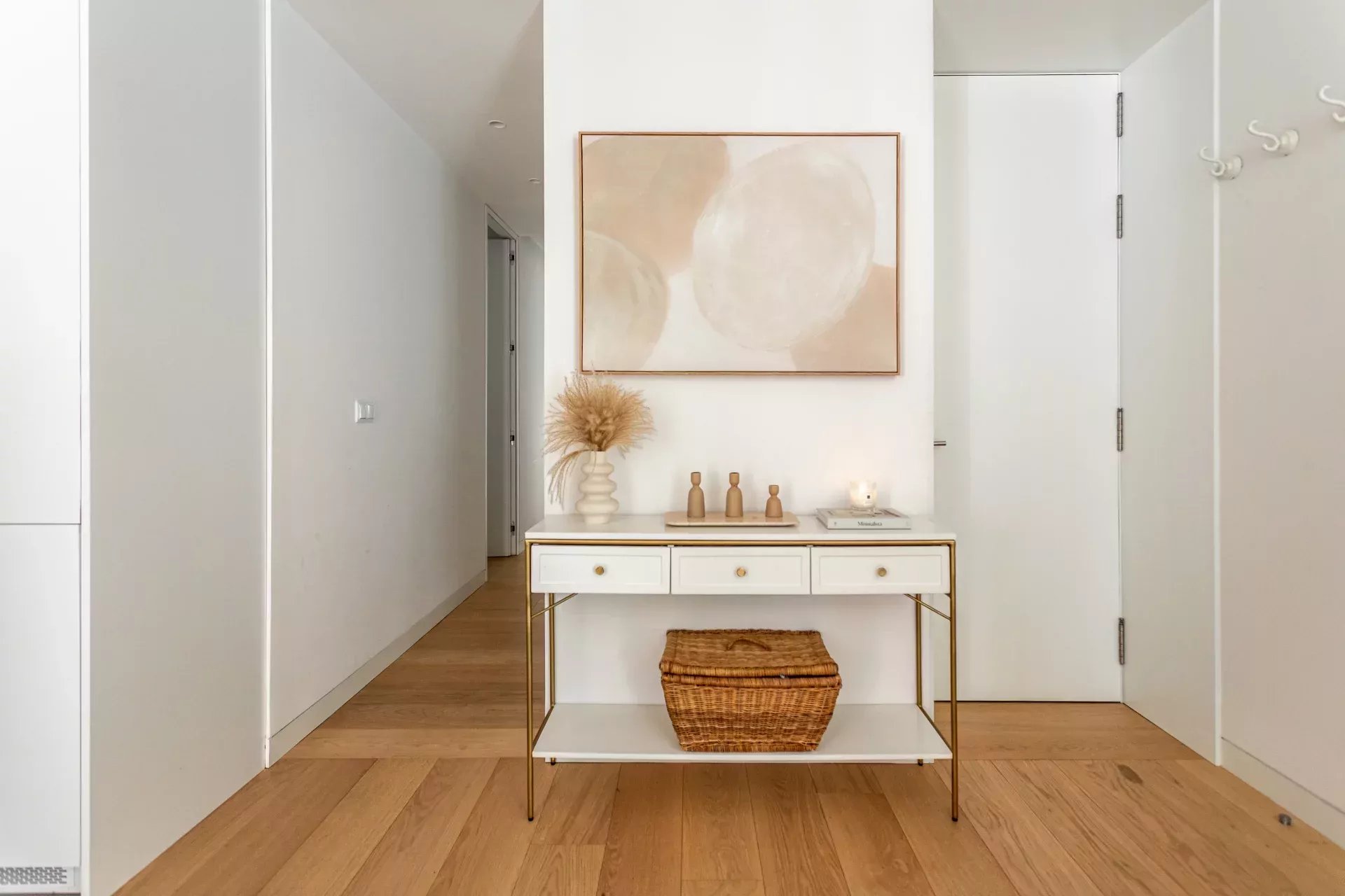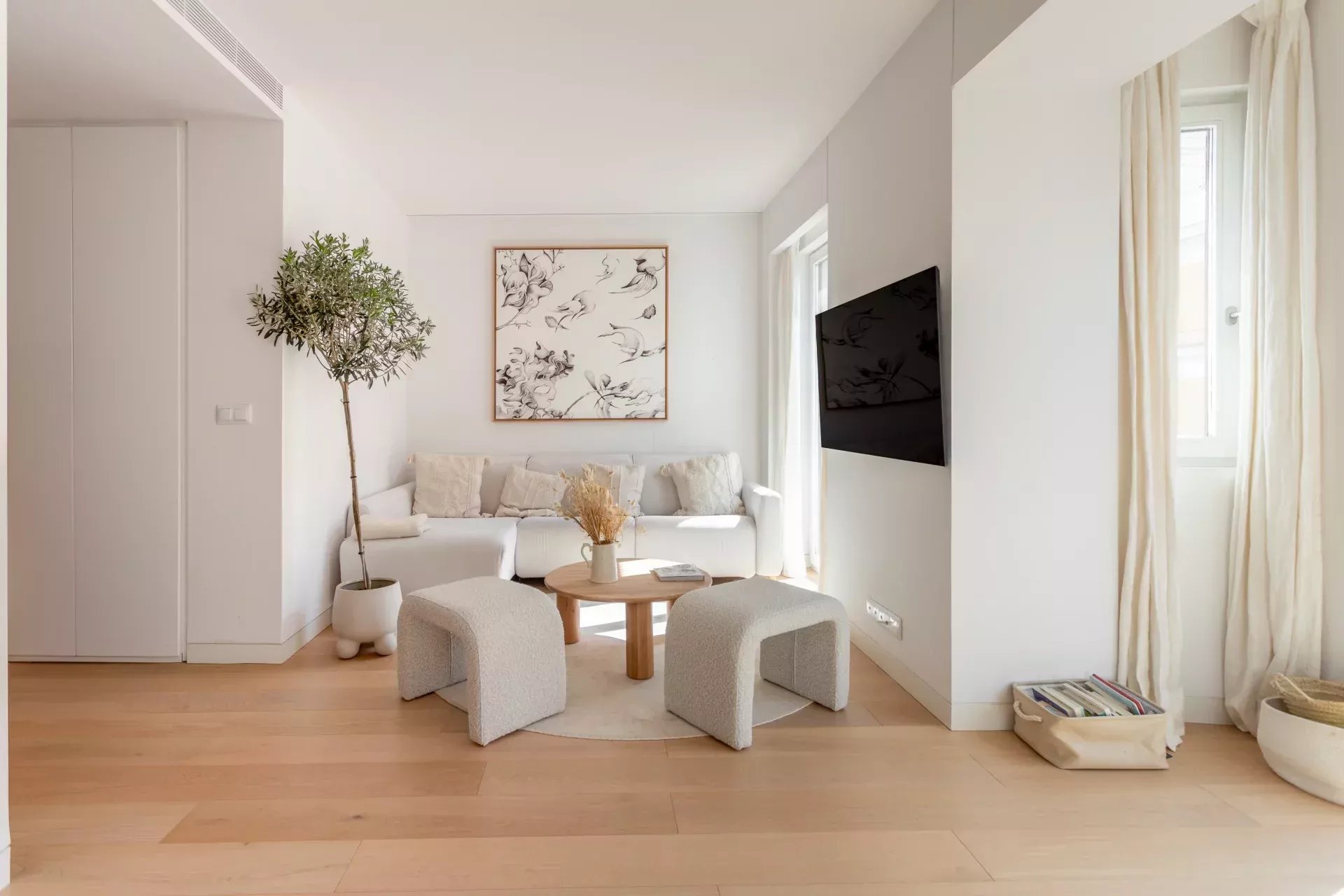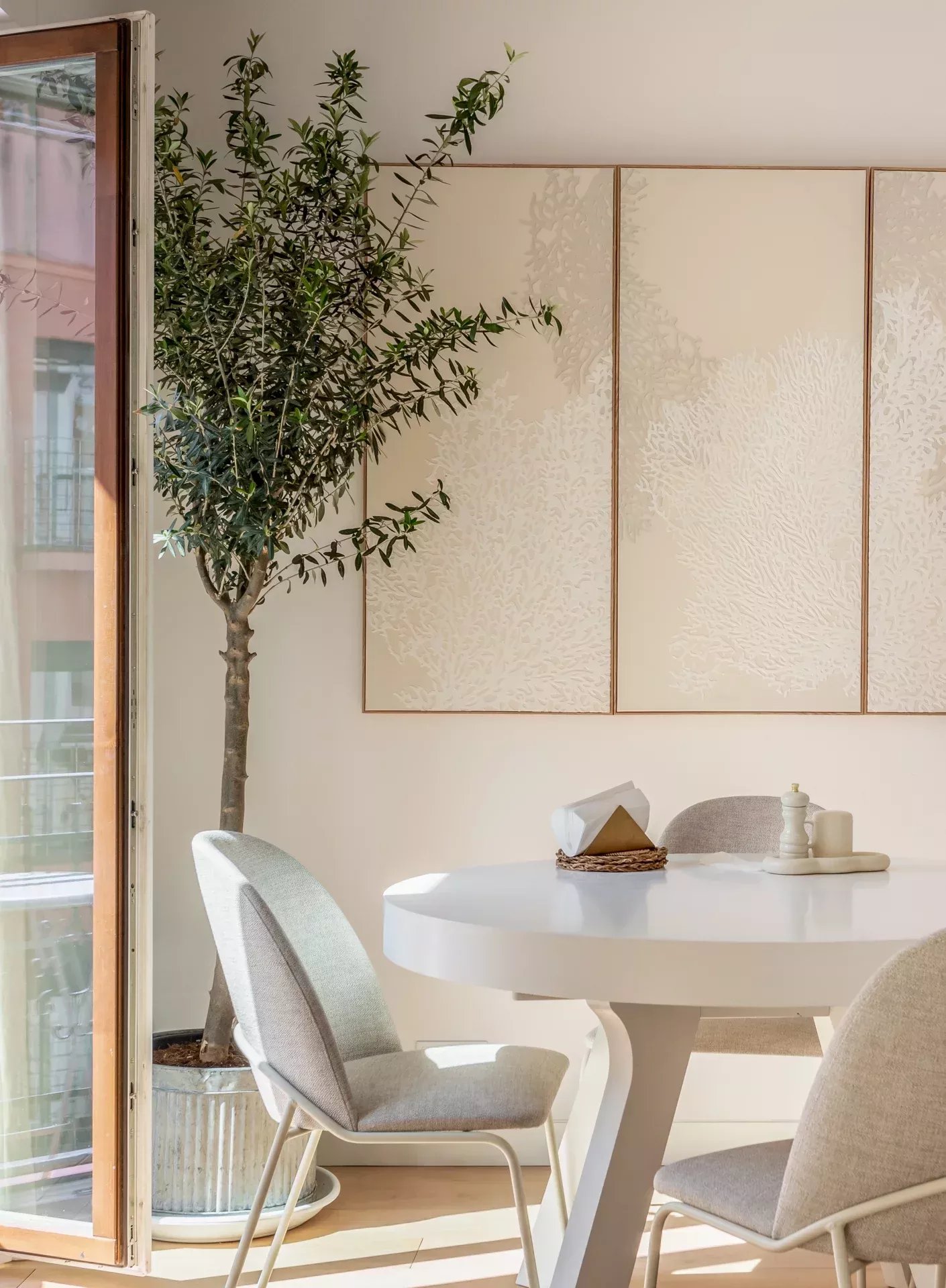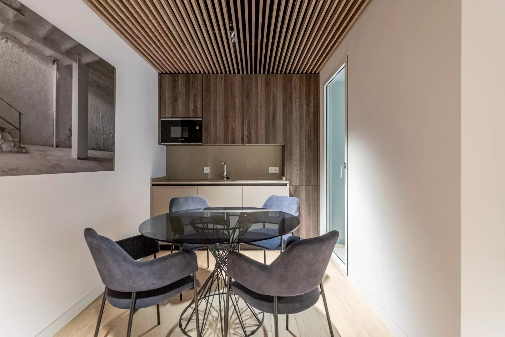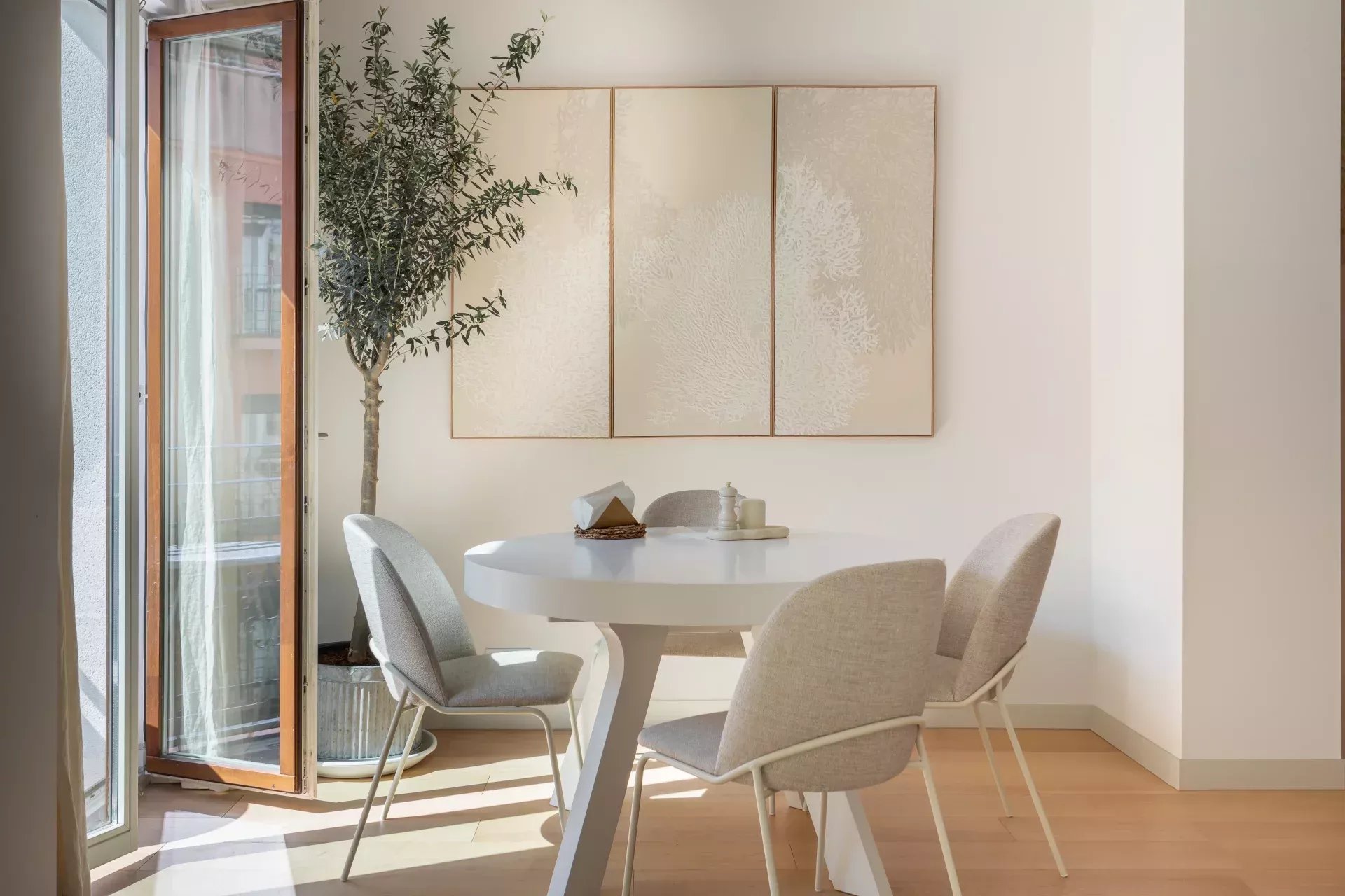 Al acceder, un hall de entrada de diseño da paso a una amplia zona de día compuesta por un luminoso salón-comedor, bañado en luz natural gracias a dos balcones orientados al sur, que aportan calidez y amplitud visual durante todo el año.