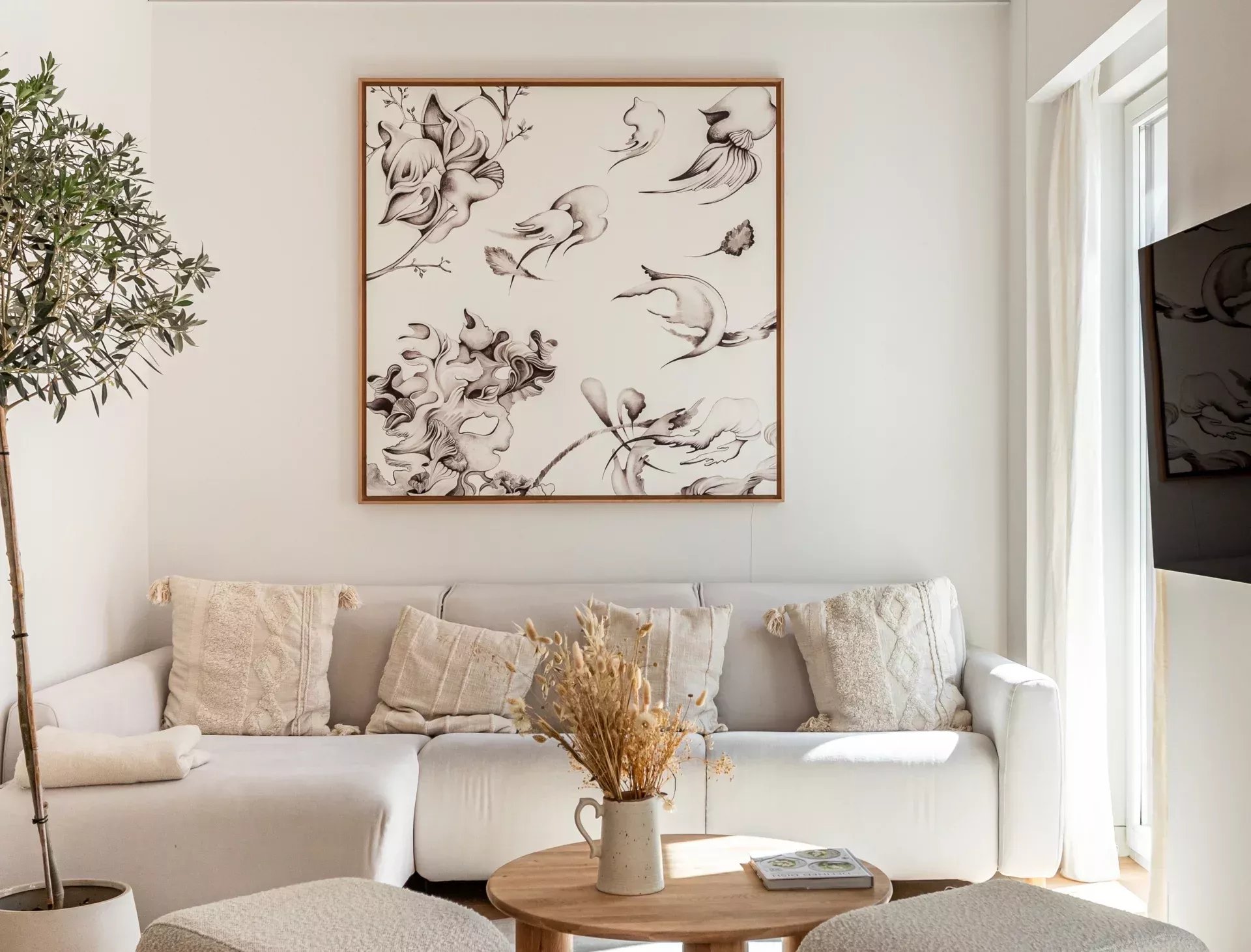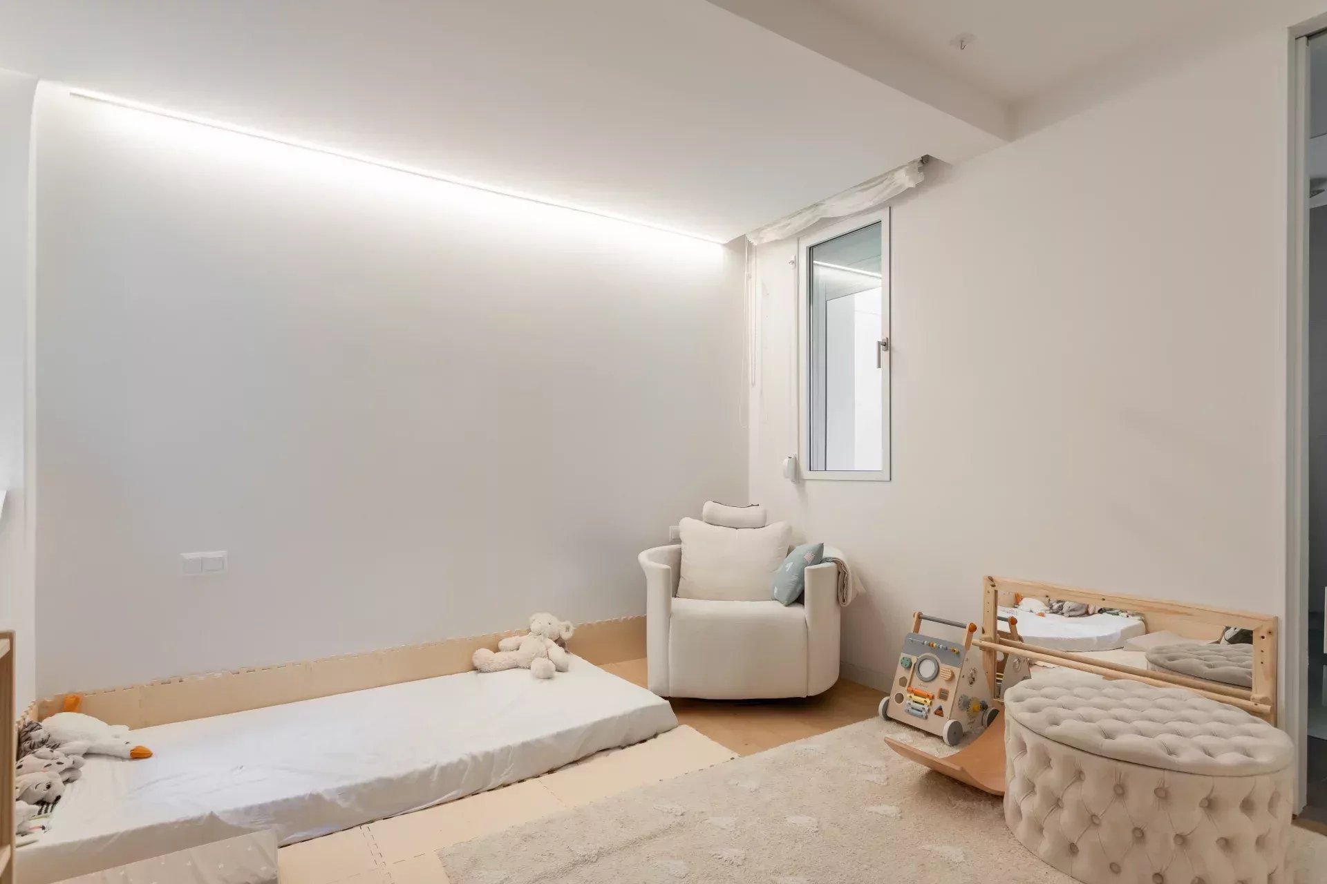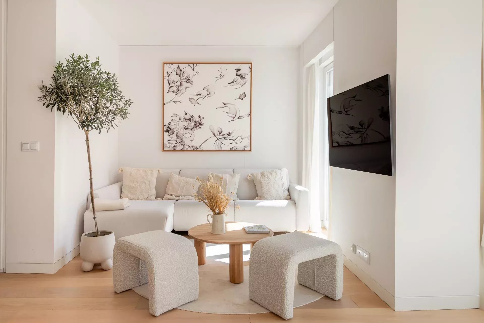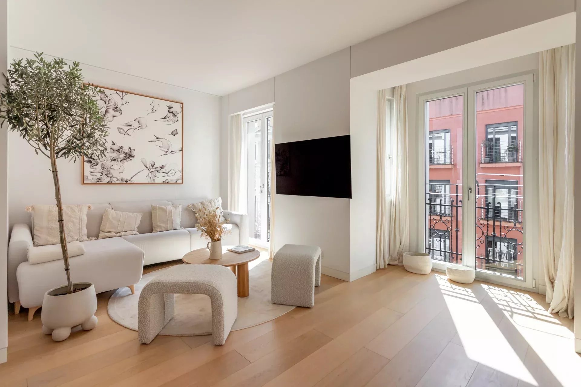 Al acceder, un hall de entrada de diseño da paso a una amplia zona de día compuesta por un luminoso salón-comedor, bañado en luz natural gracias a dos balcones orientados al sur, que aportan calidez y amplitud visual durante todo el año.