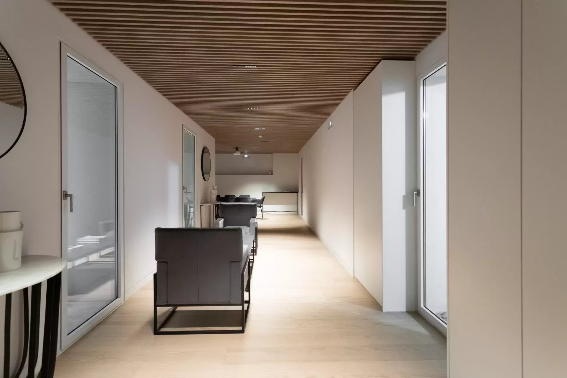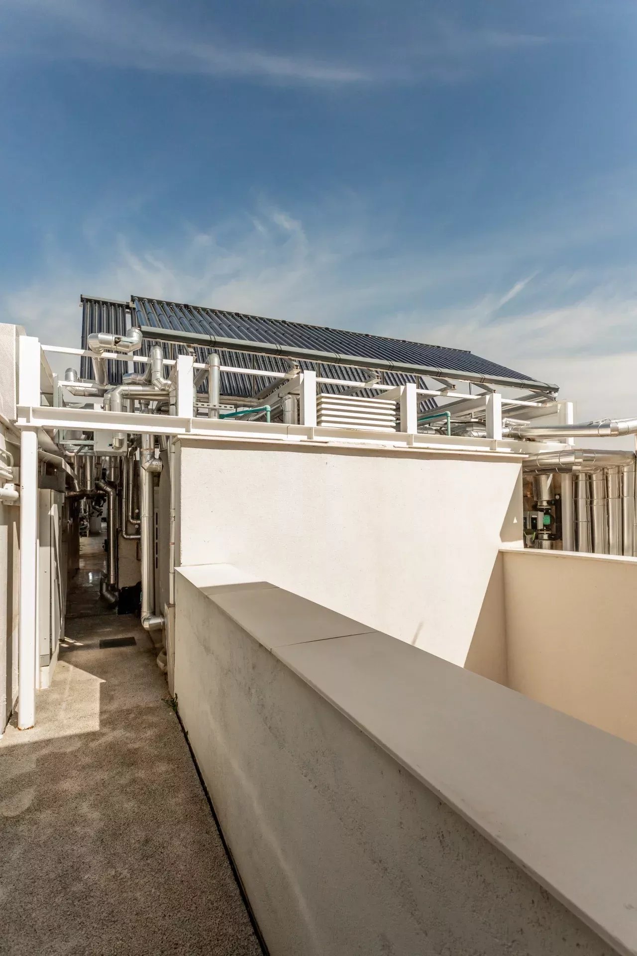 El sistema de aerotermia garantiza el máximo bienestar: suelo radiante en invierno y suelo refrescante en verano, además de aire acondicionado canalizado.