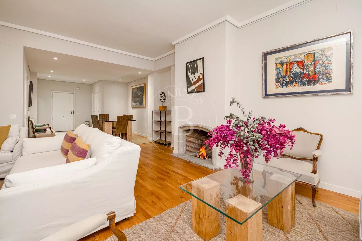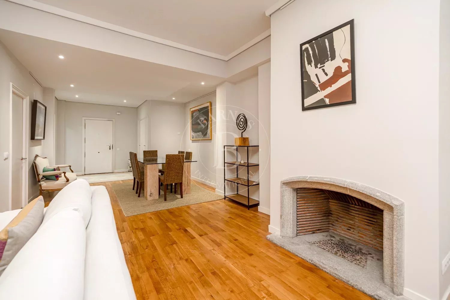 La vivienda se distribuye a partir de un amplio recibidor que da acceso a un gran salón-comedor en dos ambientes, con chimenea y salida a una agradable terraza cubierta, ideal para disfrutar de los atardeceres de Madrid.
