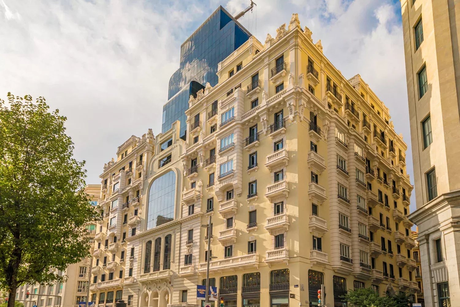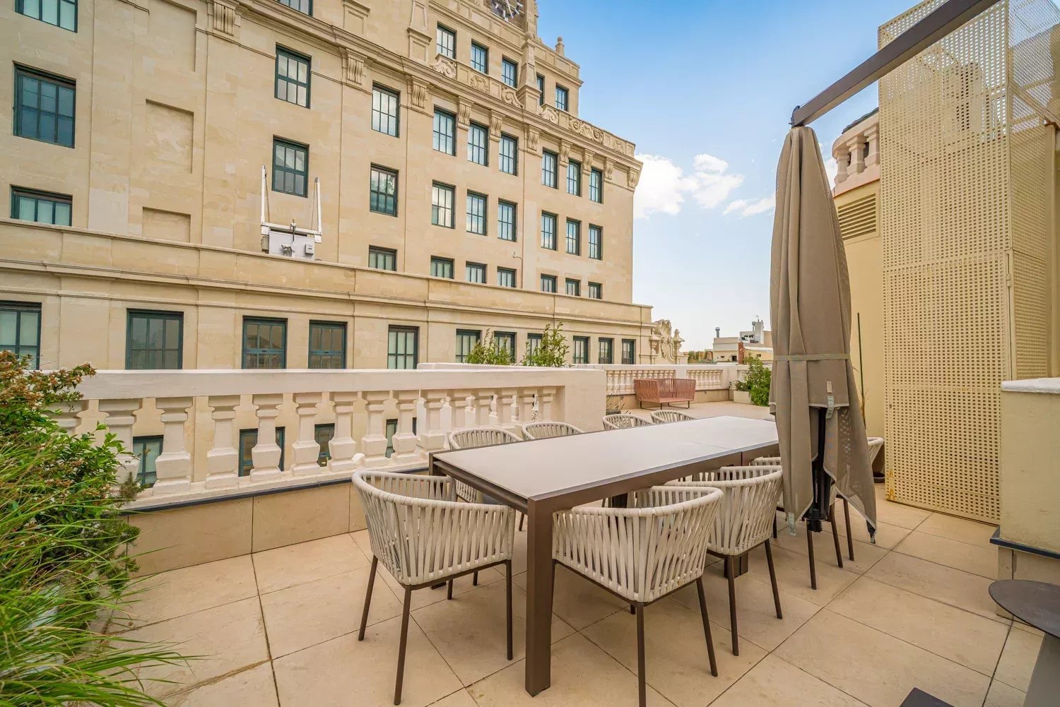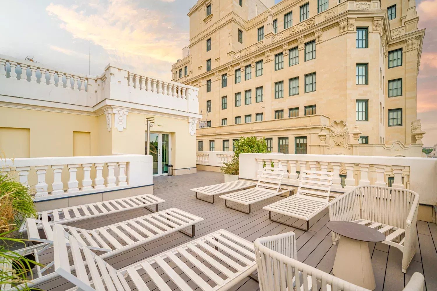 En pleno corazón de la Gran Vía madrileña, en el histórico edificio del antiguo Teatro Fontalba — joya arquitectónica de 1924 cuidadosamente rehabilitada —, se alza esta singular residencia que combina el encanto de la historia con la sofisticación contemporánea.