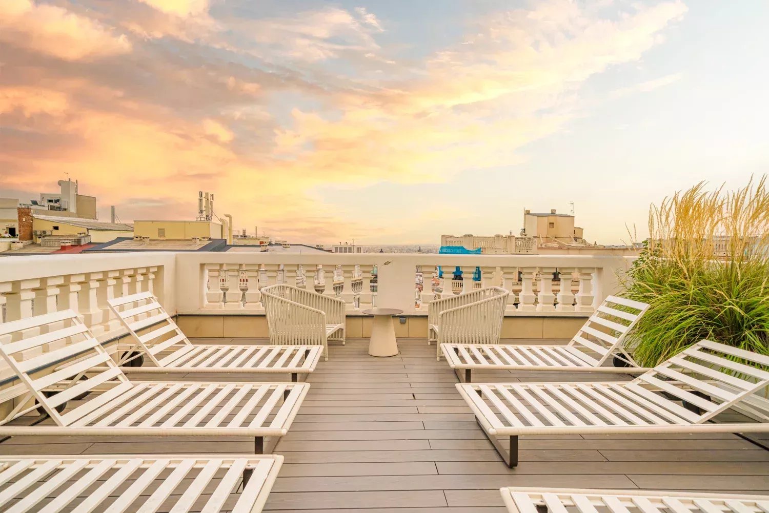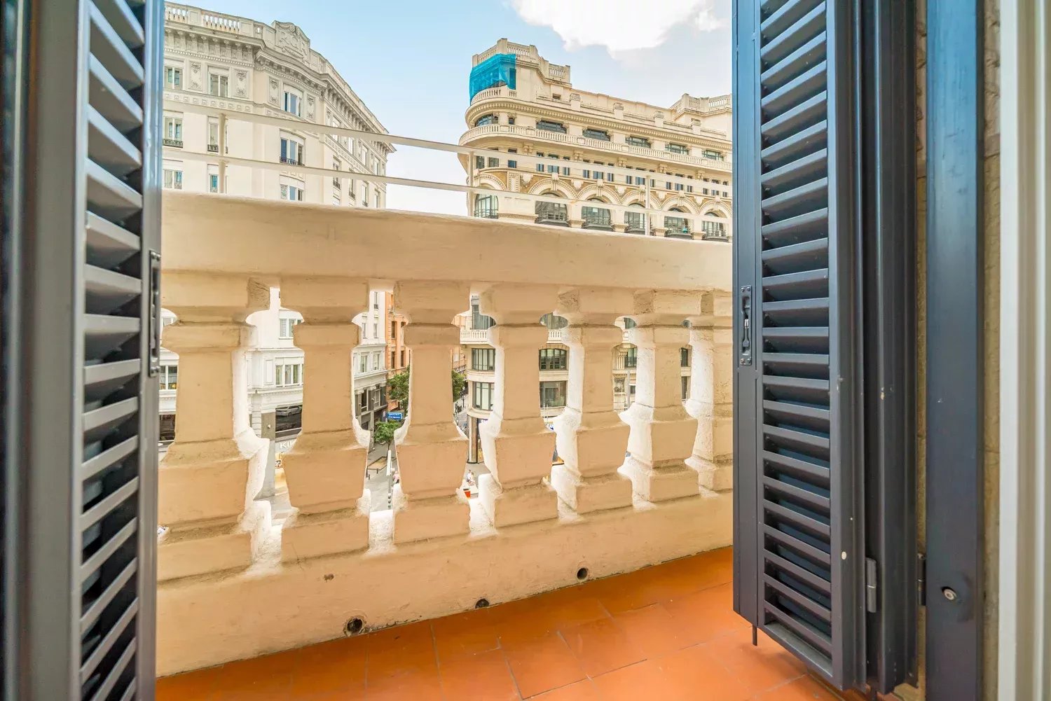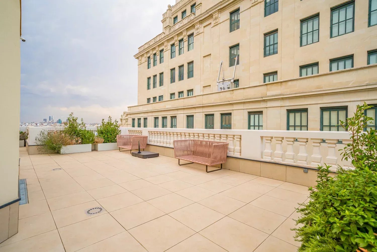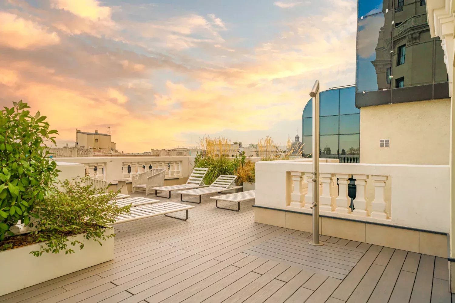 En pleno corazón de la Gran Vía madrileña, en el histórico edificio del antiguo Teatro Fontalba — joya arquitectónica de 1924 cuidadosamente rehabilitada —, se alza esta singular residencia que combina el encanto de la historia con la sofisticación contemporánea.