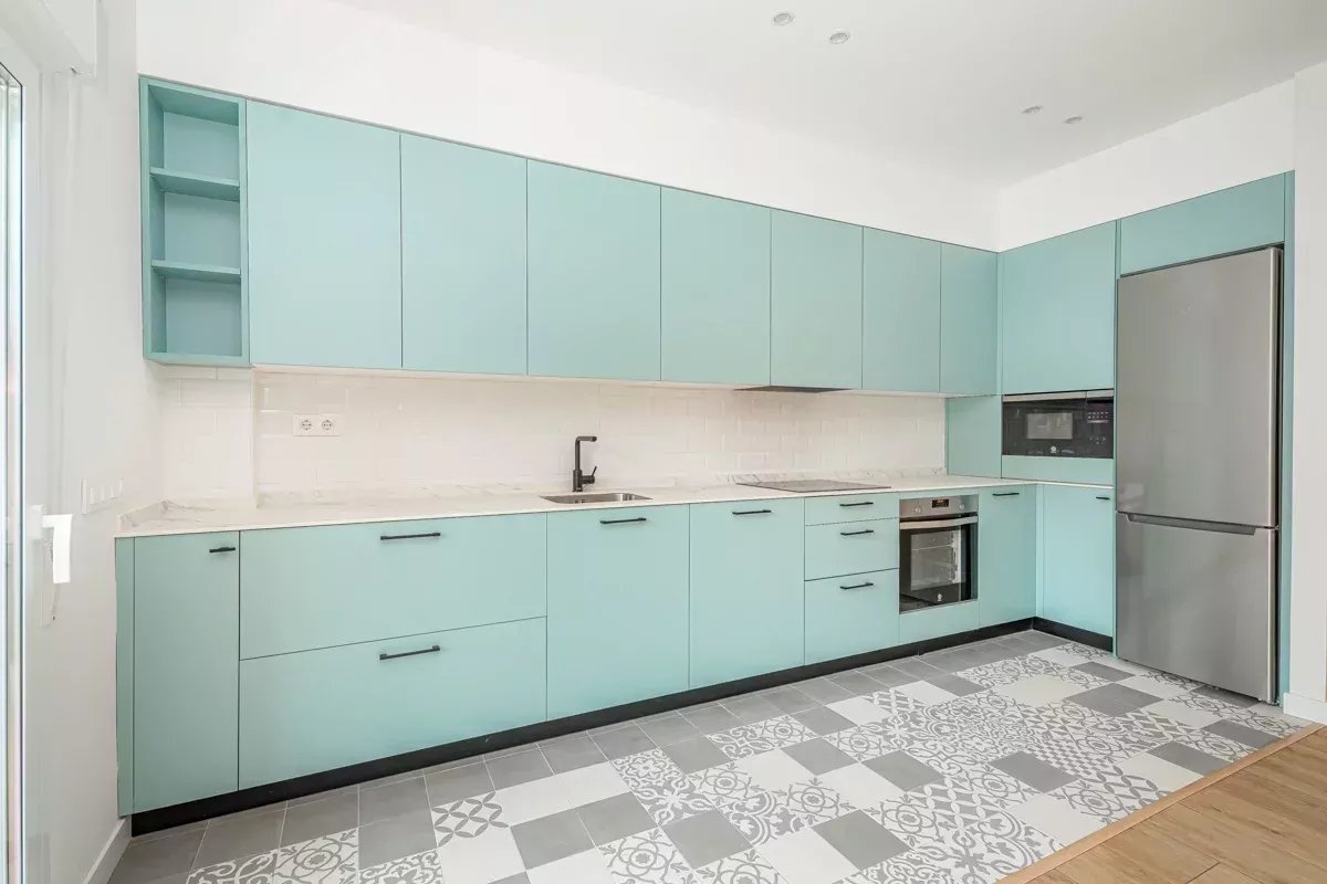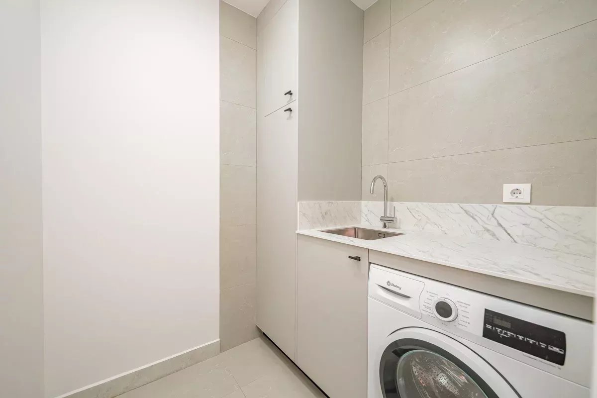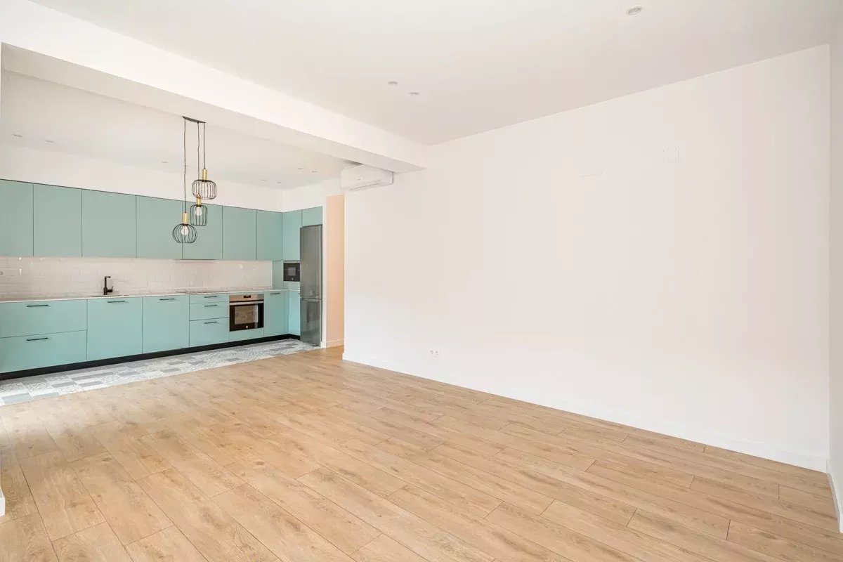 La cocina, completamente equipada, es perfecta para los amantes de la gastronomía, con electrodomésticos de última generación y un diseño que optimiza el espacio. El salón es amplio y luminoso, con grandes ventanales que permiten la entrada de luz natural durante todo el día, creando un ambiente cálido y acogedor.