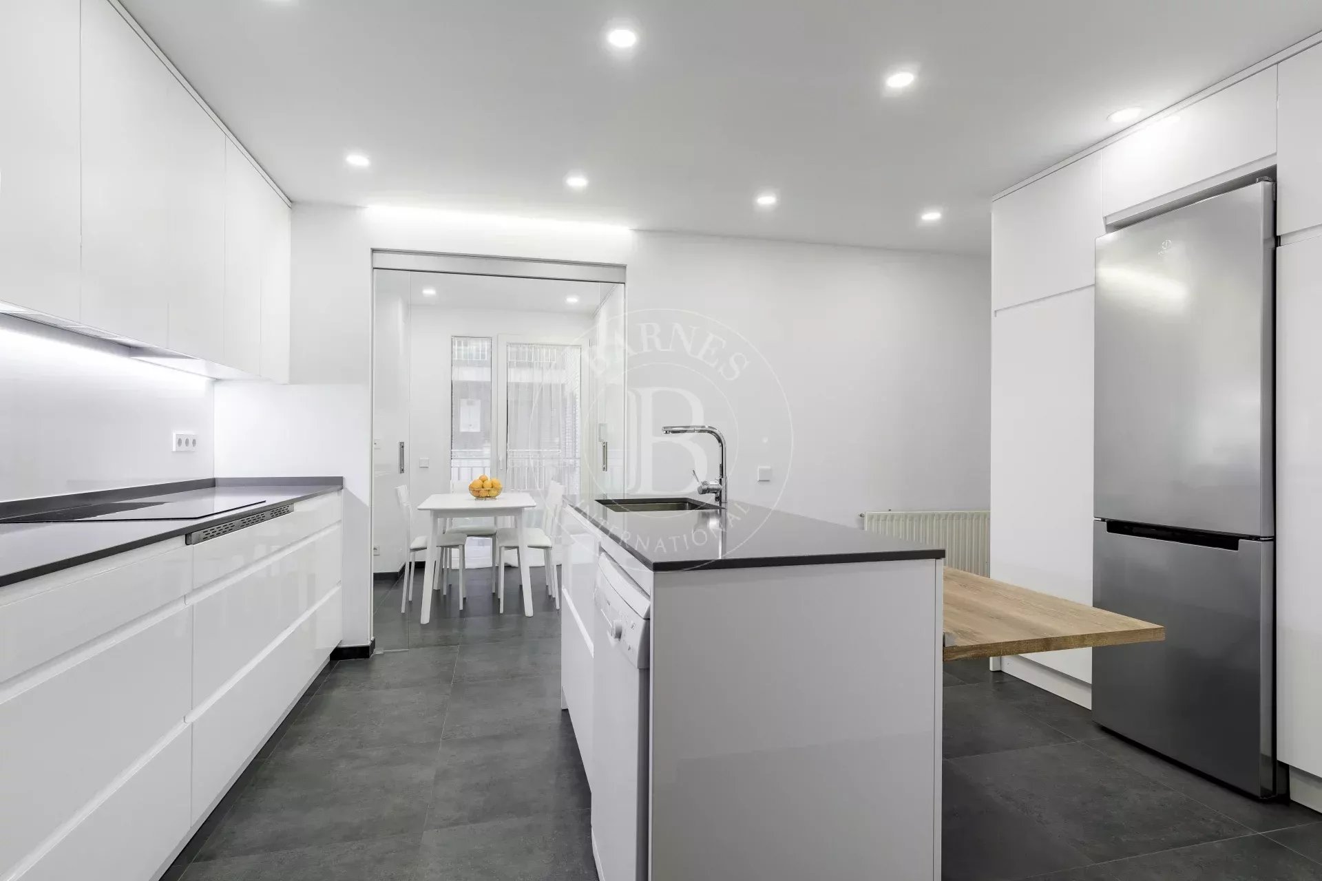 La vivienda, completamente reformada, ofrece una distribución equilibrada y funcional, con estancias amplias y una cuidada selección de materiales contemporáneos. El salón, luminoso y acogedor, se abre al exterior y disfruta de agradables vistas despejadas; la piscina visible desde la vivienda corresponde al edificio colindante, aportando una sensación de amplitud y perspectiva, sin formar parte de las zonas comunes del inmueble.