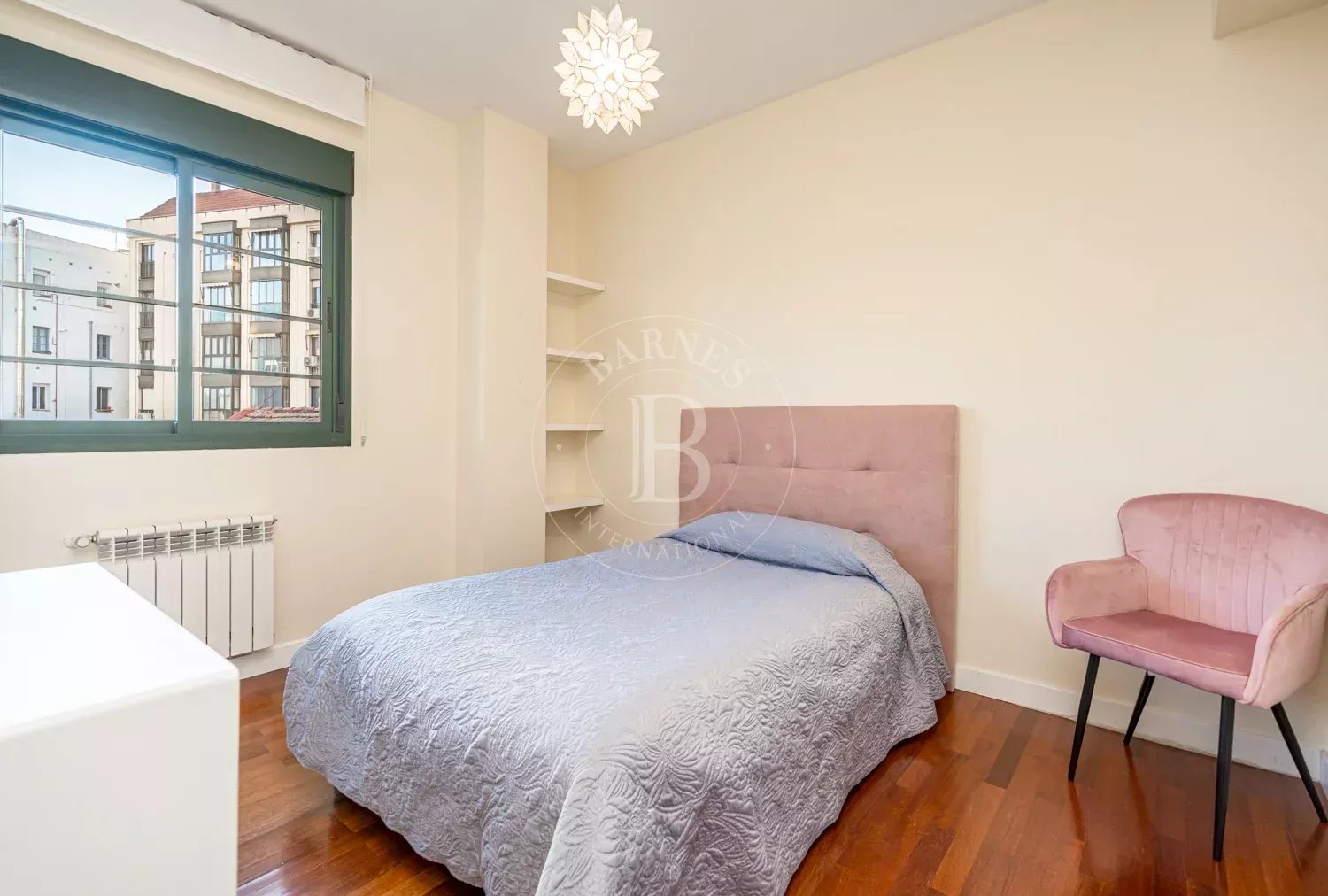 La vivienda dispone de calefacción central, agua caliente individual y se alquila en larga duración. Incluye dos plazas de garaje muy amplias y especialmente cómodas, un valor diferencial muy demandado en el alquiler en Chamberí. El edificio moderno, perfectamente mantenido, dispone además de piscina interior, aportando un plus de confort y calidad de vida.