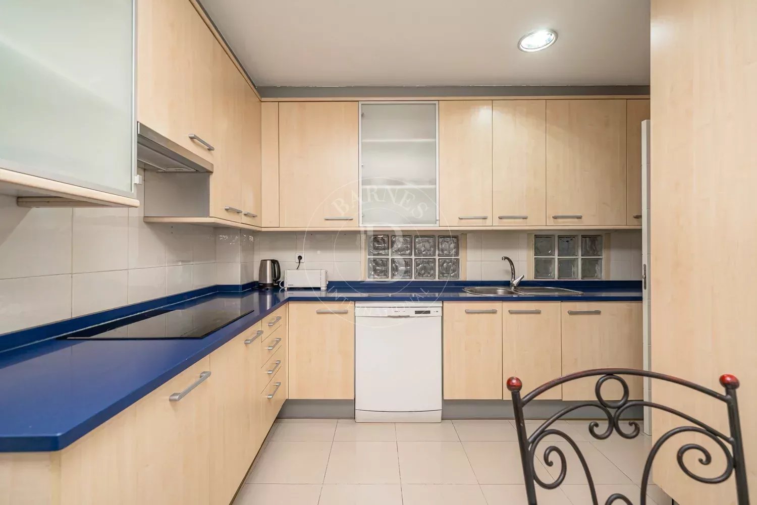 Cuenta con tres dormitorios de generosas dimensiones, dos baños completos con ducha y un aseo de cortesía, ofreciendo una solución muy cómoda tanto para familias como para profesionales. La cocina es independiente, funcional y bien equipada, con buena capacidad de almacenamiento.