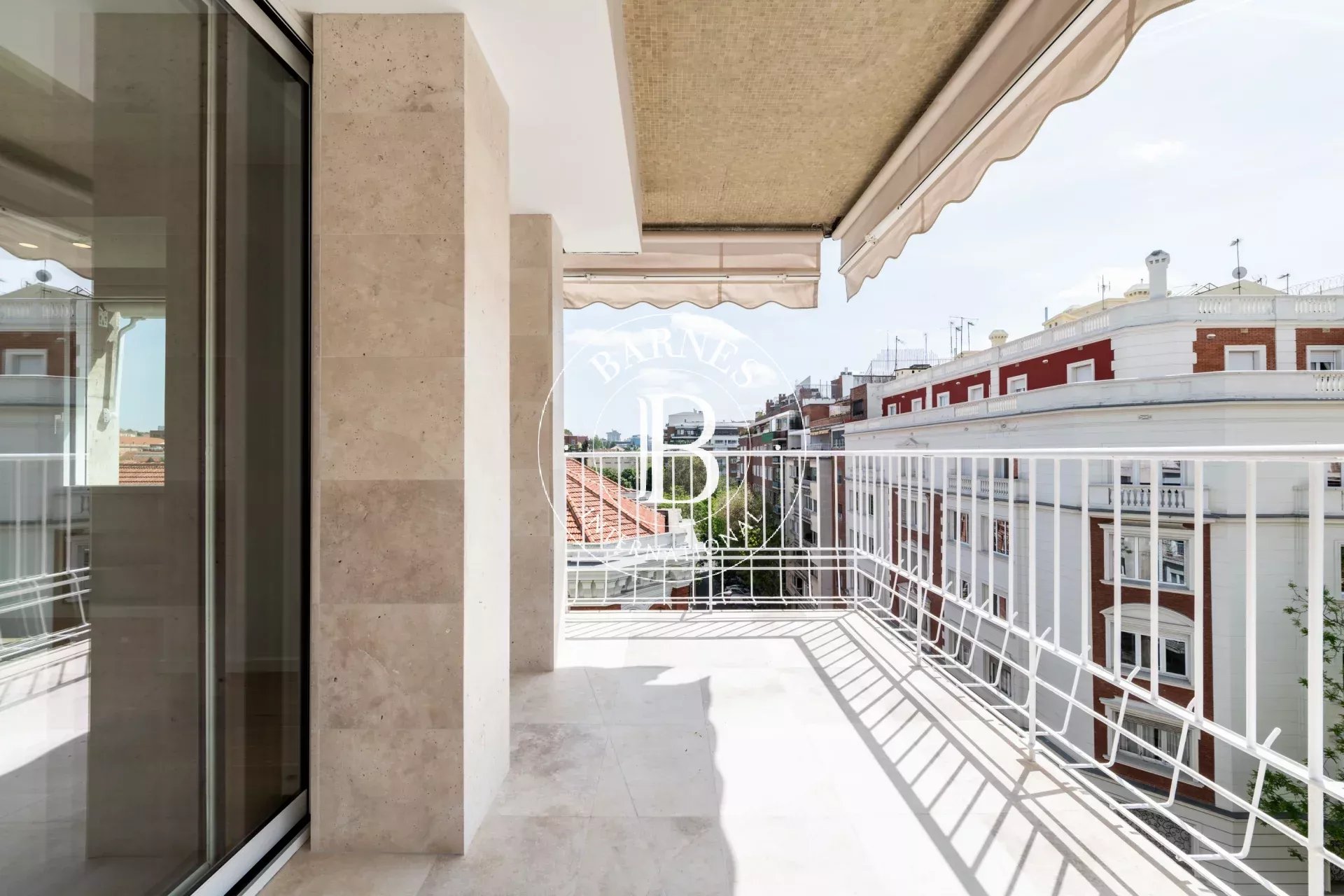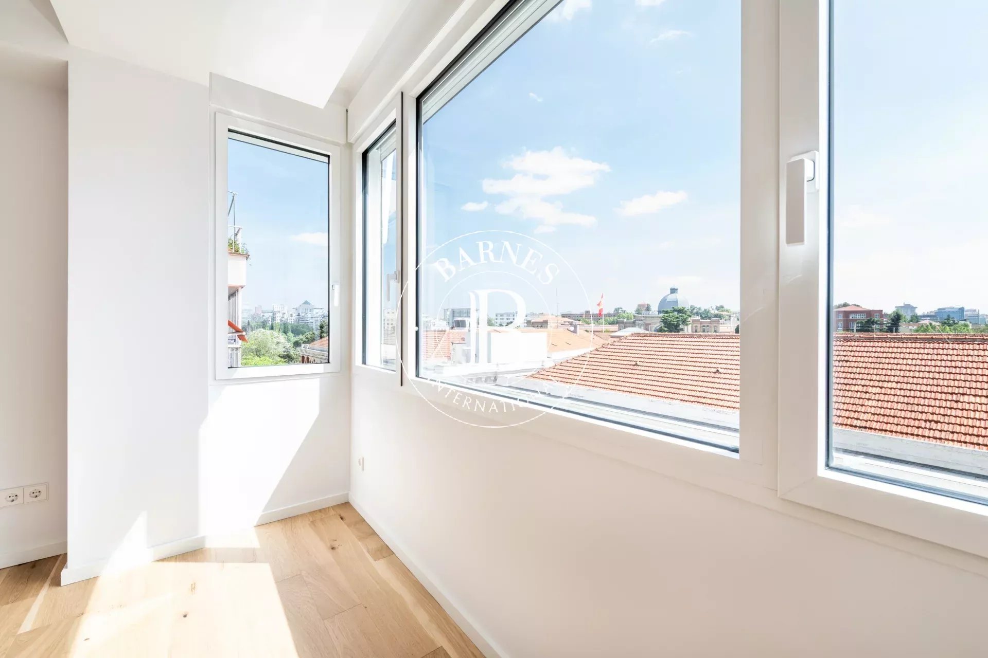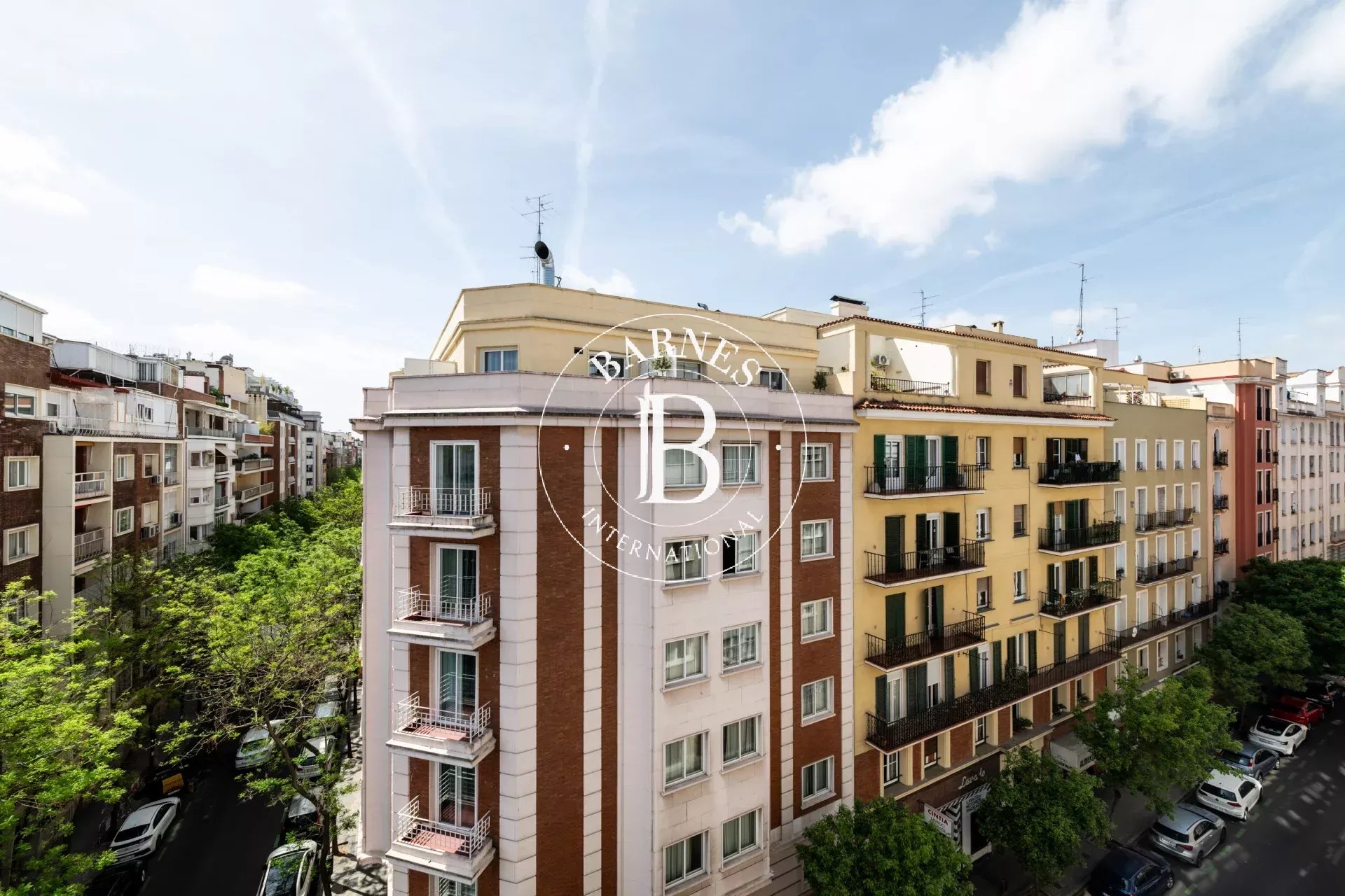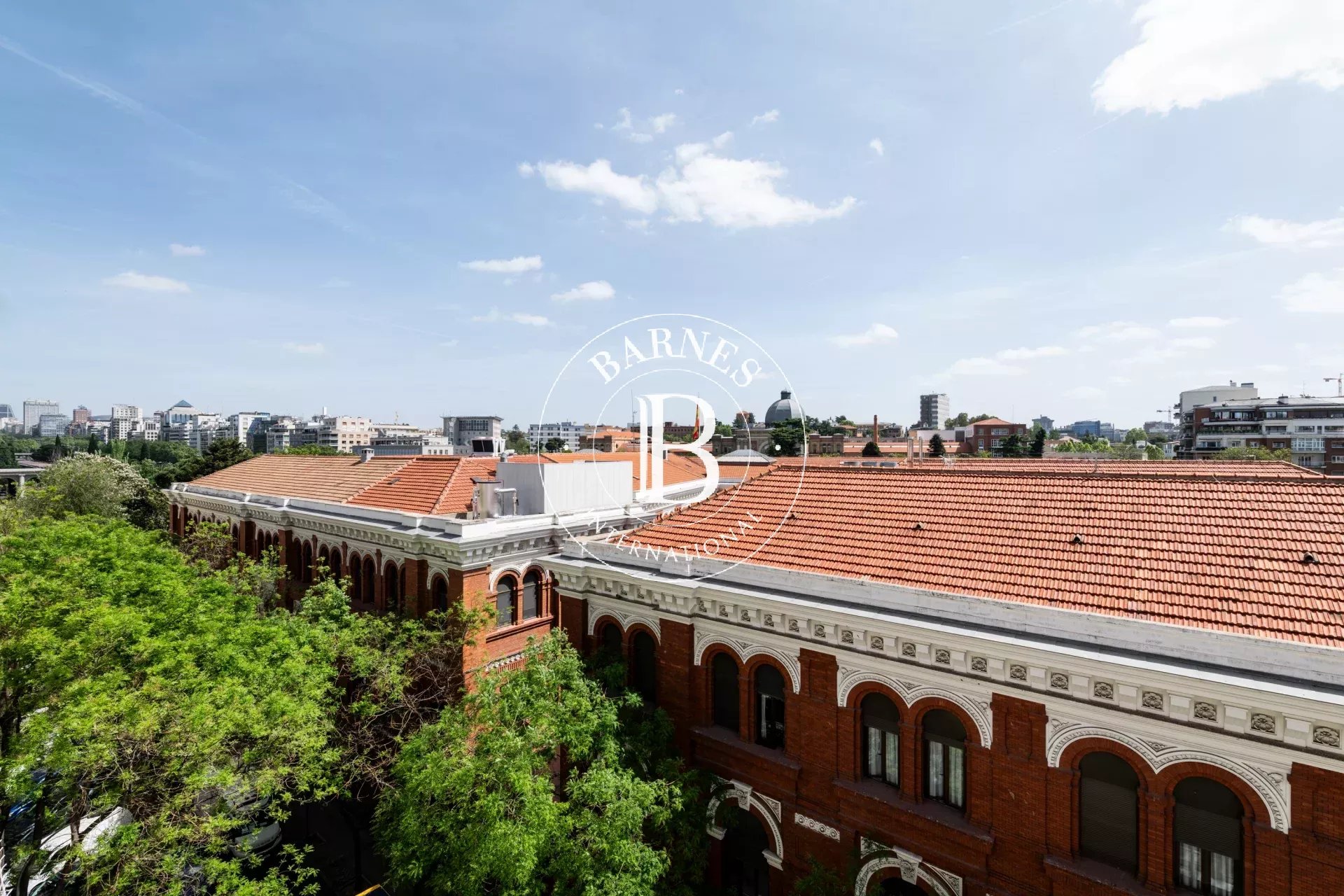 BARNES presenta este exclusivo sexto piso esquinero con espectaculares vistas abiertas sobre Madrid, el Paseo de la Castellana y un emblemático edificio palacete de estilo ecléctico. Una propiedad luminosa y sofisticada que combina privacidad, amplitud y una conexión privilegiada con la ciudad.